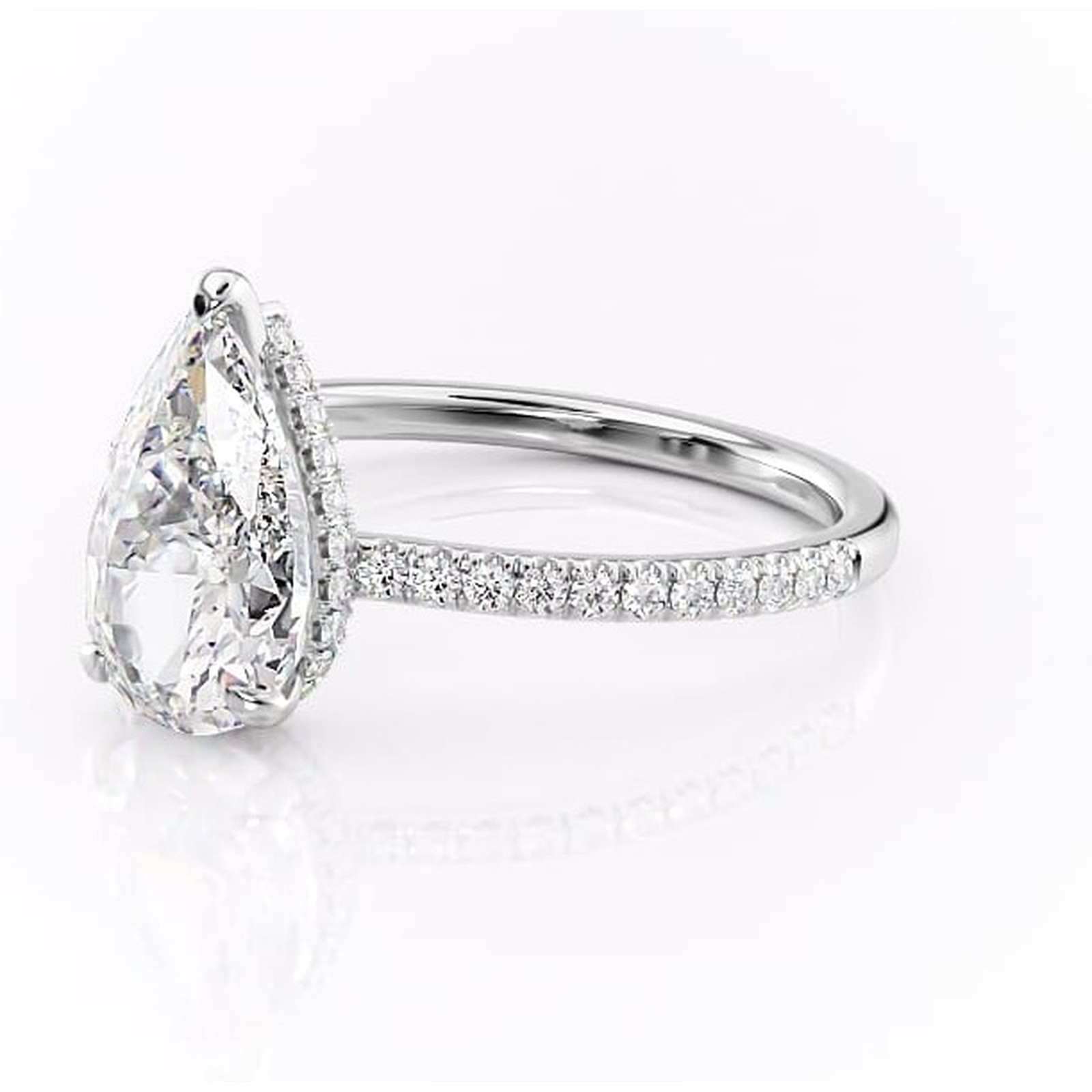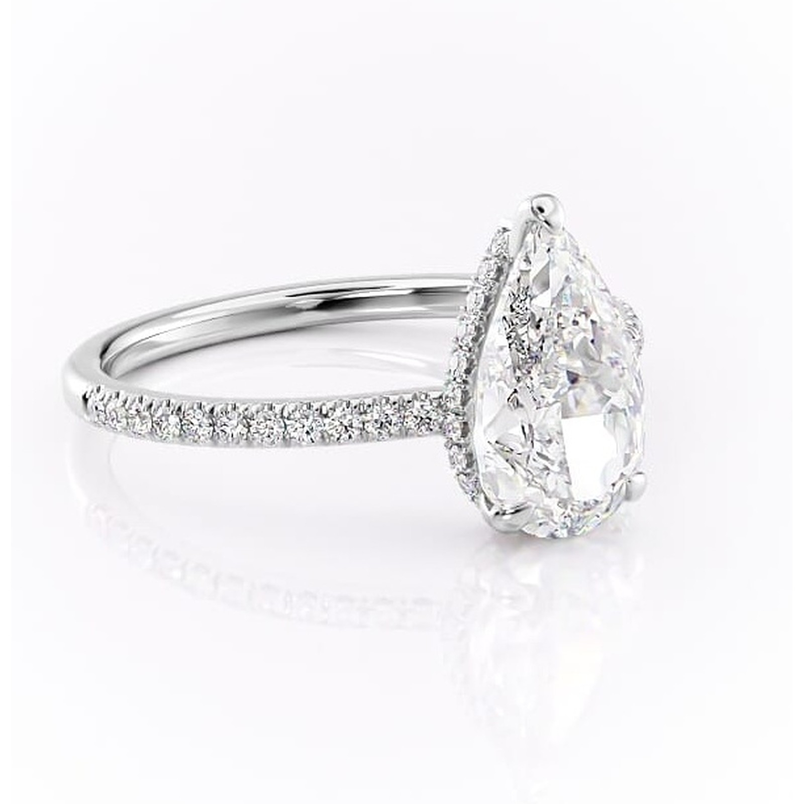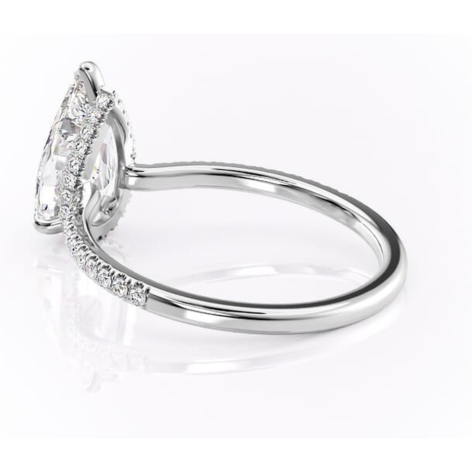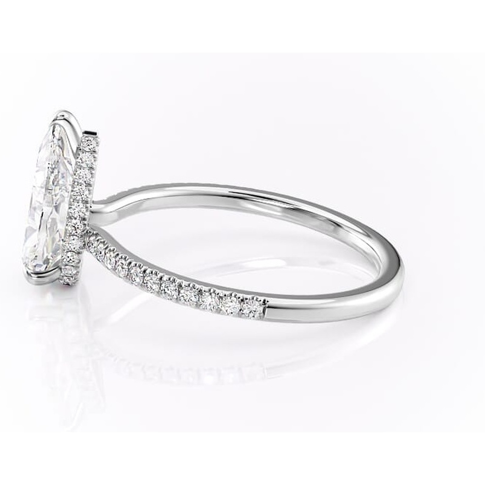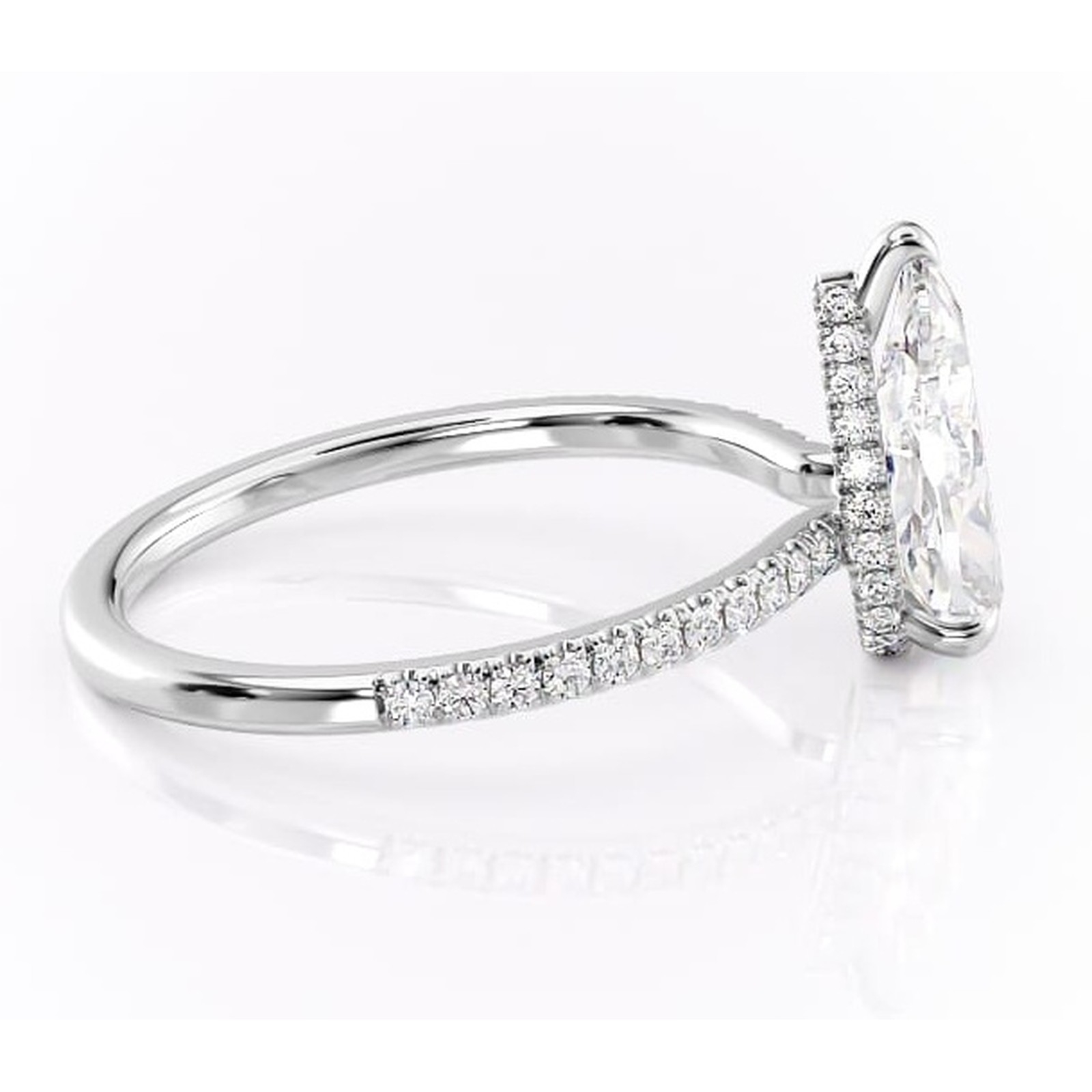 Inel de logodnă Arabella din aur Alb 14kt cu moissanite tăietură pară – Montură pavé rafinată pentru profil jos | Personalizează și configurează gratuit online