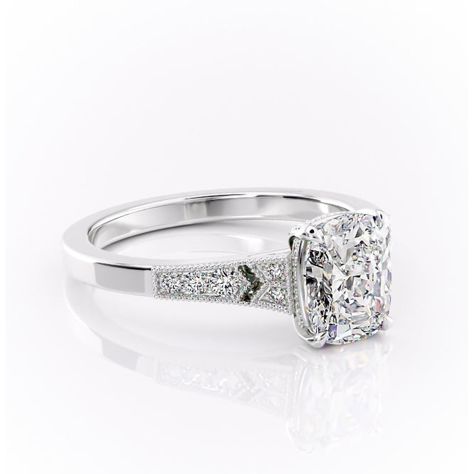 Inel de logodnă Caelia din aur Alb 14kt cu moissanite tăietură asscher – Pietre laterale rafinată pentru profil înalt | Personalizează și configurează gratuit online
