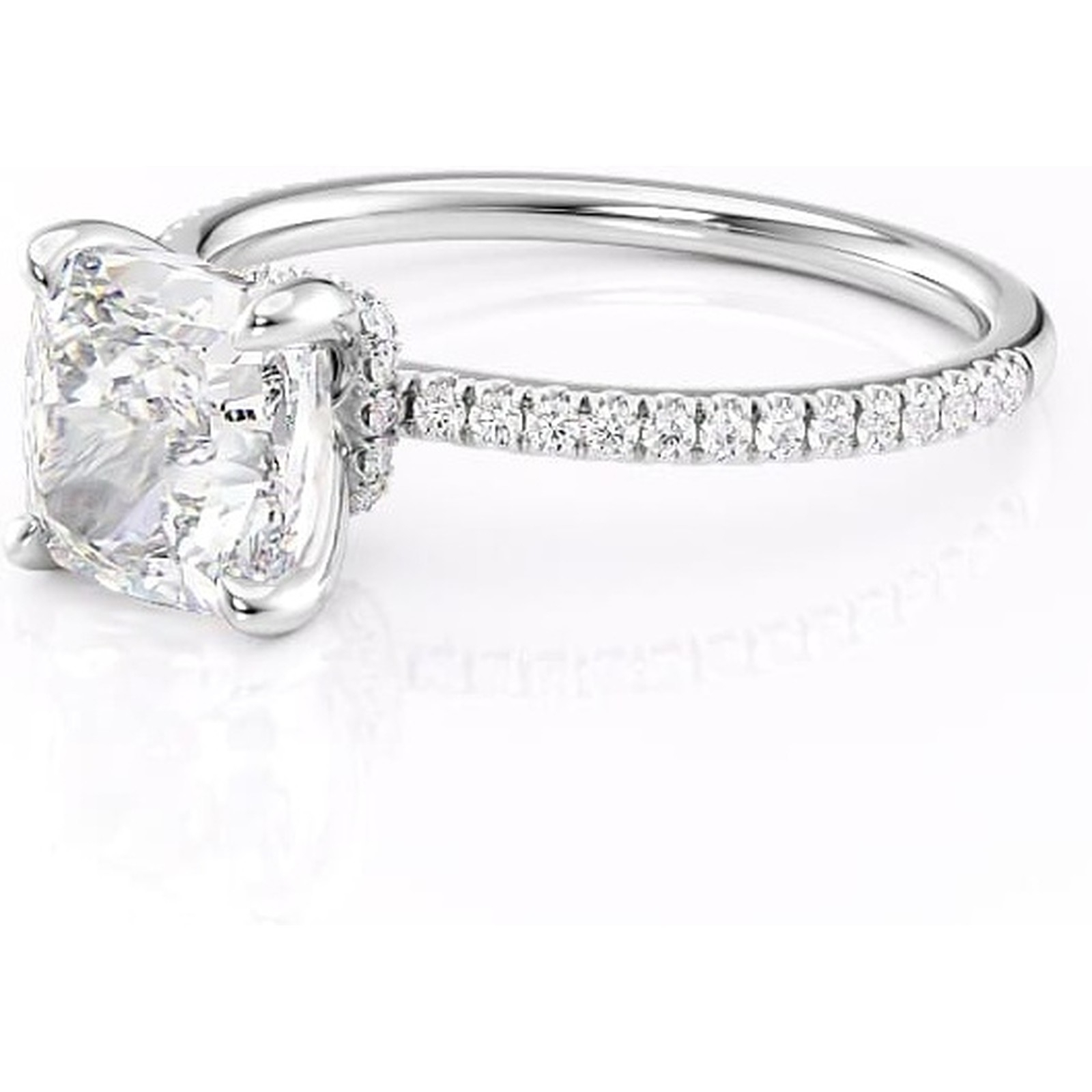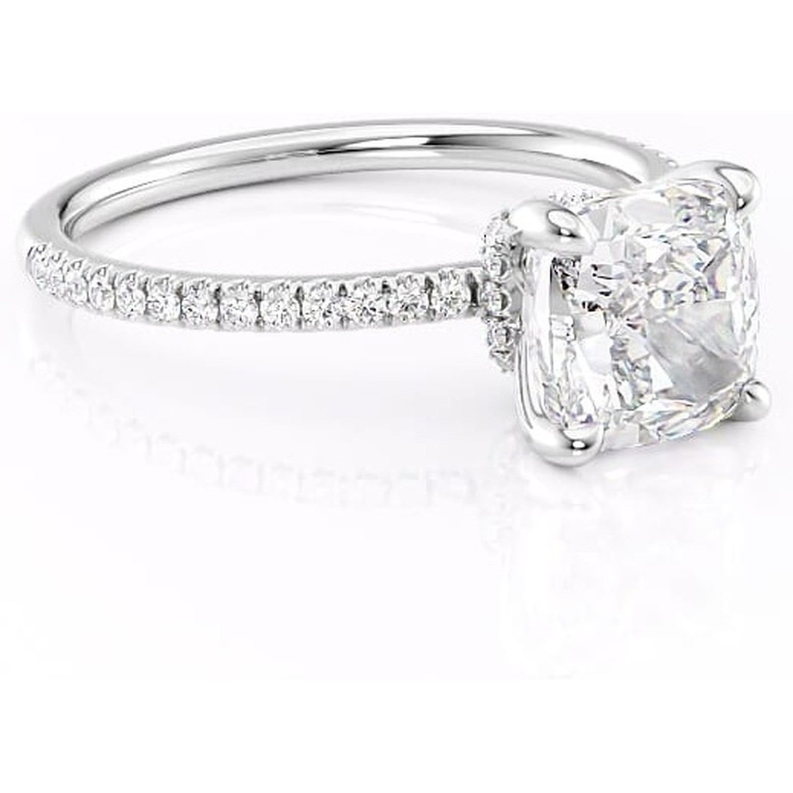 Inel de logodnă Lavinia din aur Alb 14kt cu moissanite tăietură pernă – Montură pavé rafinată pentru profil înalt | Personalizează și configurează gratuit online
