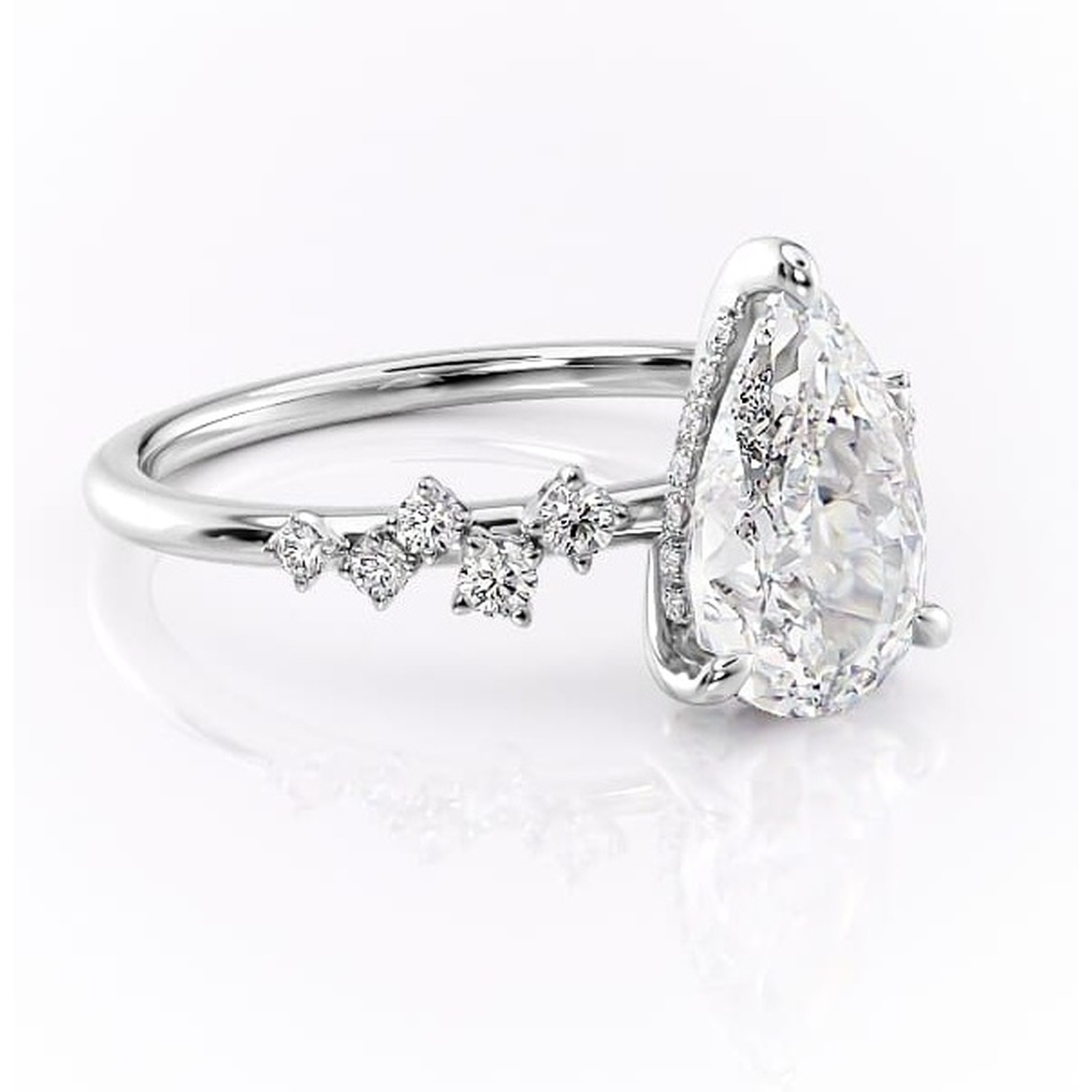 Inel de logodnă Liora din aur Alb 14kt cu moissanite tăietură pară – Pietre laterale rafinată pentru profil înalt | Personalizează și configurează gratuit online