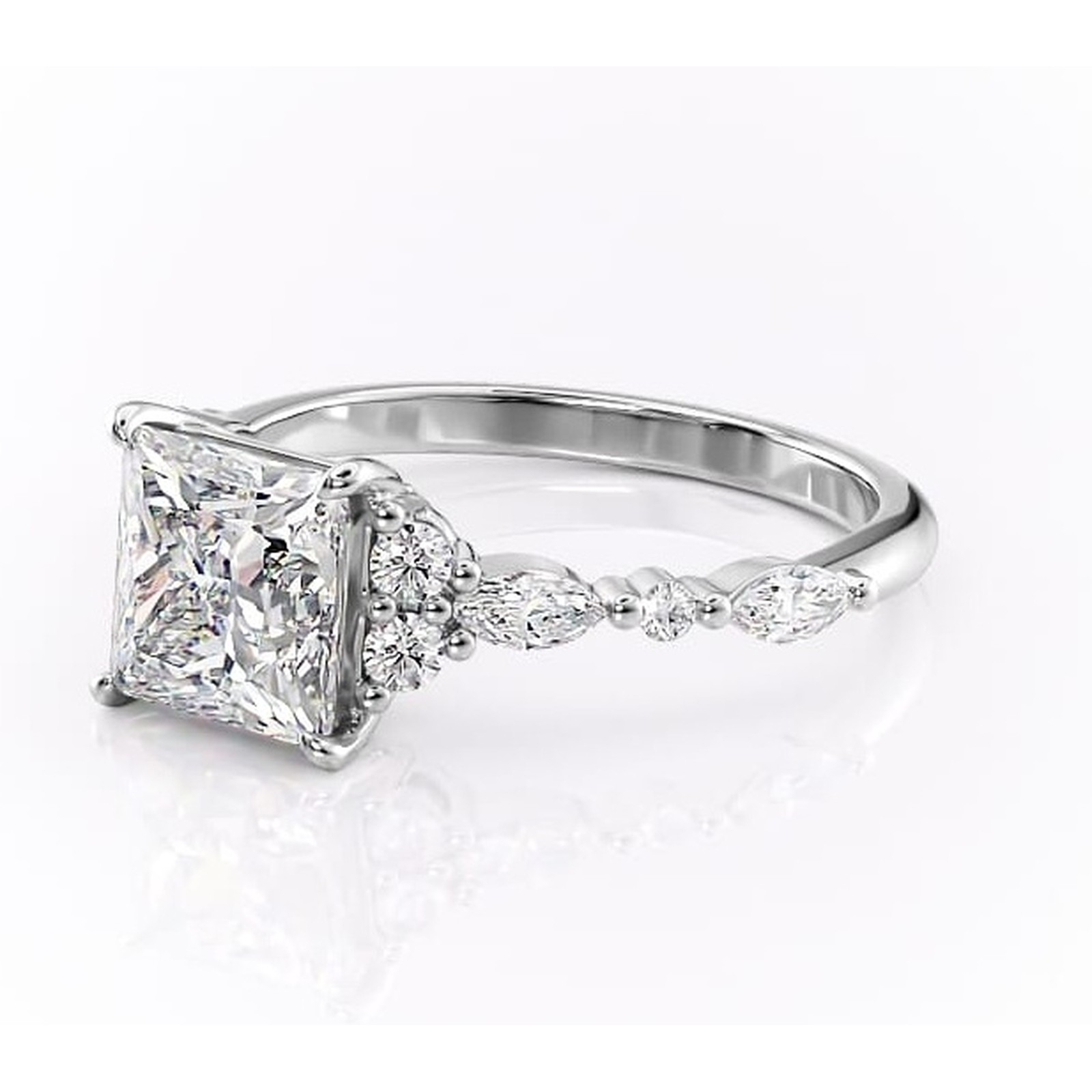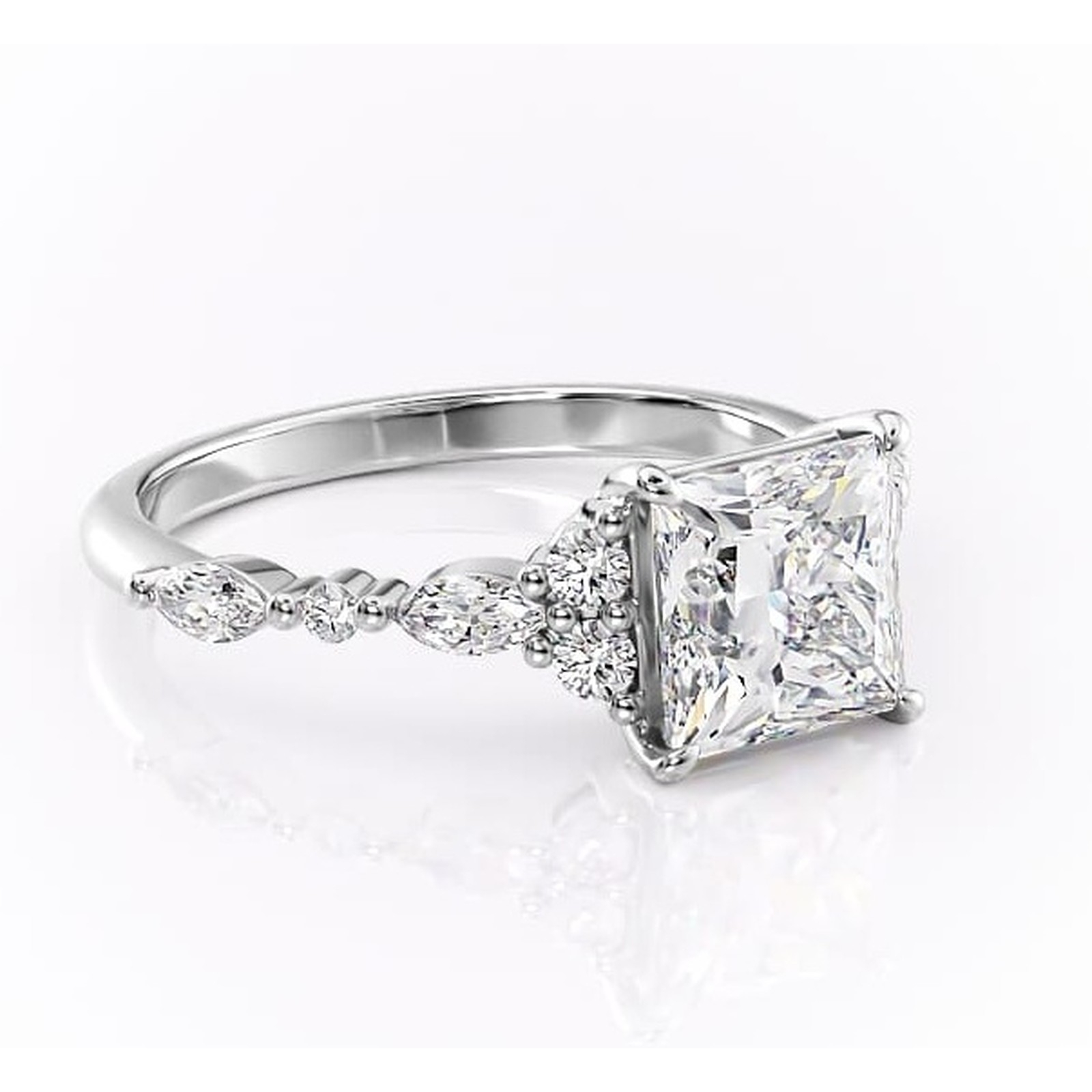 Inel de logodnă Rosamund din aur Alb 14kt cu moissanite tăietură princess – Pietre laterale rafinată pentru profil mediu | Personalizează și configurează gratuit online