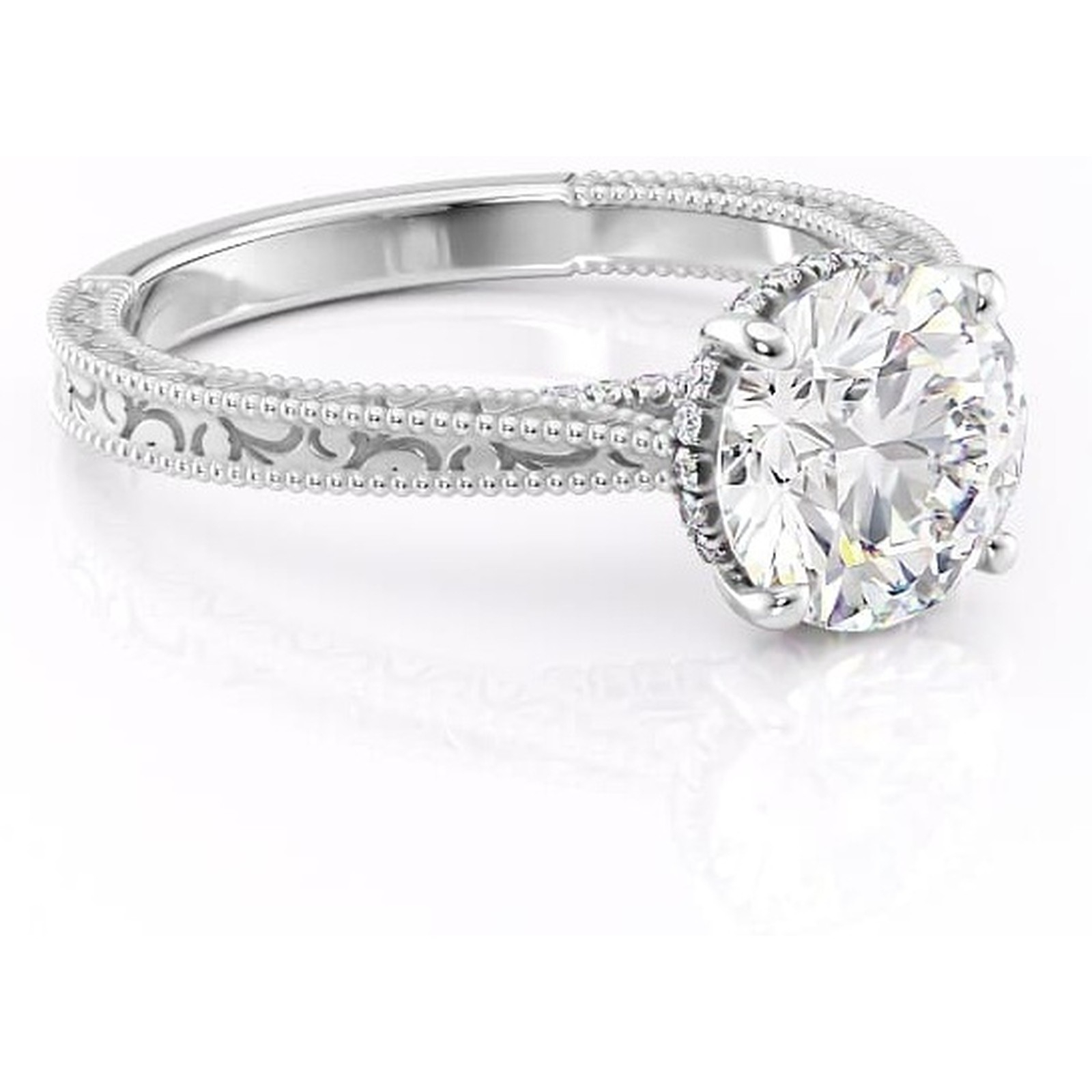 Inel de logodnă Jovie din aur Alb 14kt cu moissanite tăietură rotundă – Halo ascuns rafinată pentru profil înalt | Personalizează și configurează gratuit online
