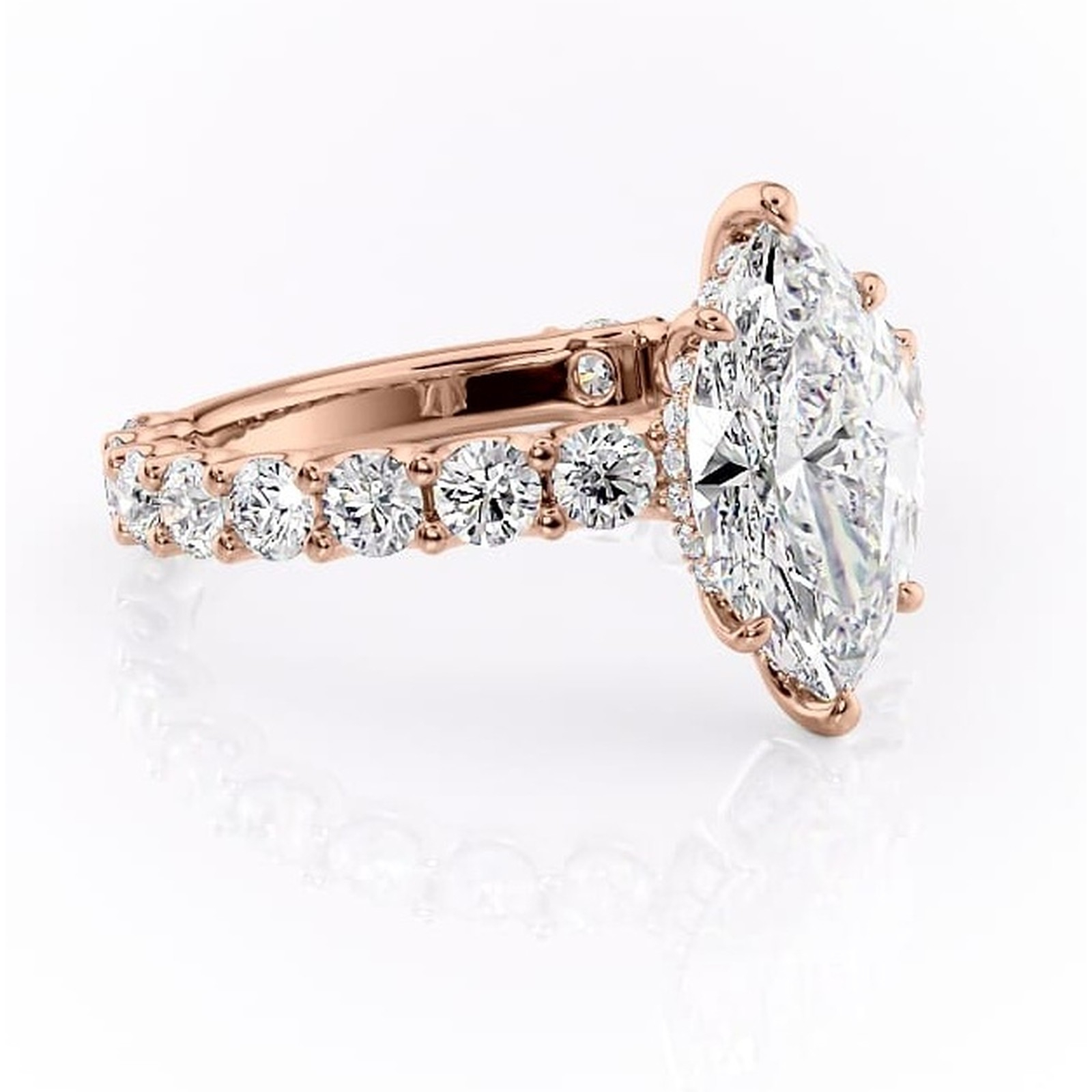 Inel de logodnă Floralie din aur Rose 14kt cu moissanite tăietură marquise – Pietre laterale excepțional | Personalizează și configurează gratuit online