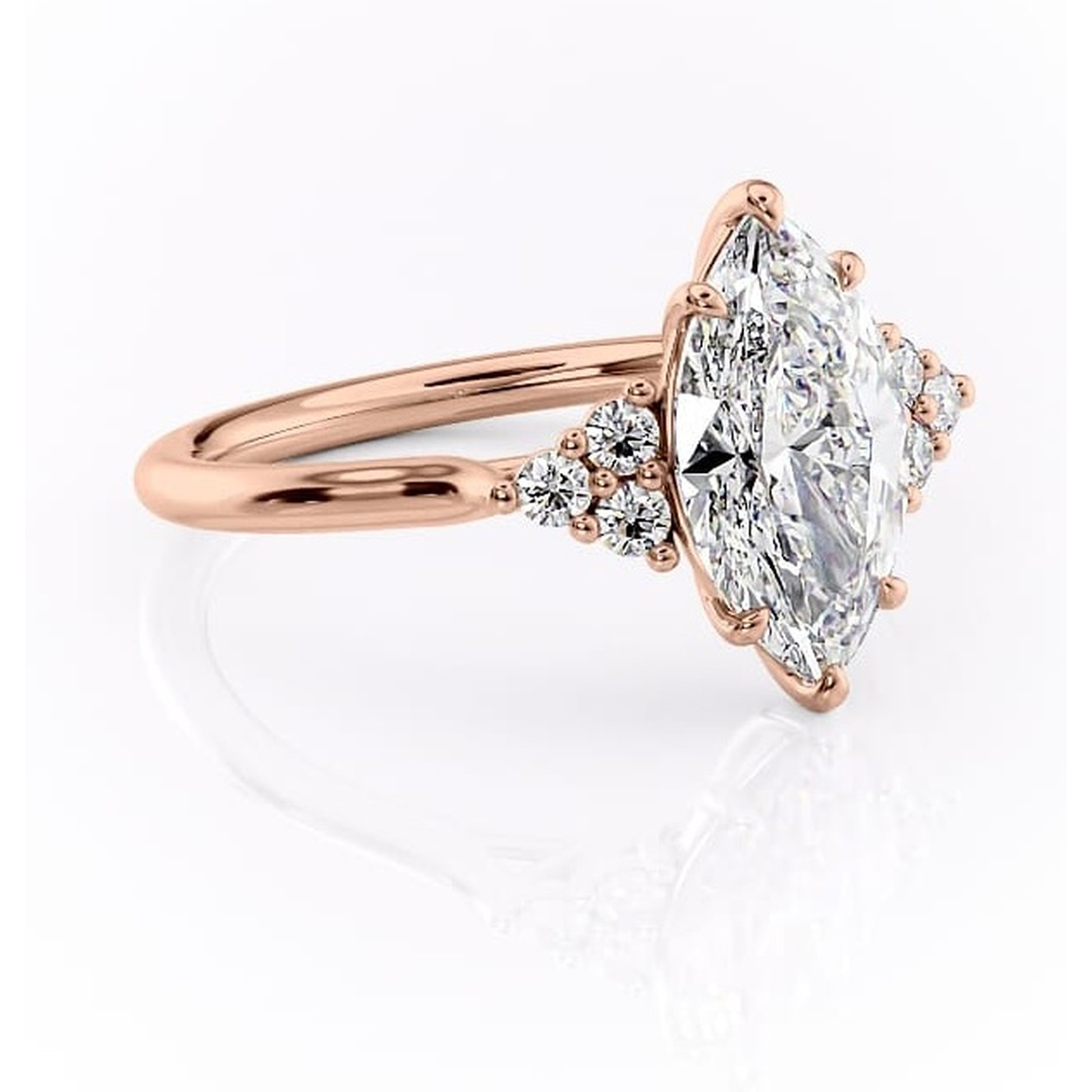 Inel de logodnă Ivylyn din aur Rose 14kt cu moissanite tăietură marquise – Montură cu trei pietre rafinată pentru profil mediu | Personalizează și configurează gratuit online