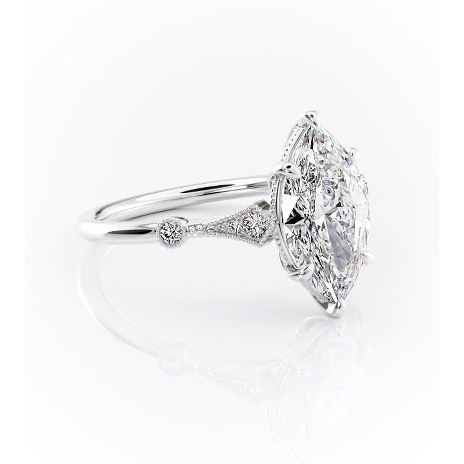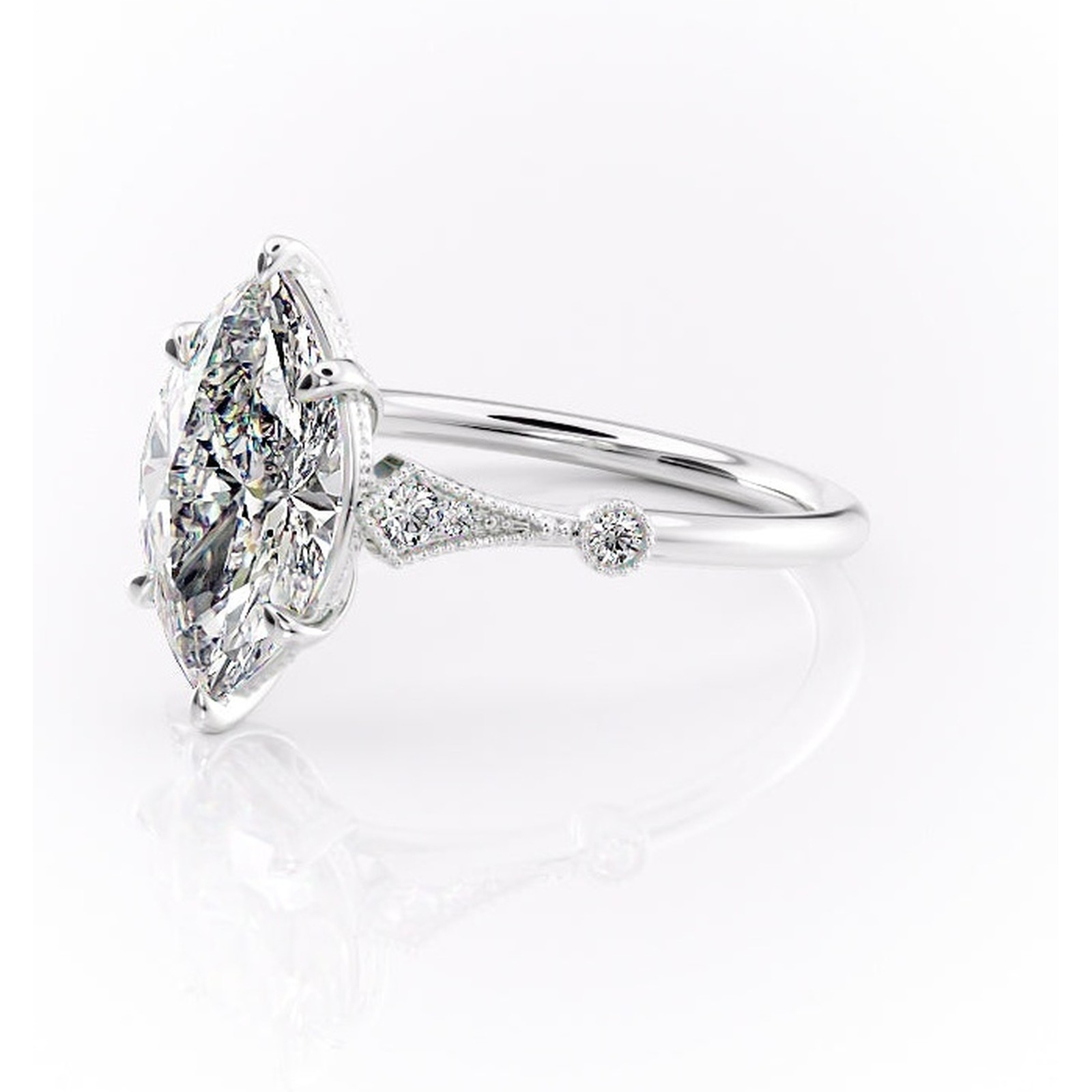 Inel de logodnă Lacey din aur Alb 14kt cu moissanite tăietură marquise – Pietre laterale rafinată pentru profil înalt | Personalizează și configurează gratuit online