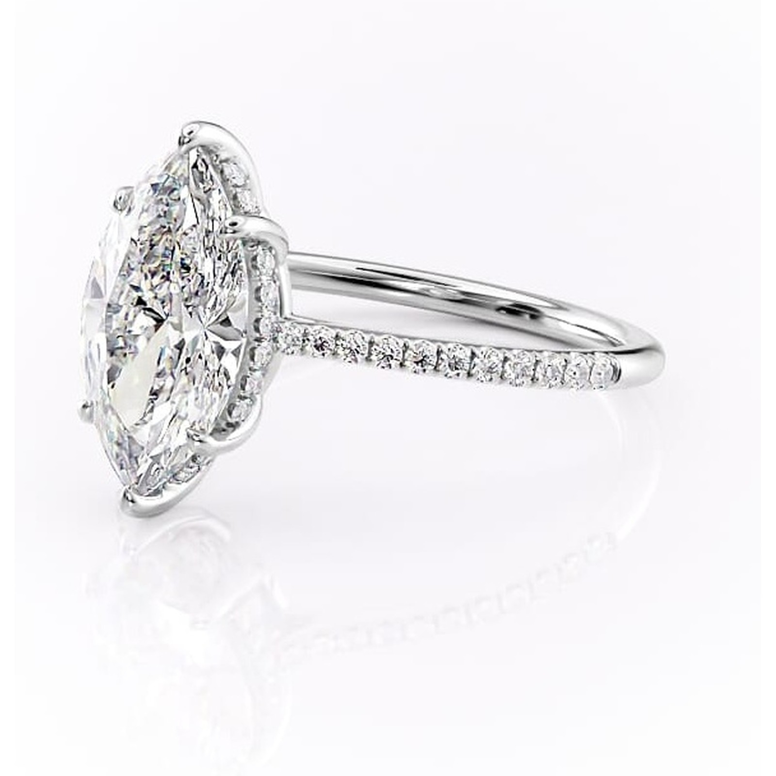 Inel de logodnă Marigold din aur Alb 14kt cu moissanite tăietură marquise – Montură pavé rafinată pentru profil jos | Personalizează și configurează gratuit online