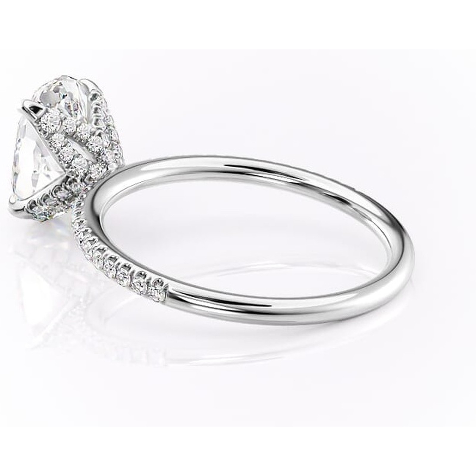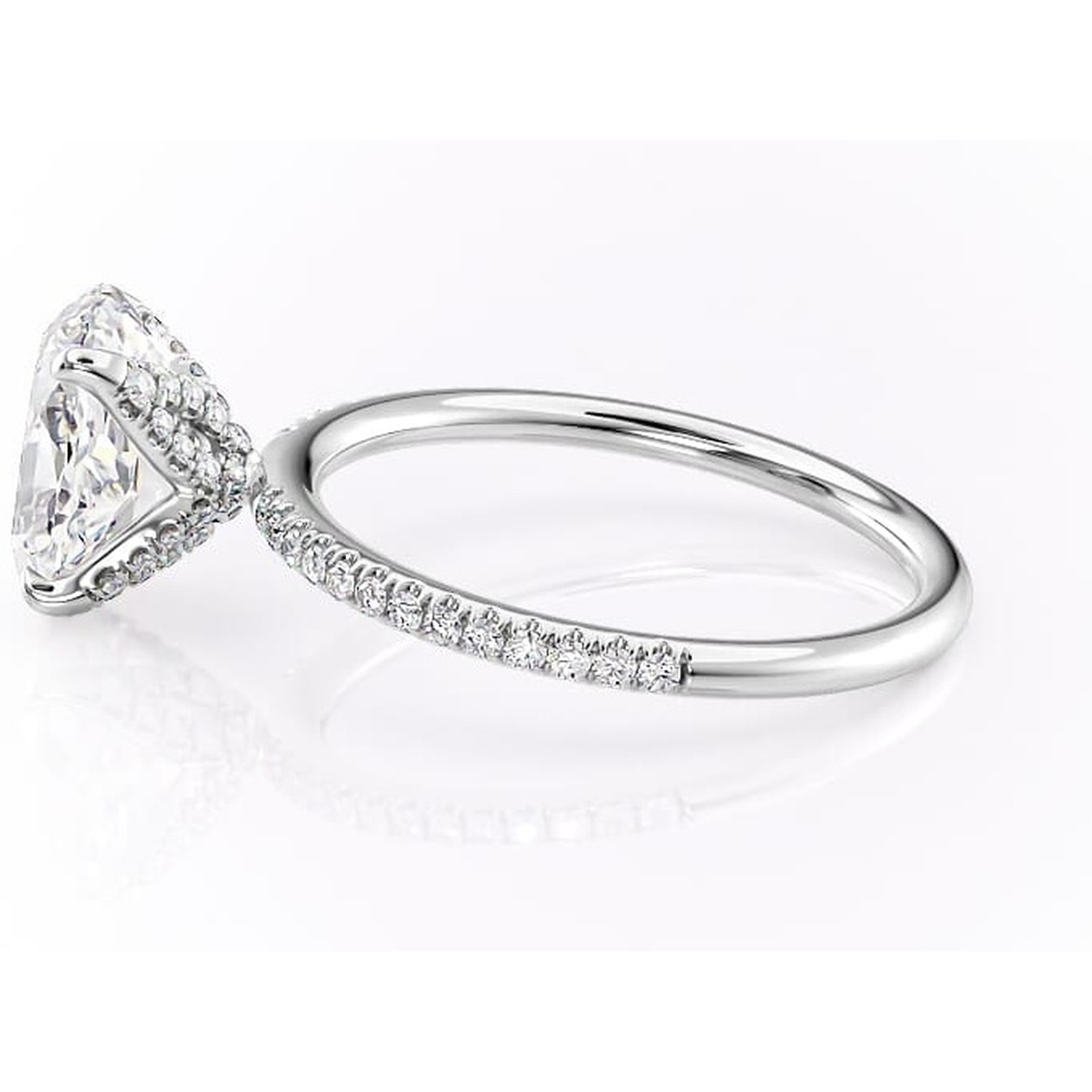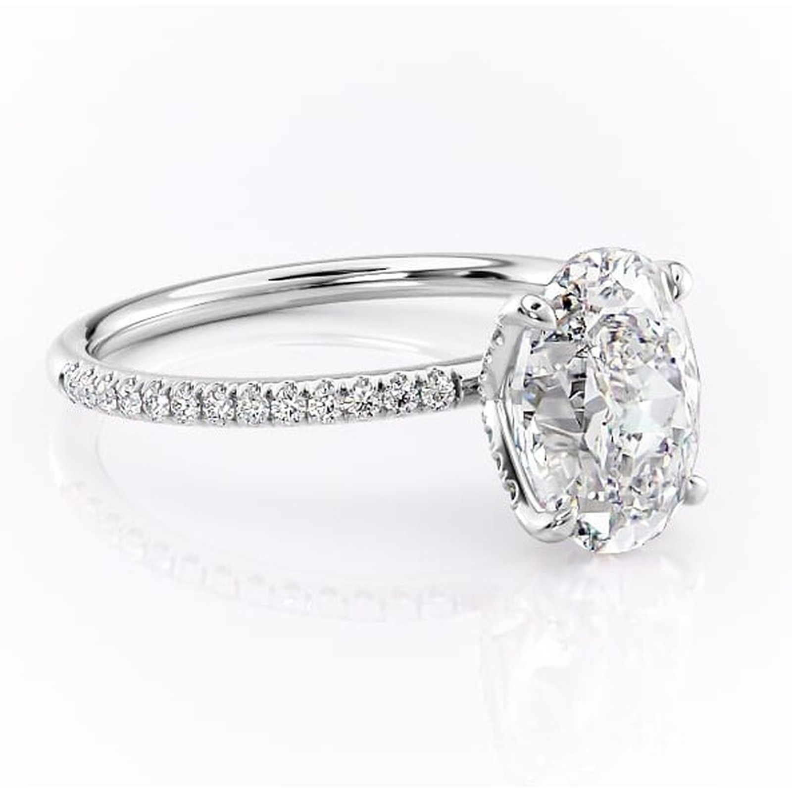 Inel de logodnă Cleo din aur Alb 14kt cu moissanite tăietură ovală – Montură pavé rafinată pentru profil înalt | Personalizează și configurează gratuit online