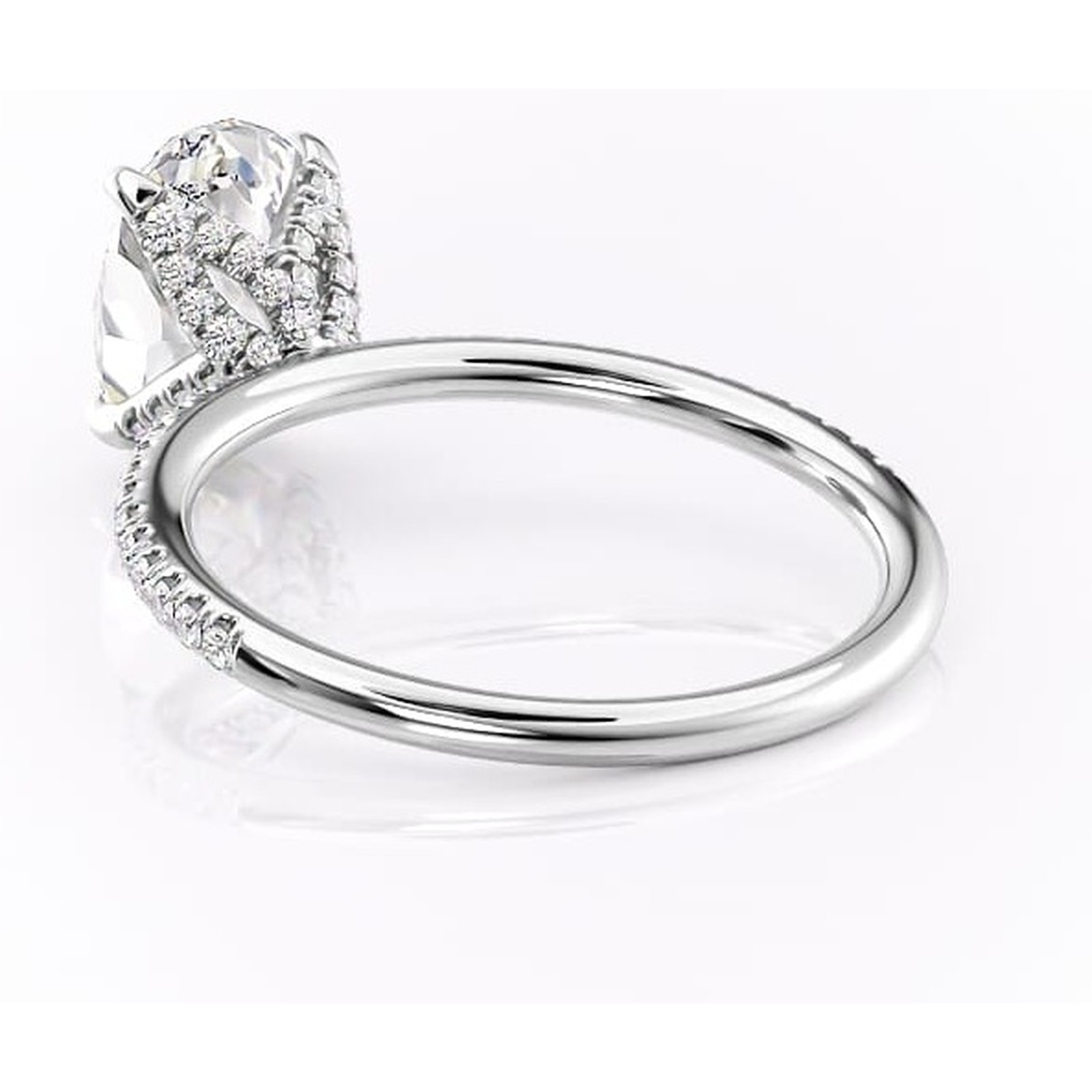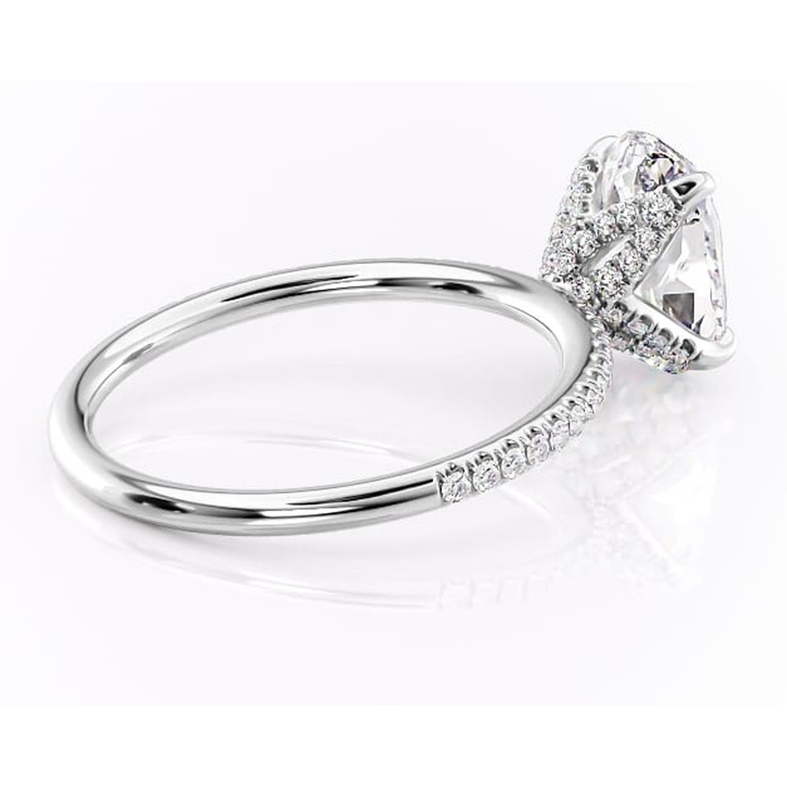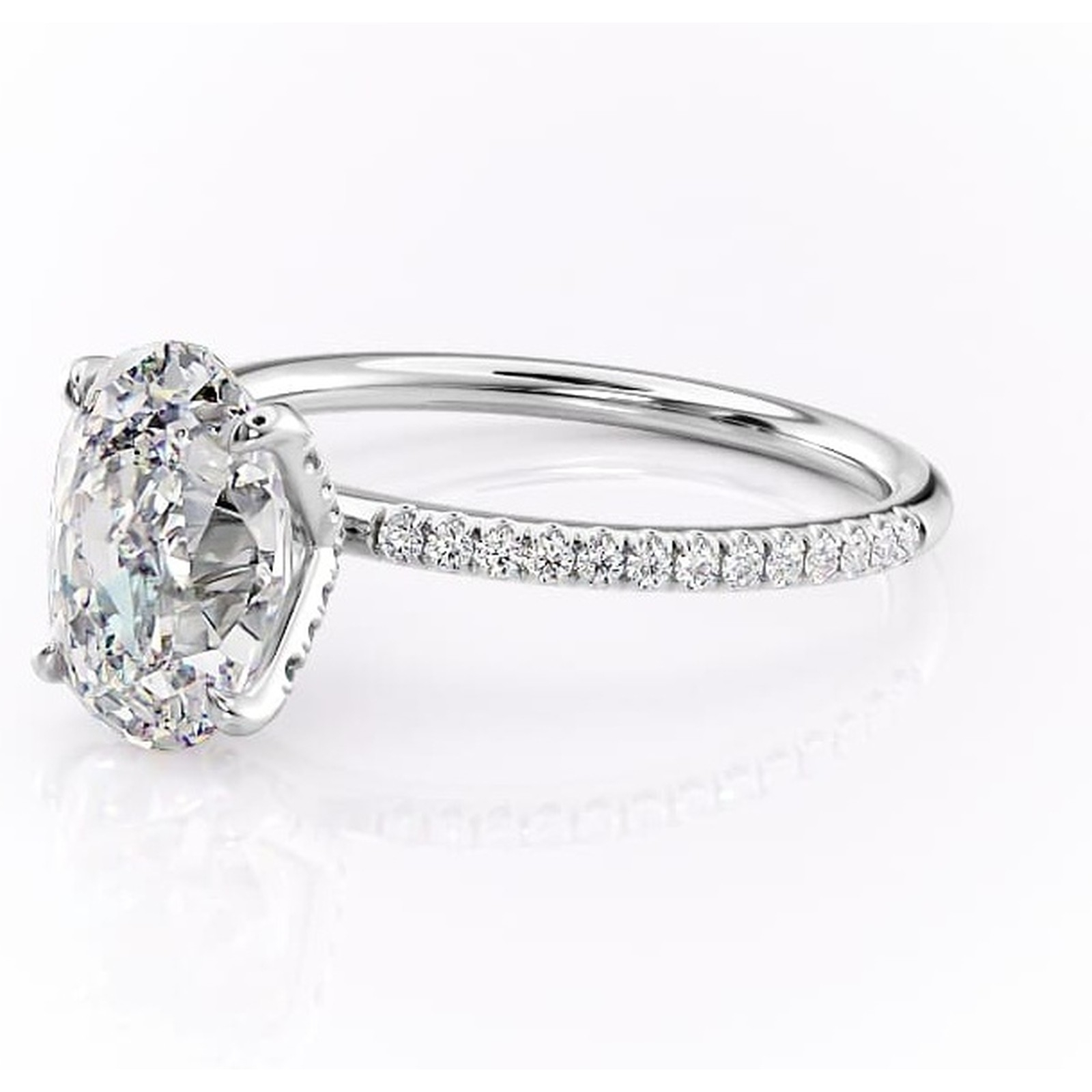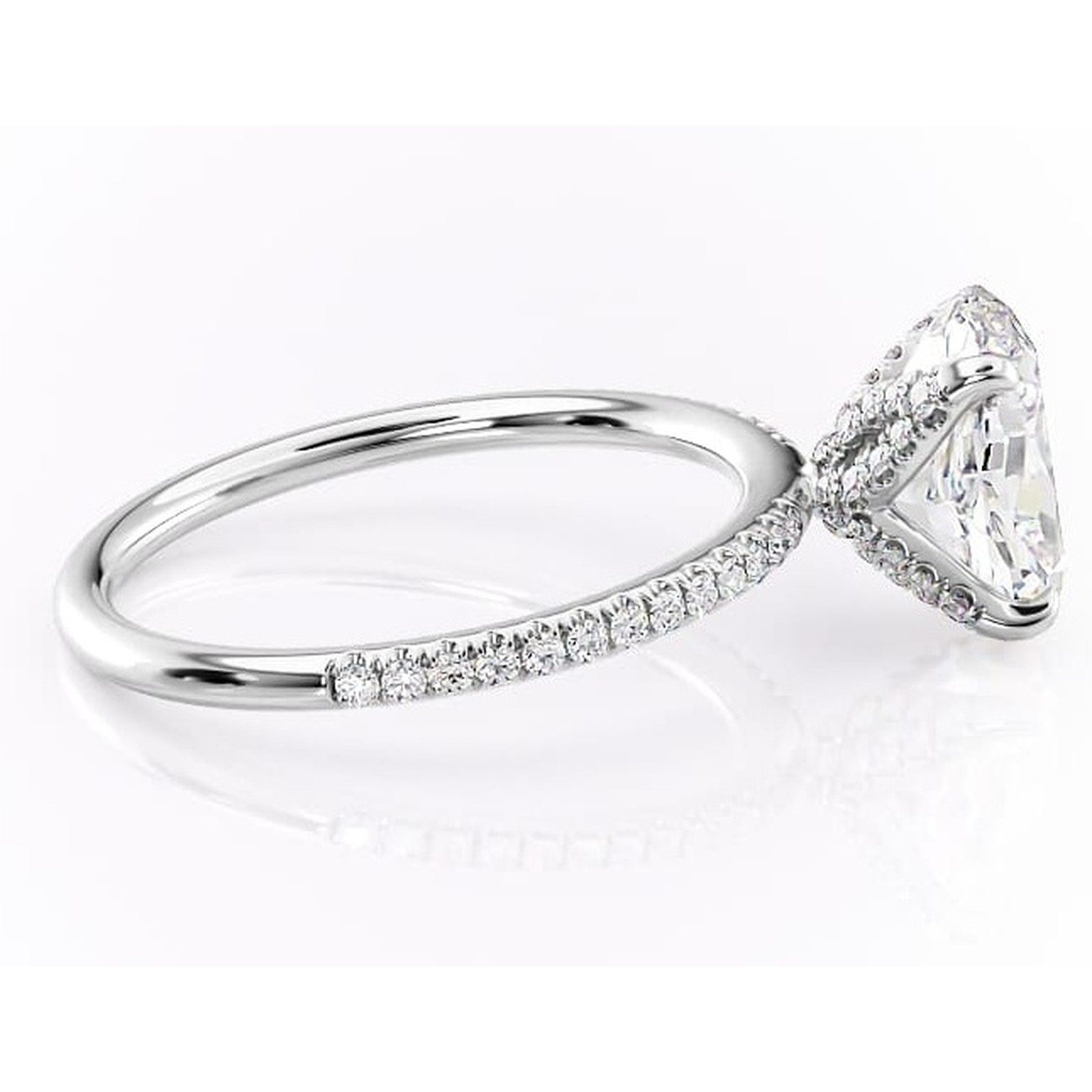 Inel de logodnă Cleo din aur Alb 14kt cu moissanite tăietură ovală – Montură pavé rafinată pentru profil înalt | Personalizează și configurează gratuit online