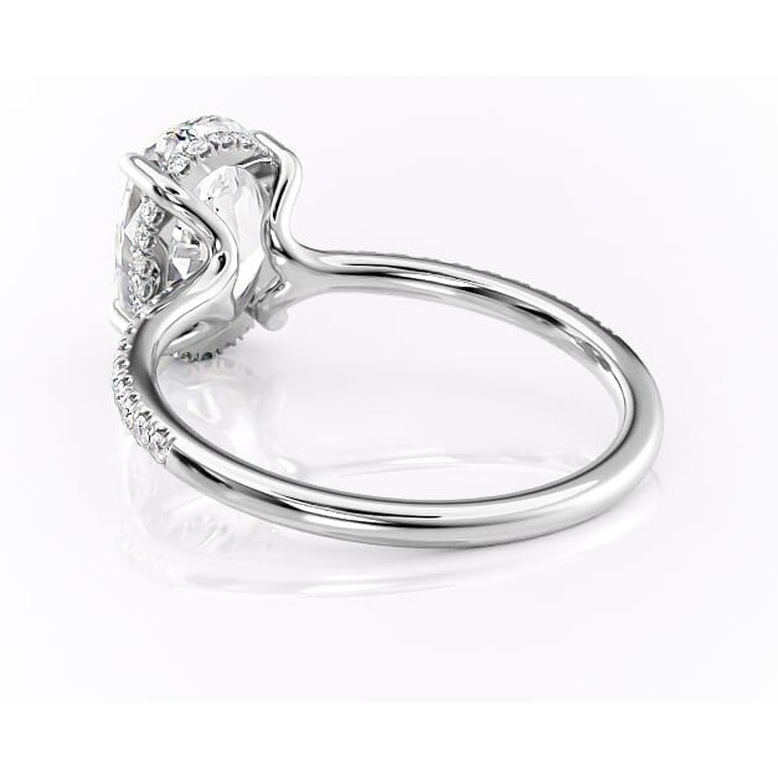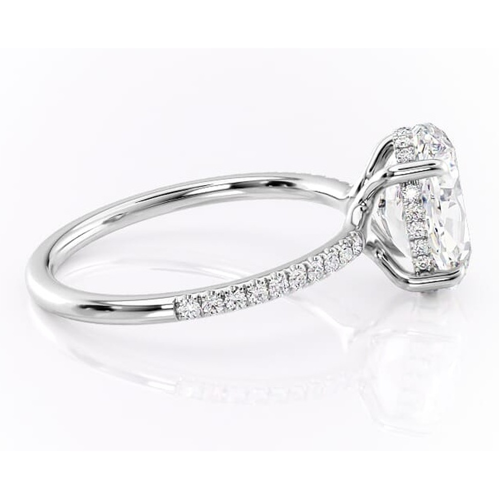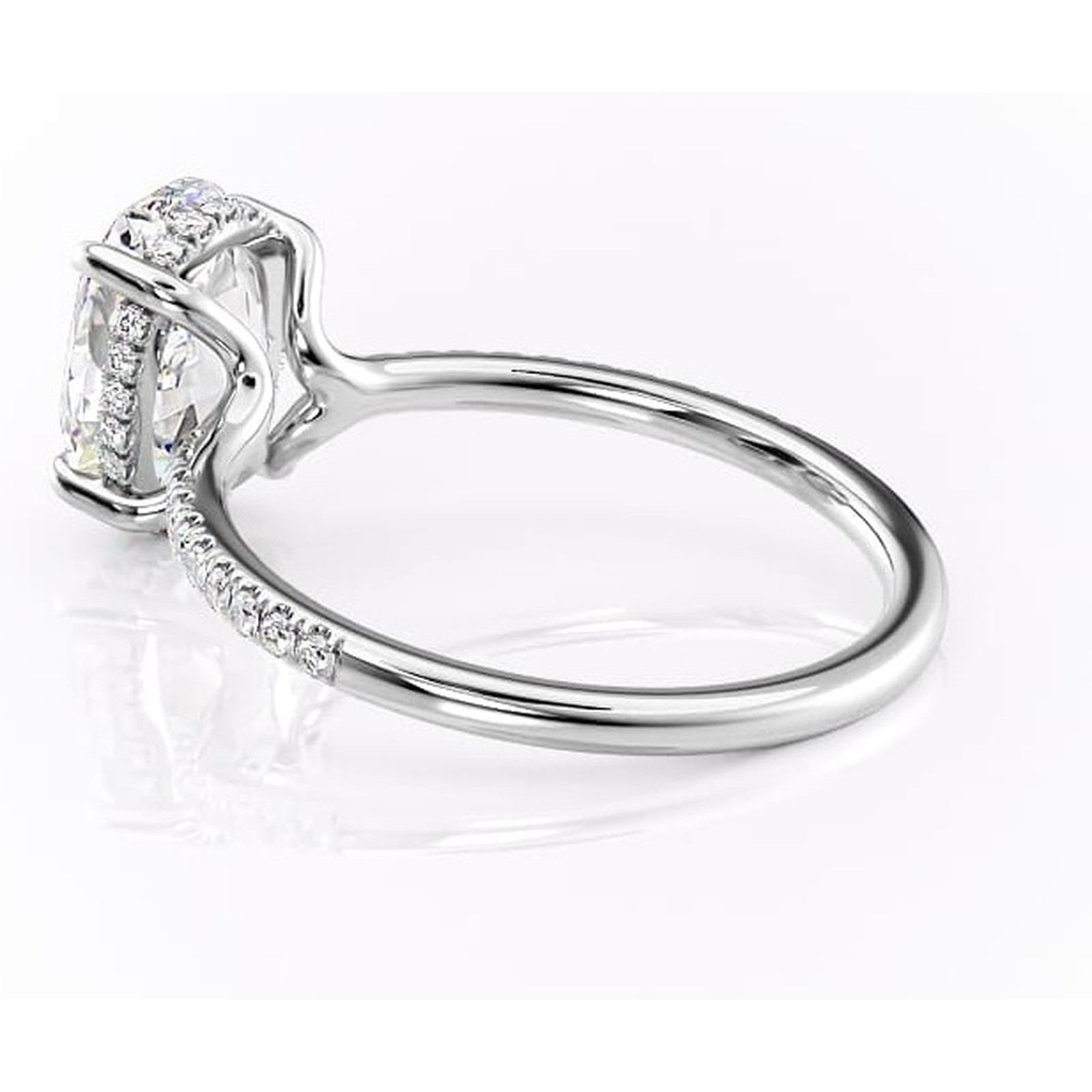 Inel de logodnă Daisy din aur Alb 14kt cu moissanite tăietură ovală – Montură pavé rafinată pentru profil jos | Personalizează și configurează gratuit online