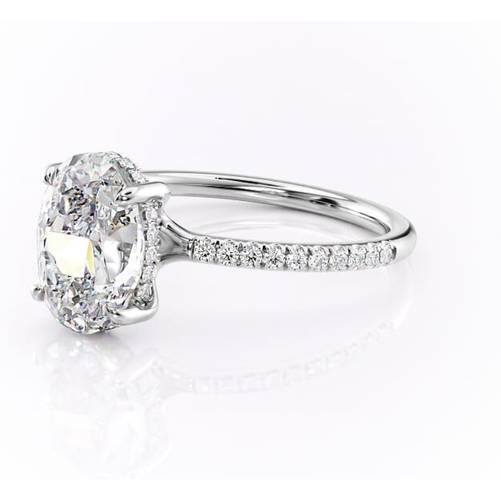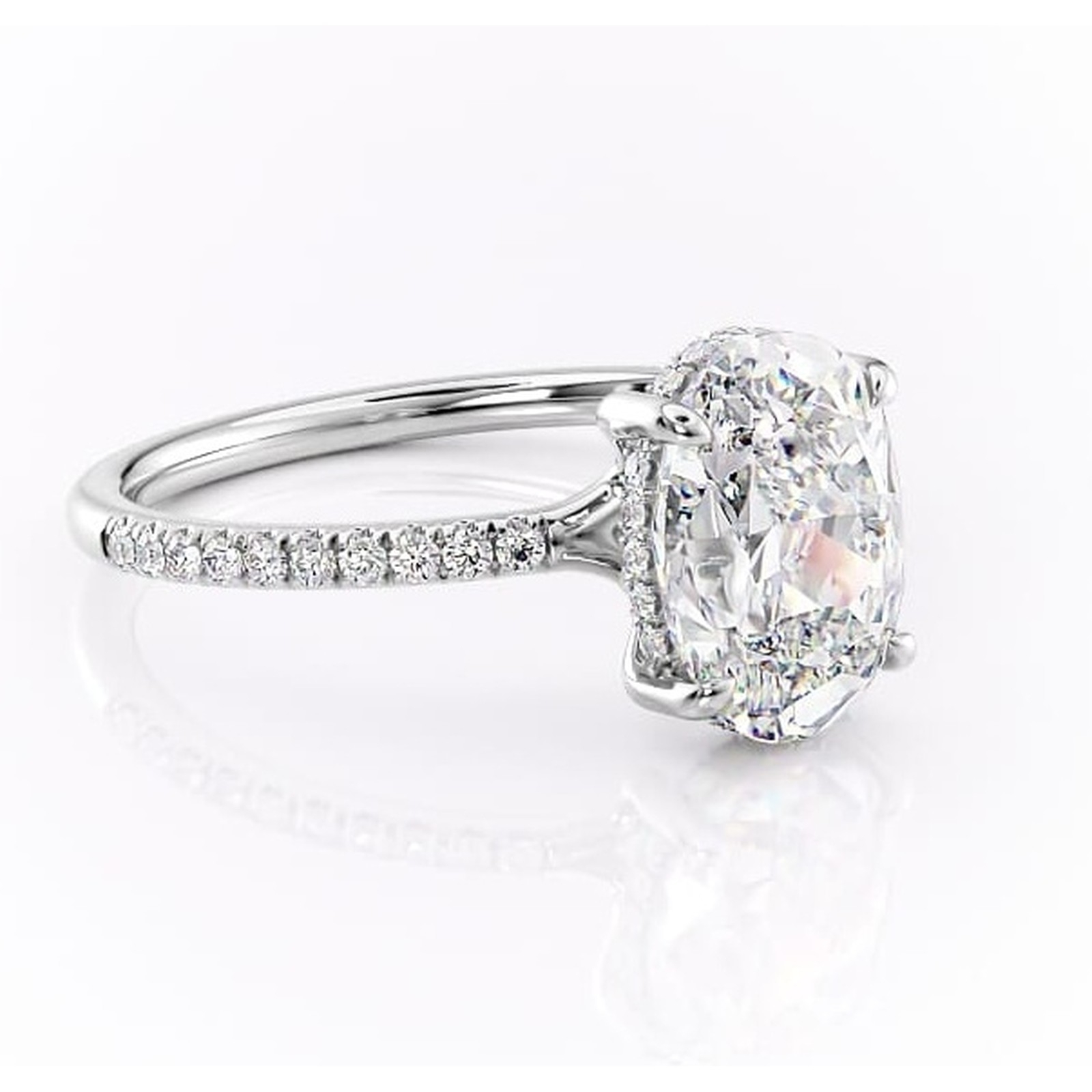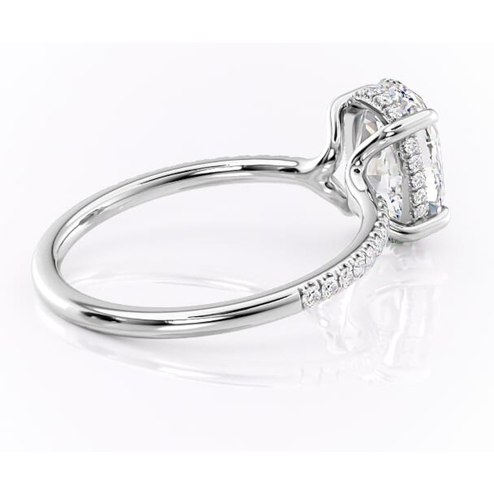 Inel de logodnă Daisy din aur Alb 14kt cu moissanite tăietură ovală – Montură pavé rafinată pentru profil jos | Personalizează și configurează gratuit online
