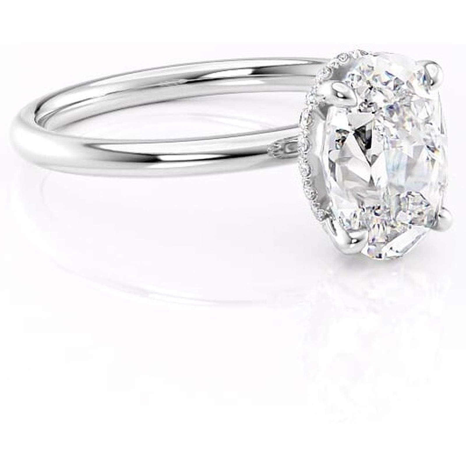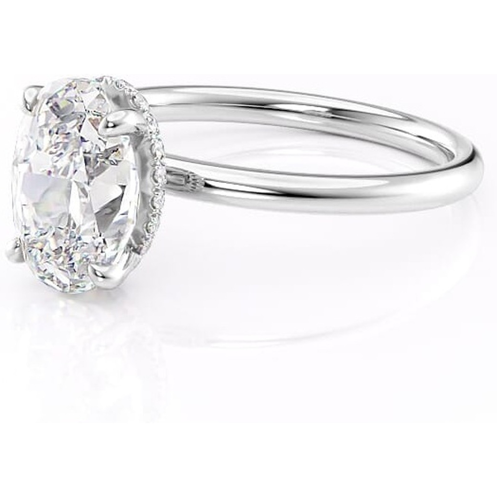 Inel de logodnă Indie din aur Alb 14kt cu moissanite tăietură ovală – Solitar rafinată pentru profil înalt | Personalizează și configurează gratuit online