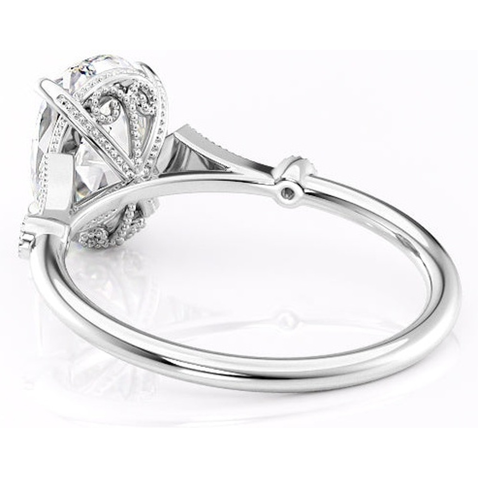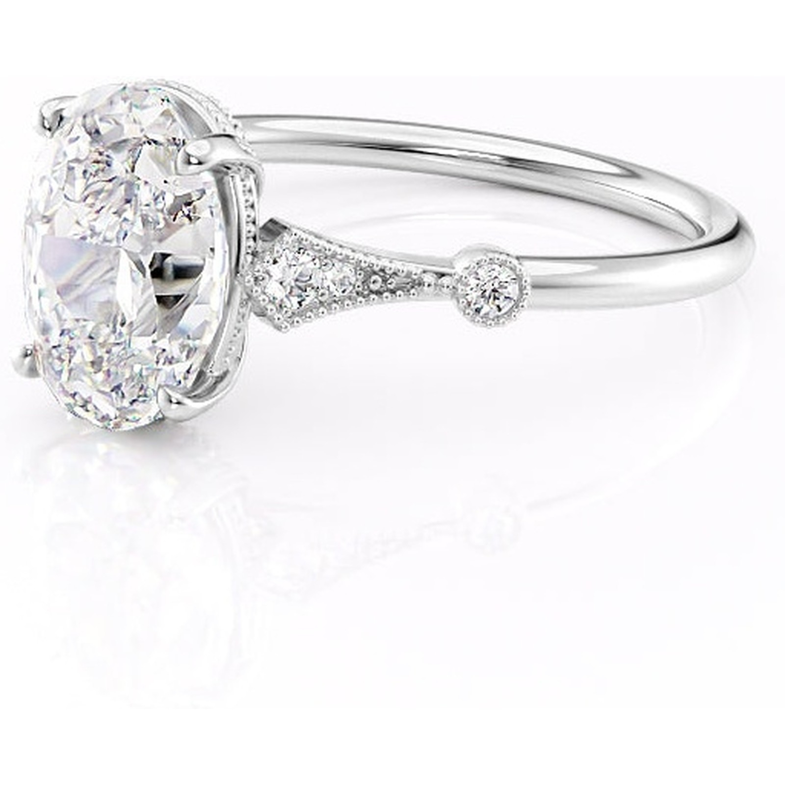 Inel de logodnă Lacey din aur Alb 14kt cu moissanite tăietură ovală – Pietre laterale rafinată pentru profil înalt | Personalizează și configurează gratuit online