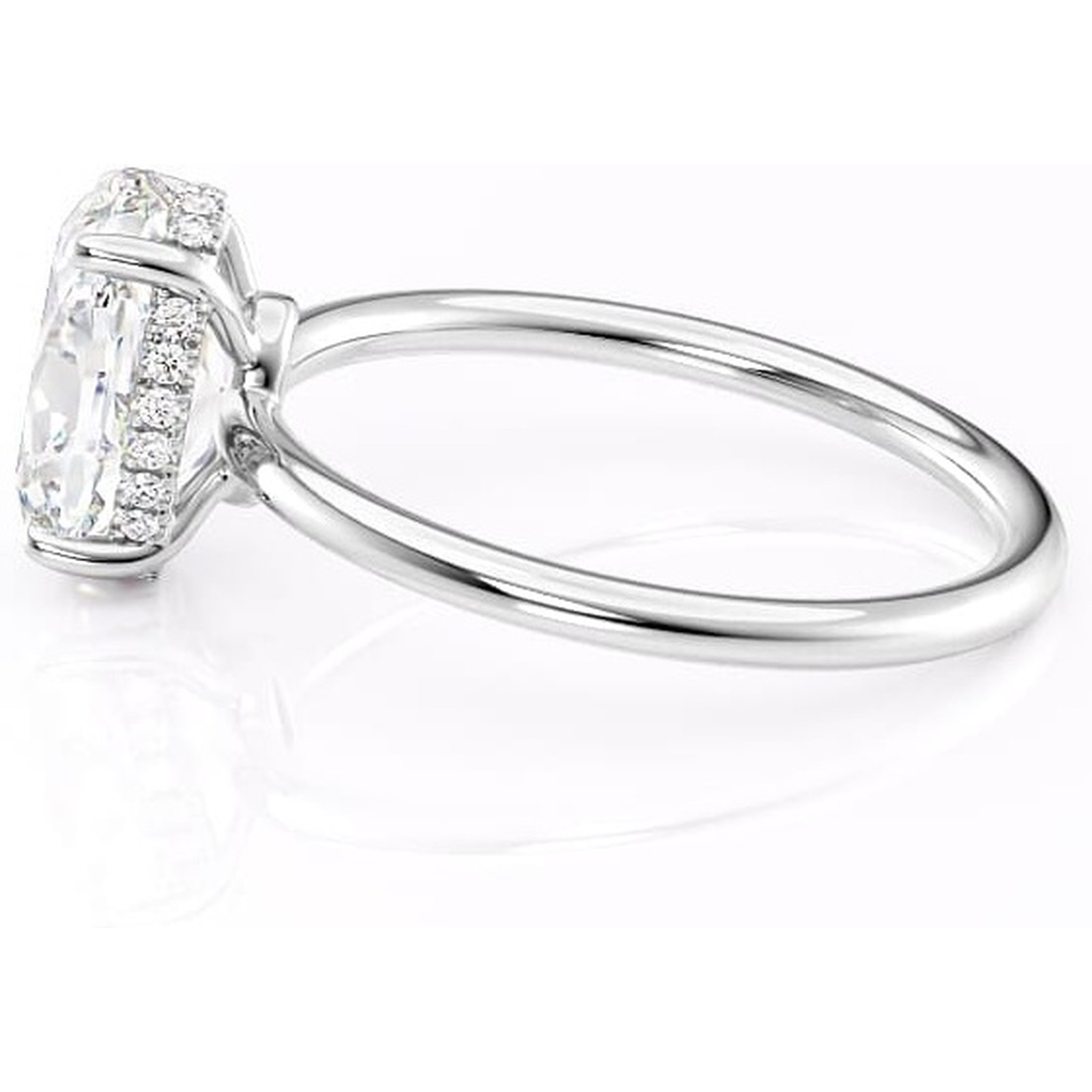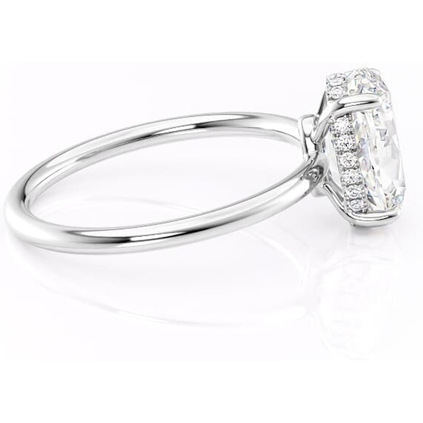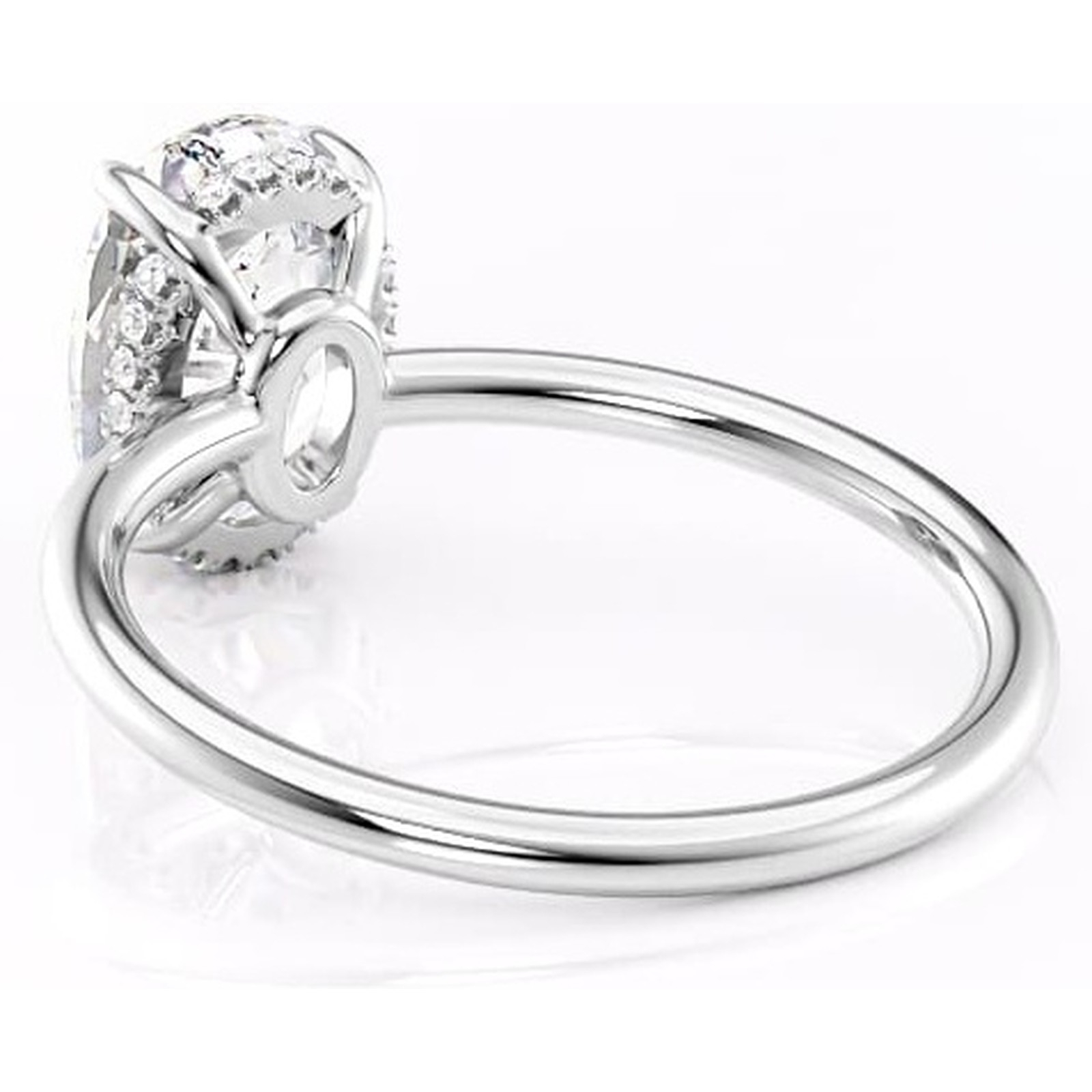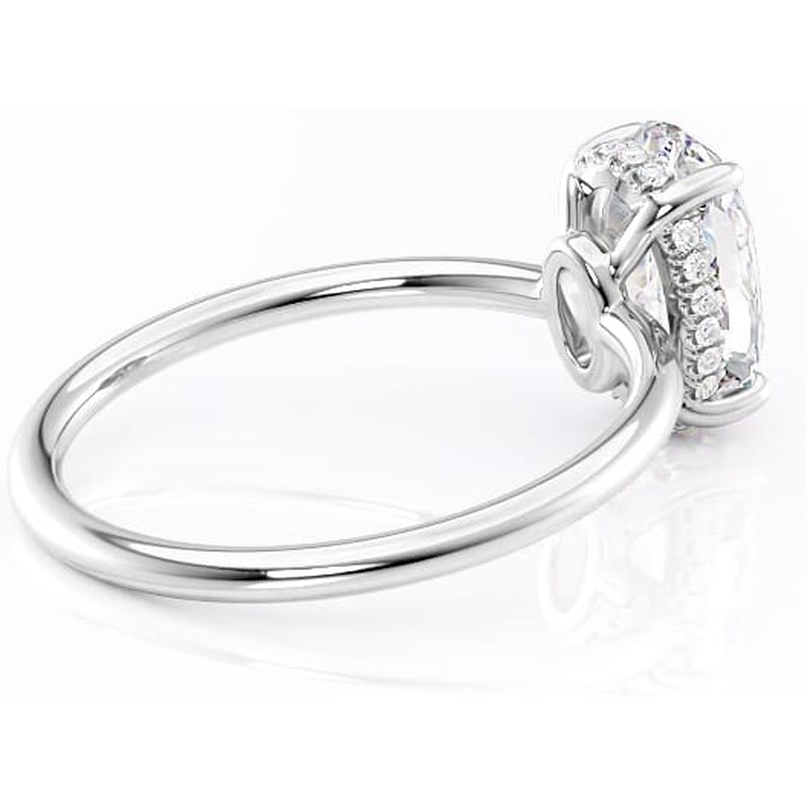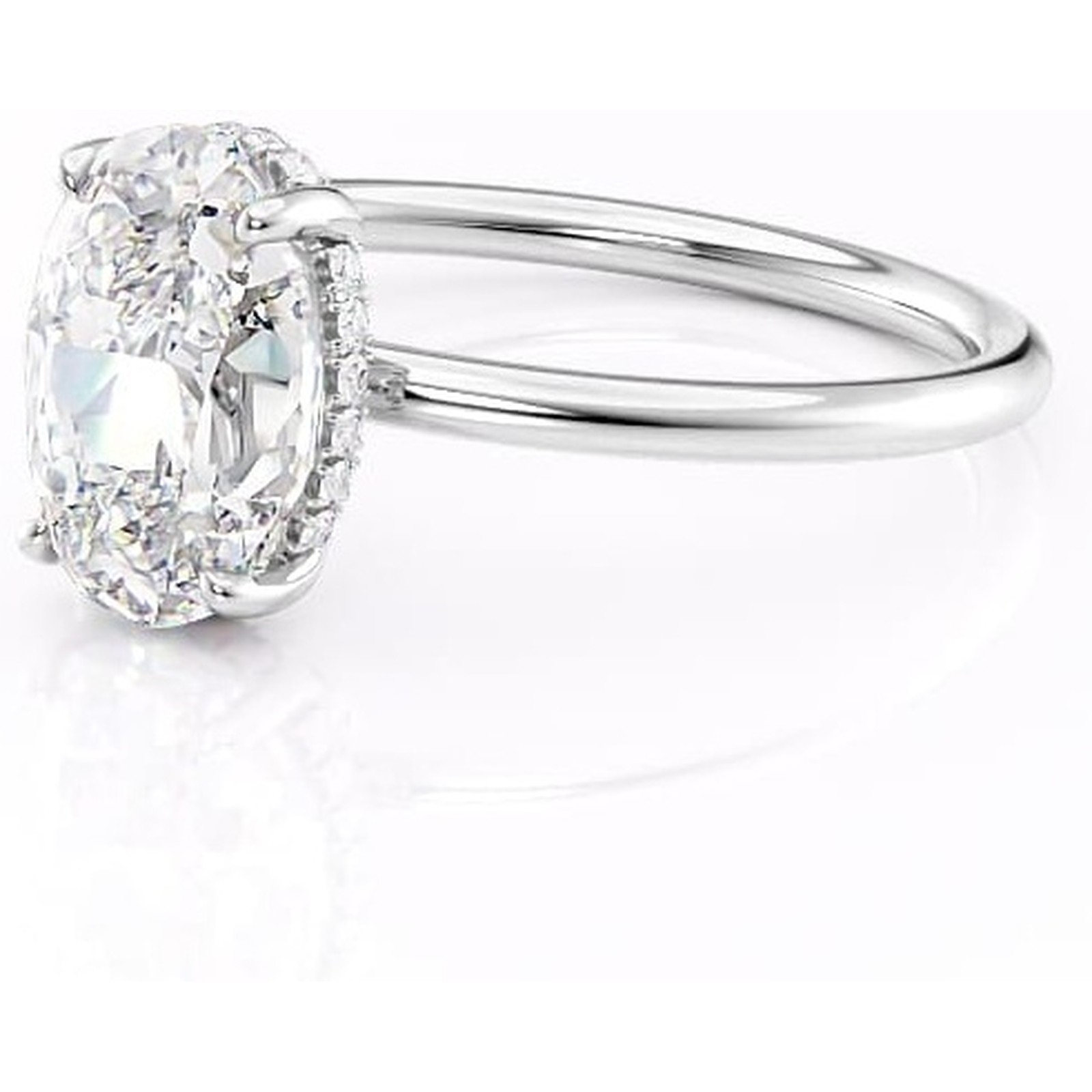 Inel de logodnă Nyla din aur Alb 14kt cu moissanite tăietură ovală – Montură Kamellie joasă rafinată pentru profil jos | Personalizează și configurează gratuit online