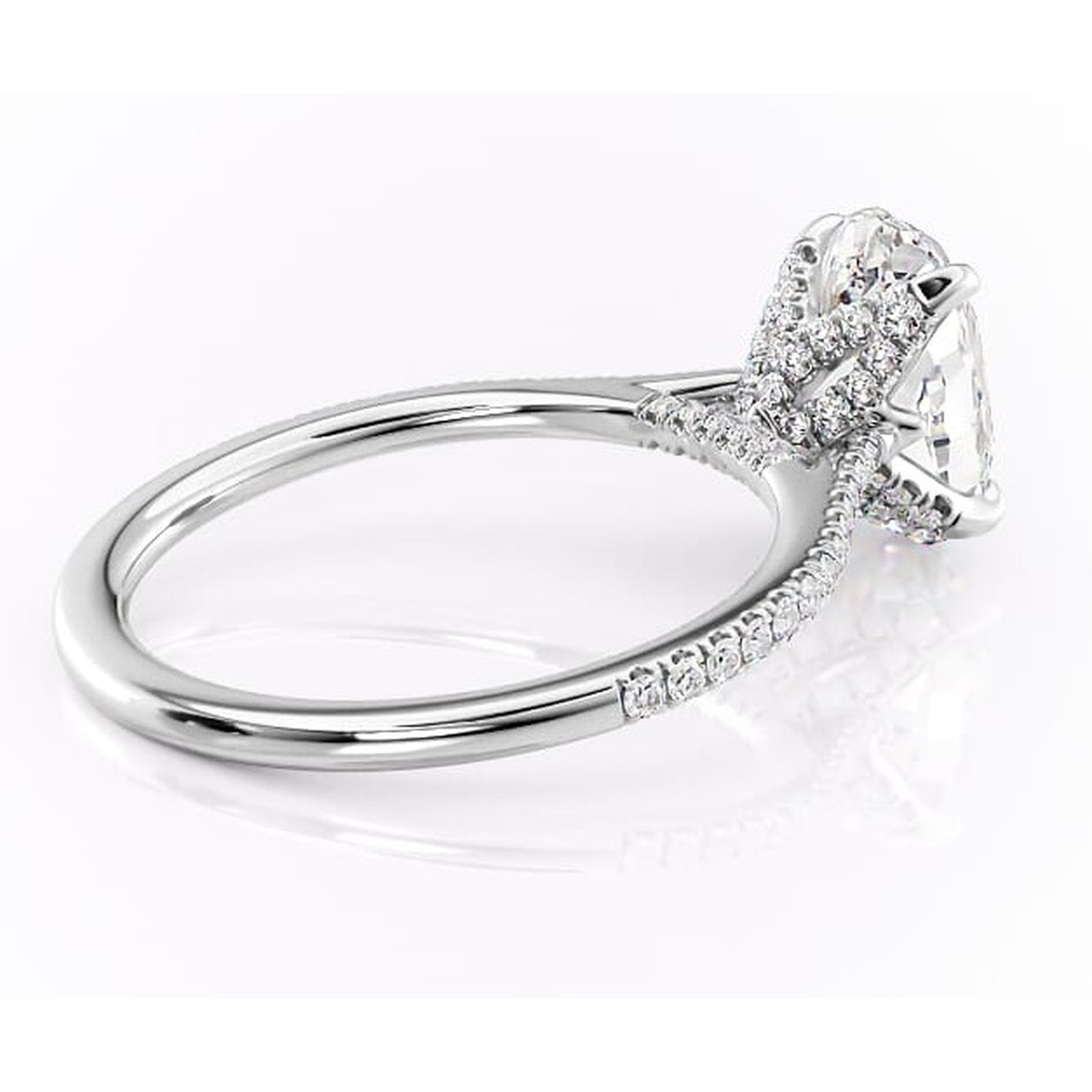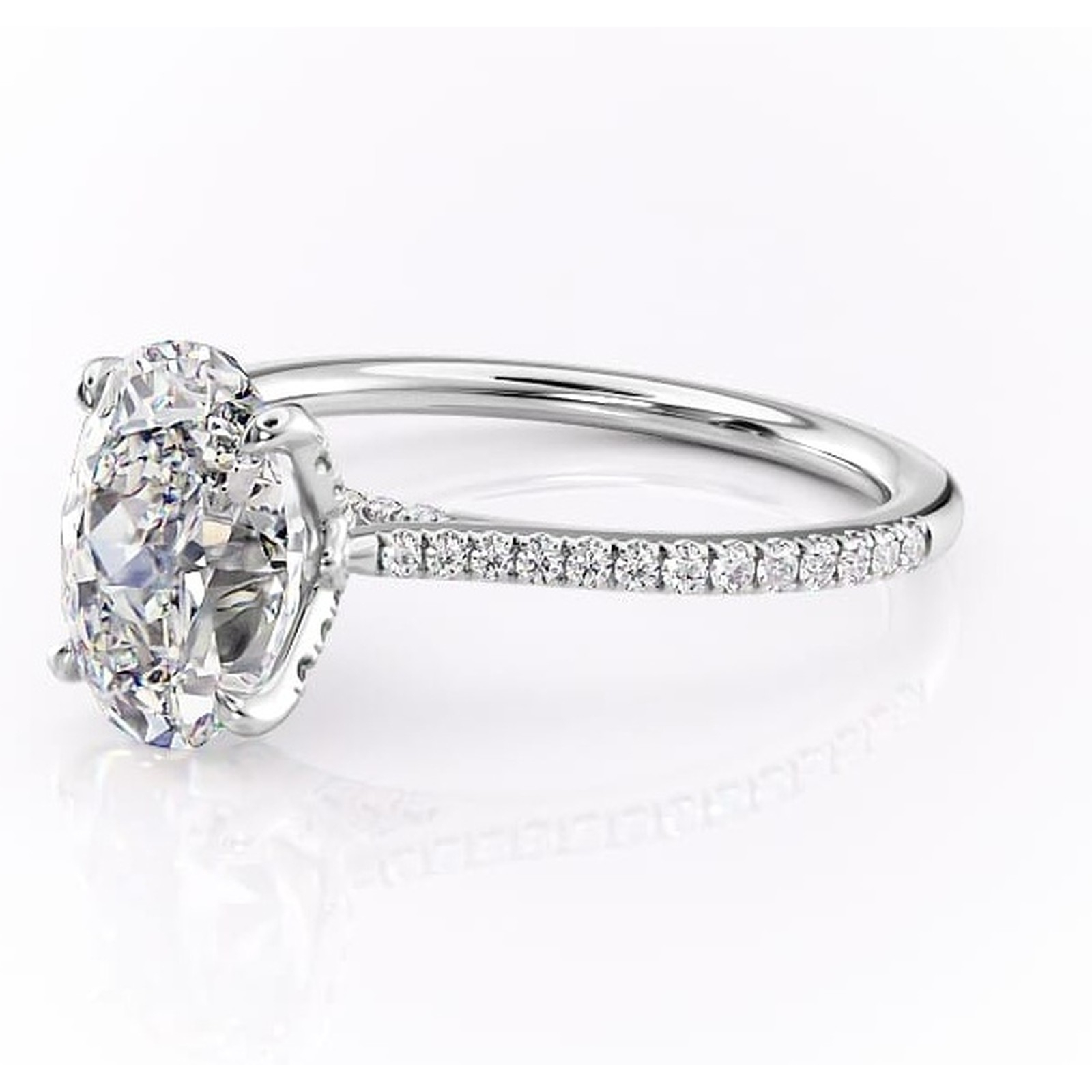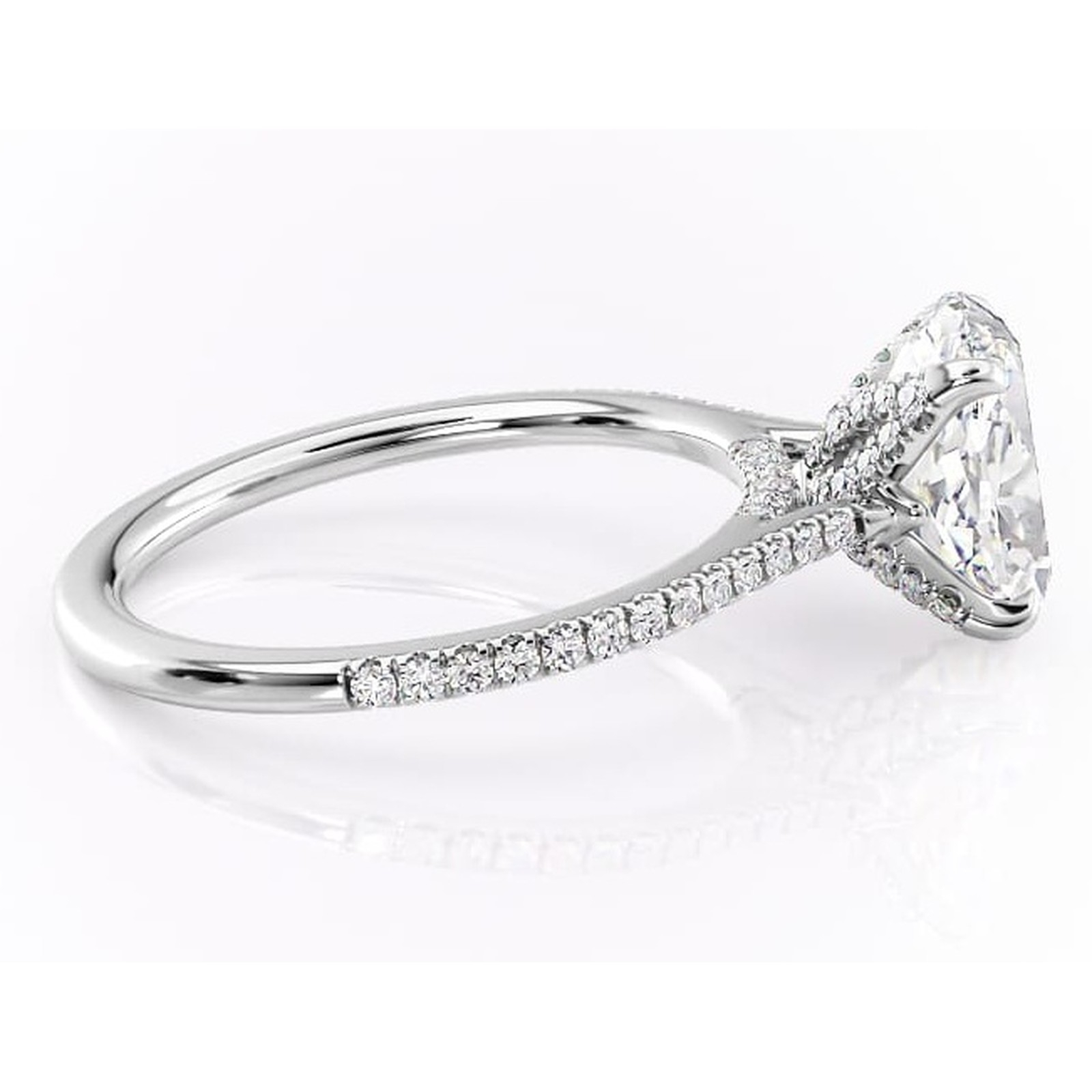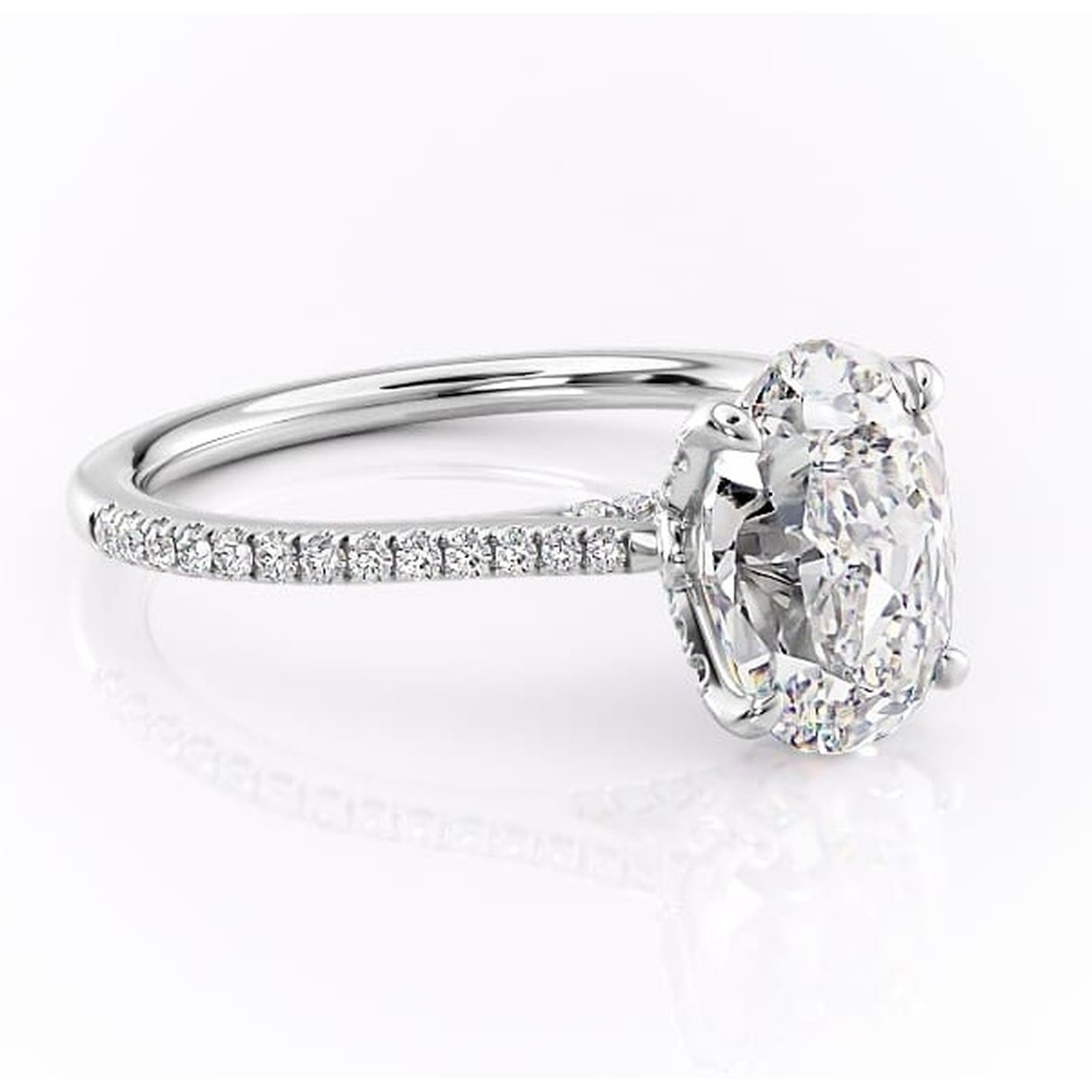 Inel de logodnă Tove din aur Alb 14kt cu moissanite tăietură ovală – Montură pavé rafinată pentru profil înalt | Personalizează și configurează gratuit online