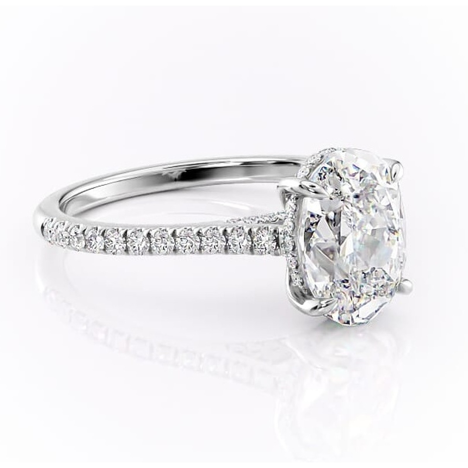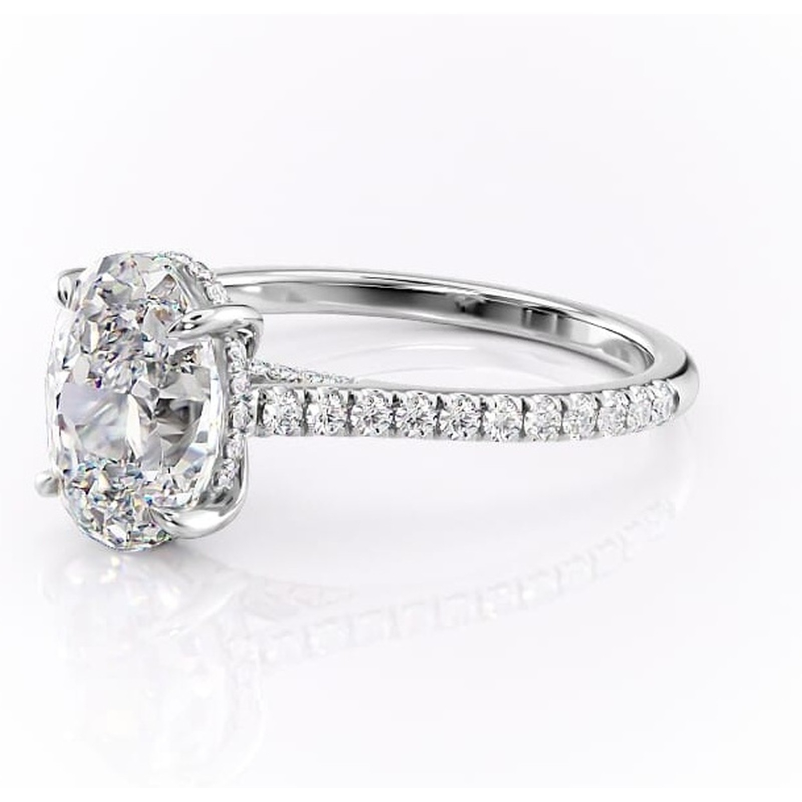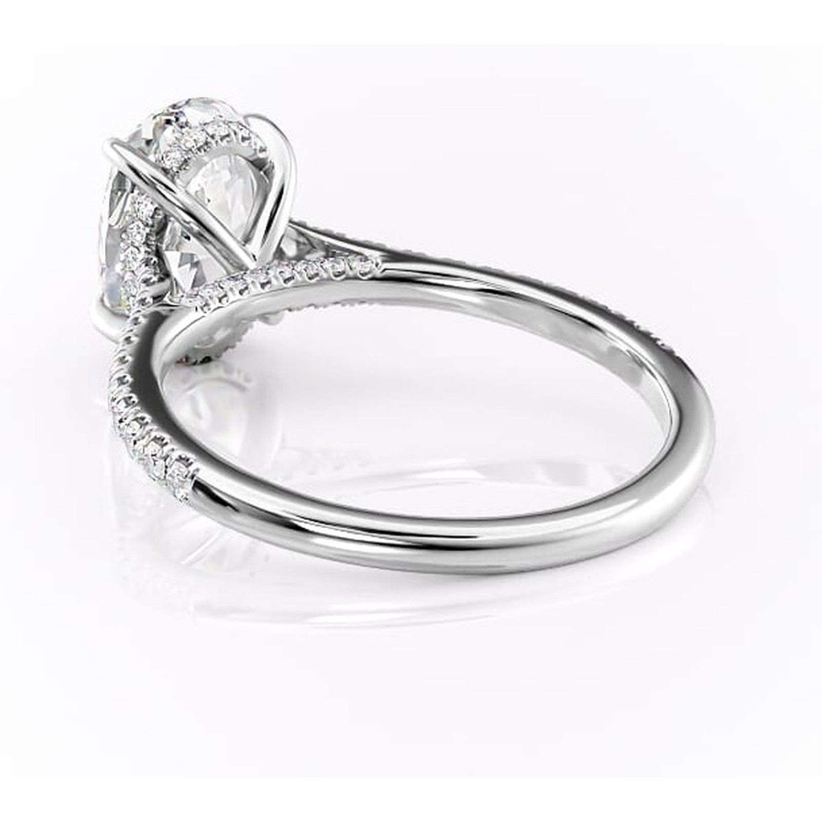 Inel de logodnă Zella din aur Alb 14kt cu moissanite tăietură ovală – Montură pavé rafinată pentru profil înalt | Personalizează și configurează gratuit online