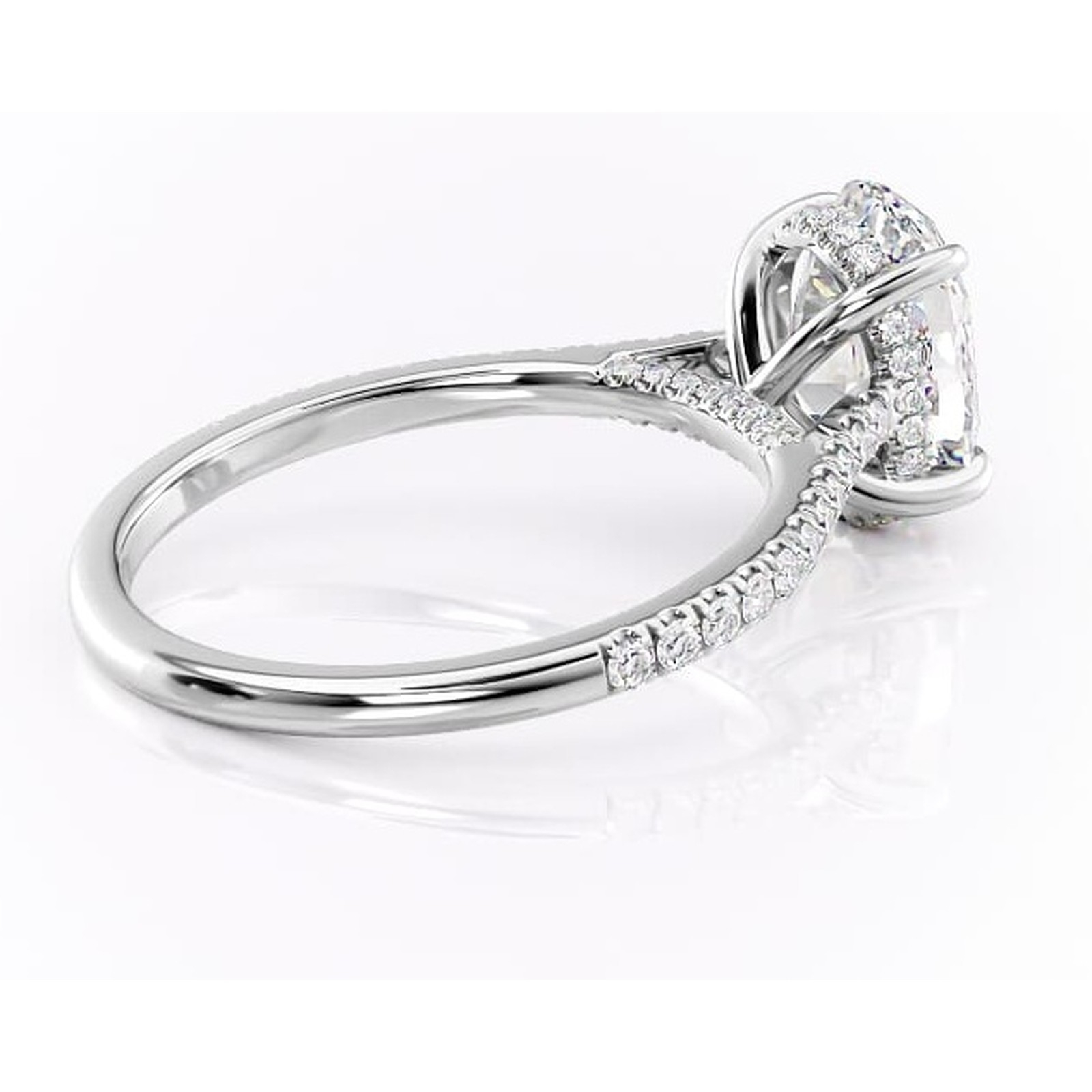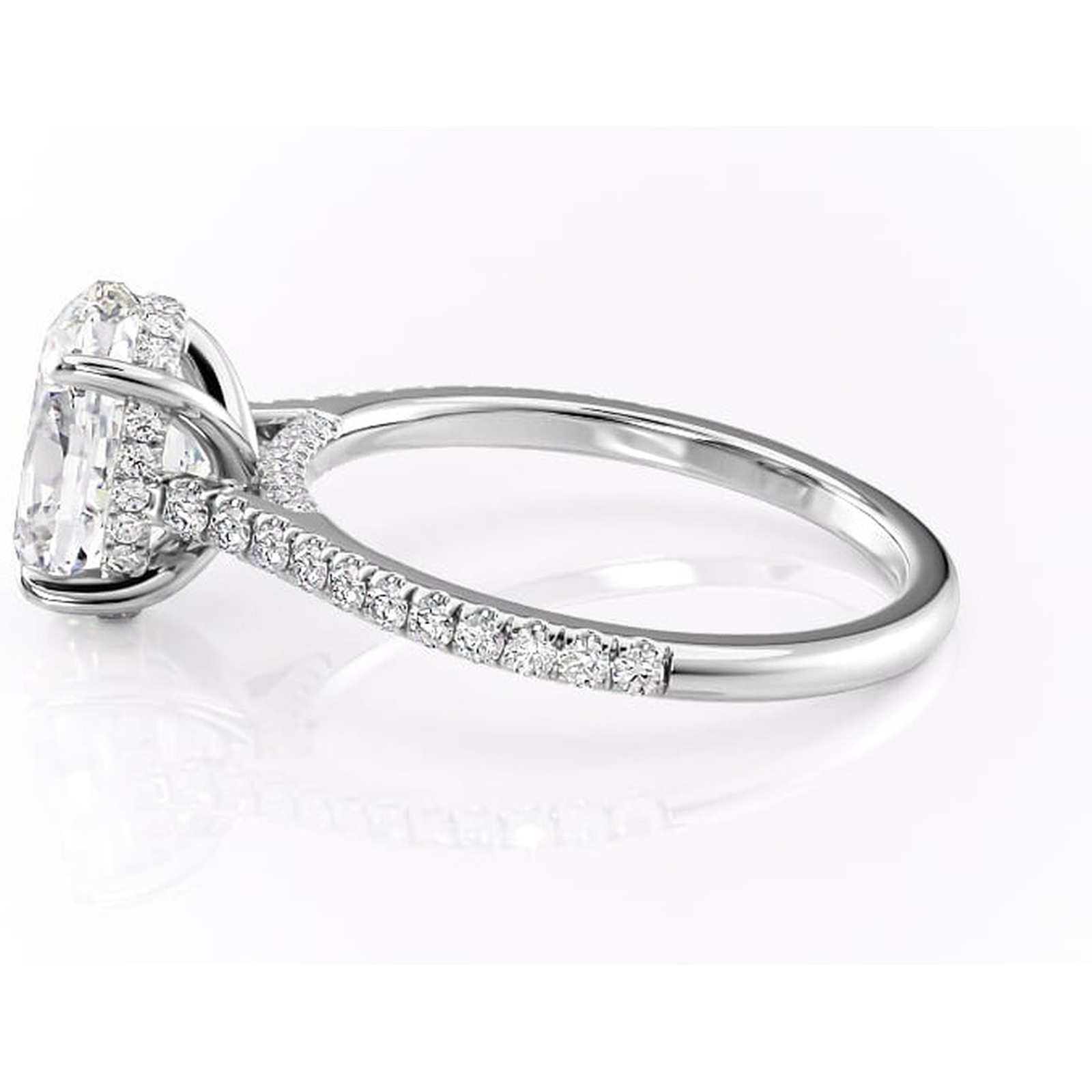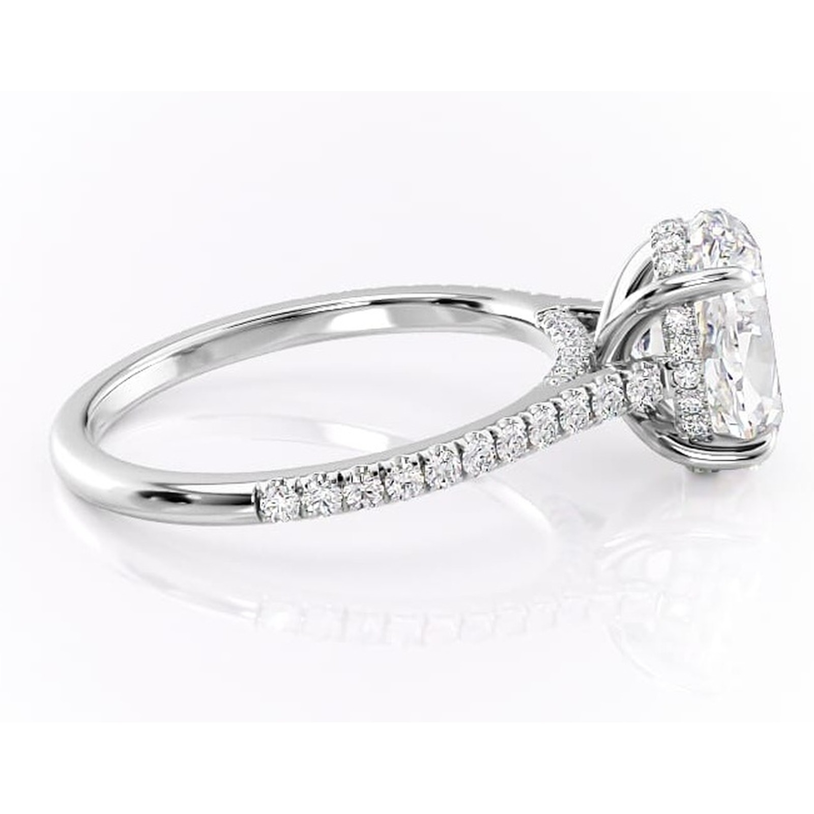 Inel de logodnă Zella din aur Alb 14kt cu moissanite tăietură ovală – Montură pavé rafinată pentru profil înalt | Personalizează și configurează gratuit online