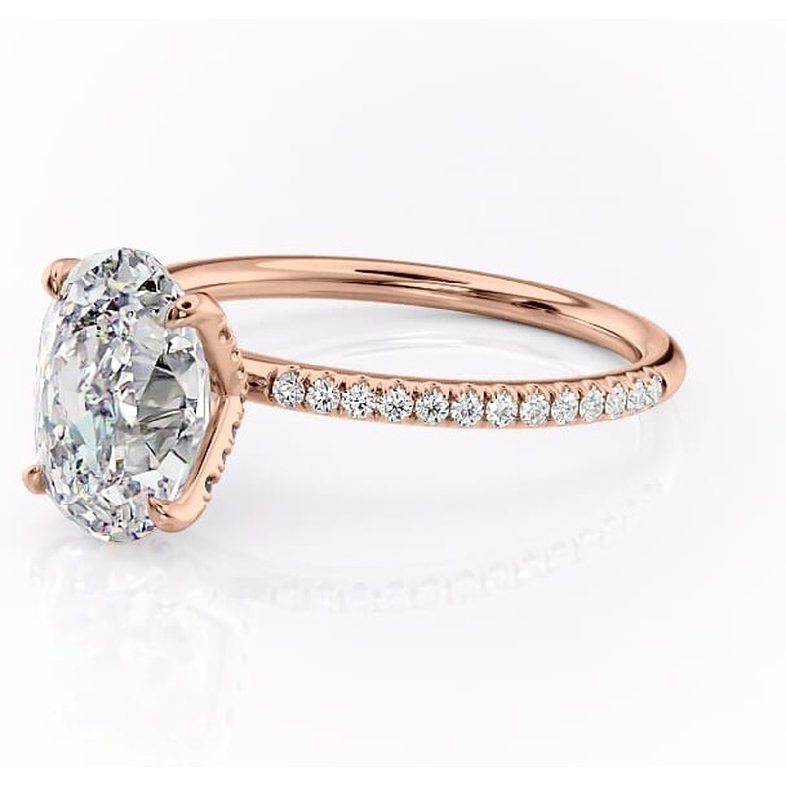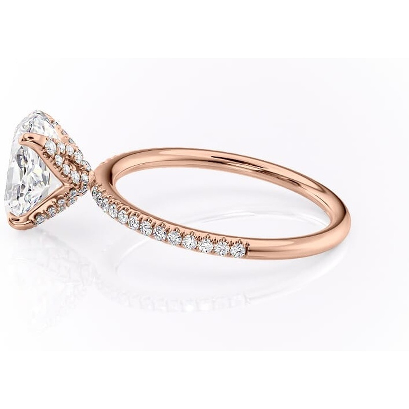 Inel de logodnă Cleo din aur Rose 14kt cu moissanite tăietură ovală – Montură pavé rafinată pentru profil înalt | Personalizează și configurează gratuit online