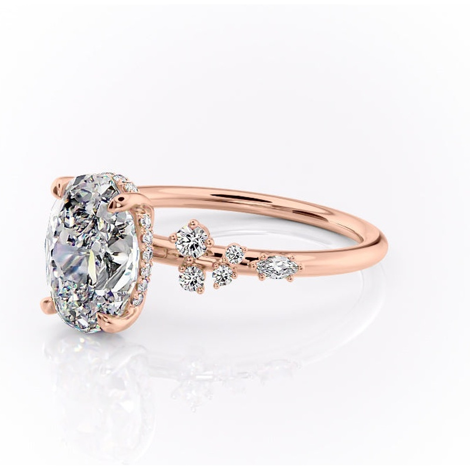 Inel de logodnă Elaris din aur Rose 14kt cu moissanite tăietură ovală – Pietre laterale rafinată pentru profil înalt | Personalizează și configurează gratuit online