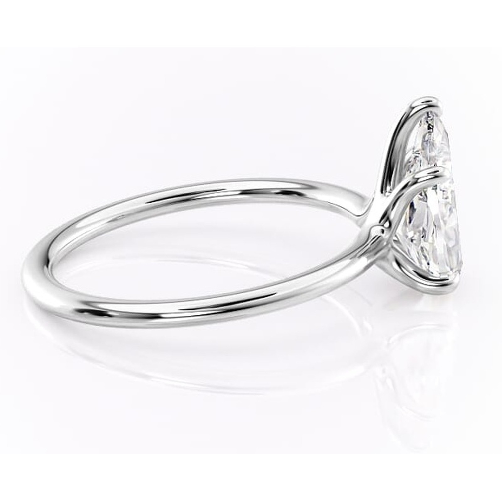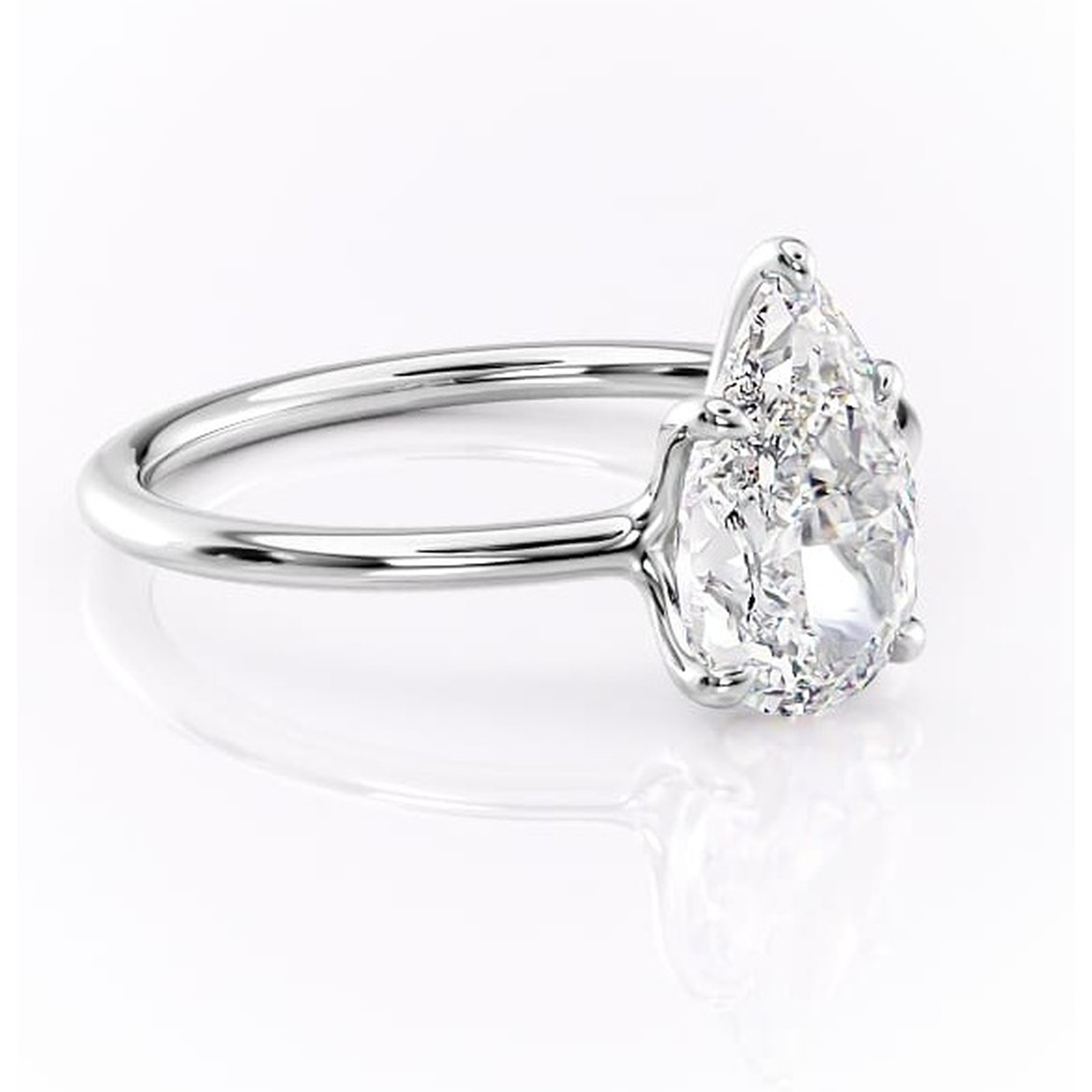 Inel de logodnă Helena din aur Alb 14kt cu moissanite tăietură pară – Solitar rafinată pentru profil jos | Personalizează și configurează gratuit online