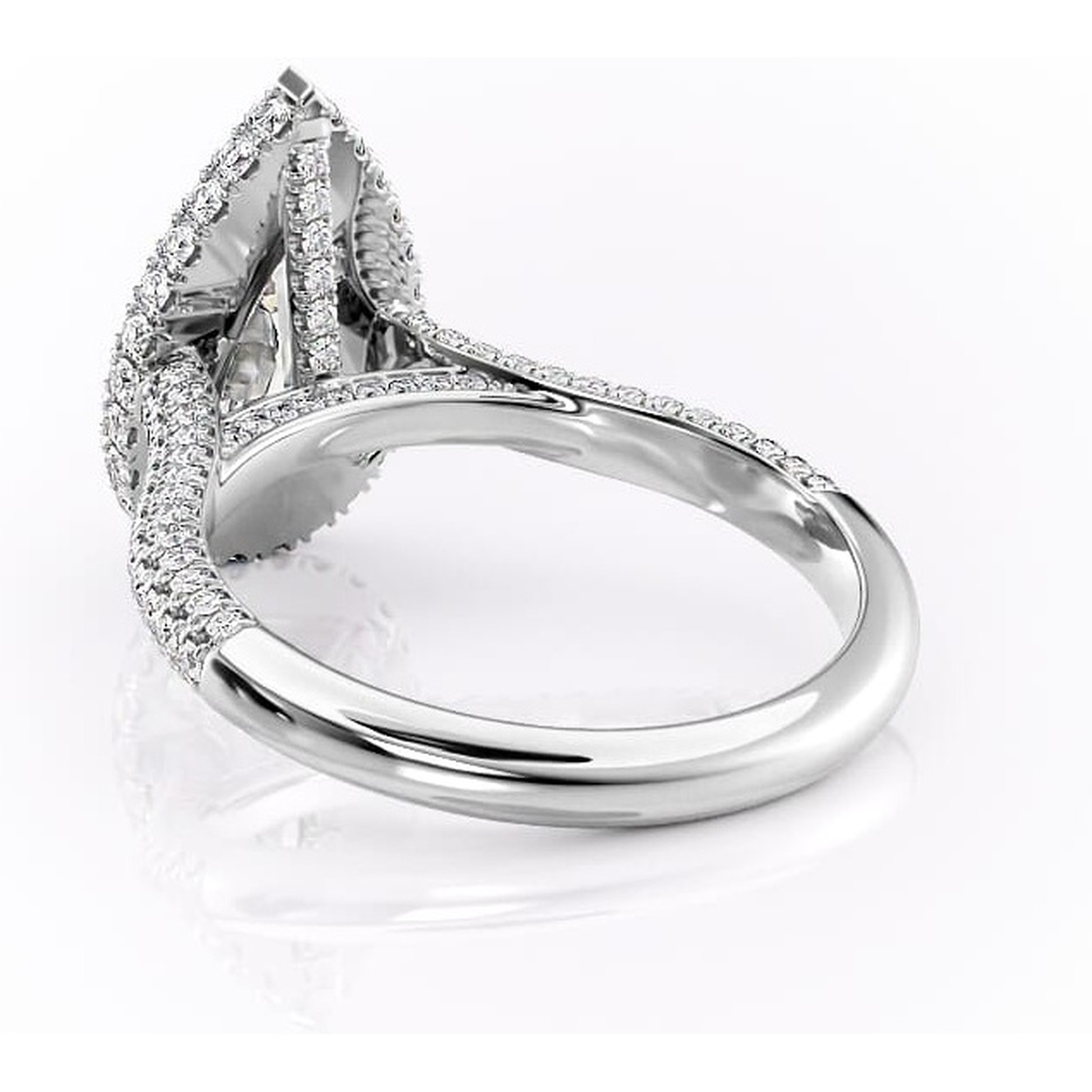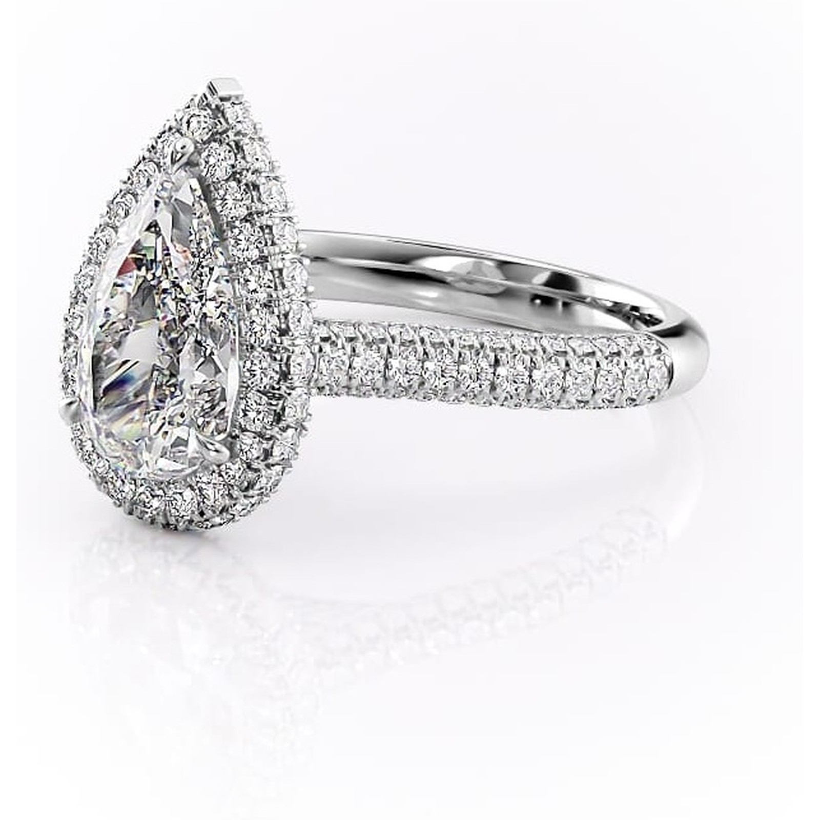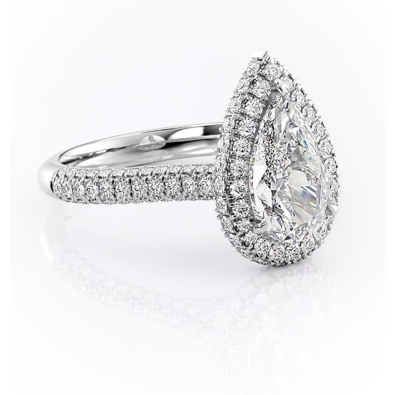 Inel de logodnă Nerina din aur Alb 14kt cu moissanite tăietură pară – Halo rafinată pentru profil înalt | Personalizează și configurează gratuit online