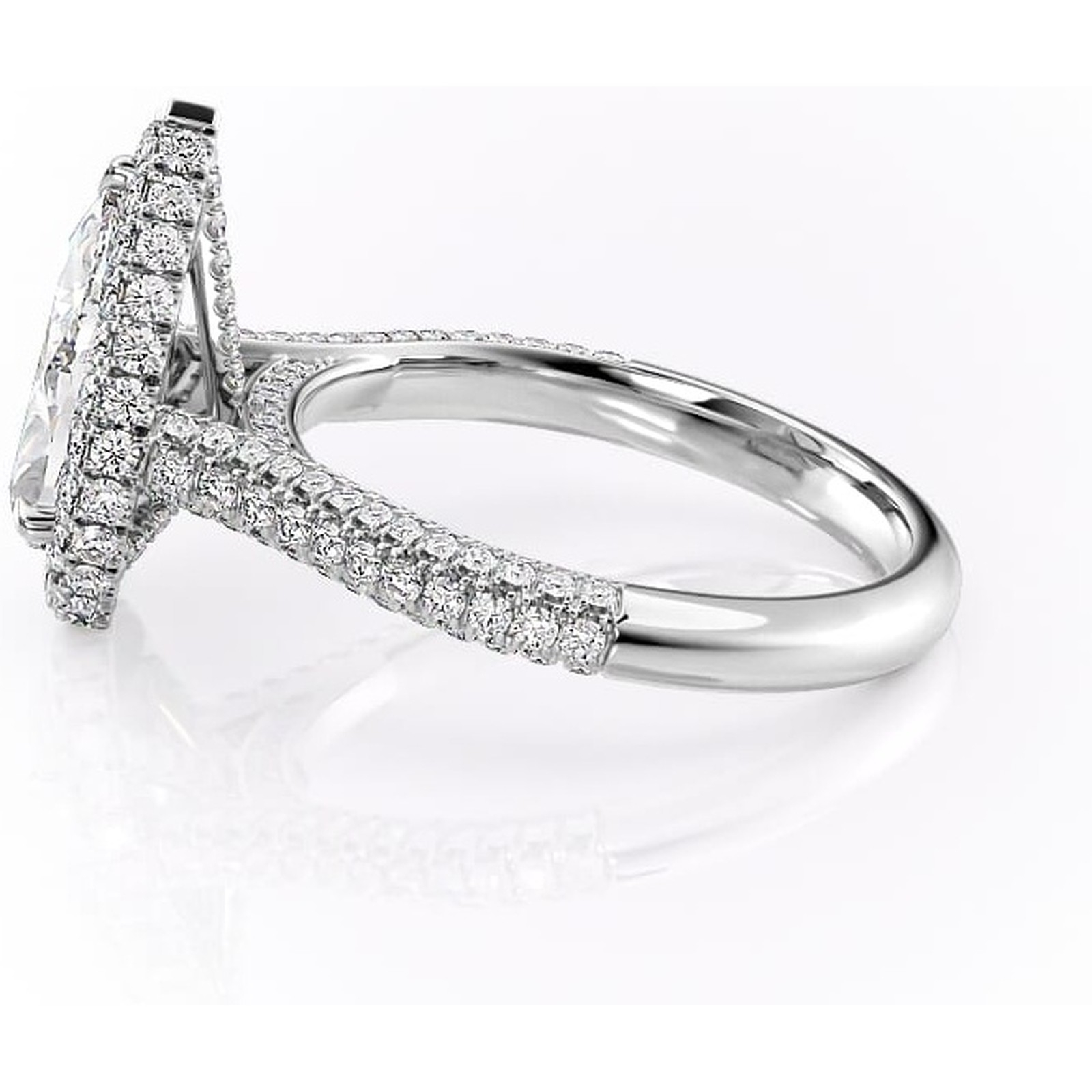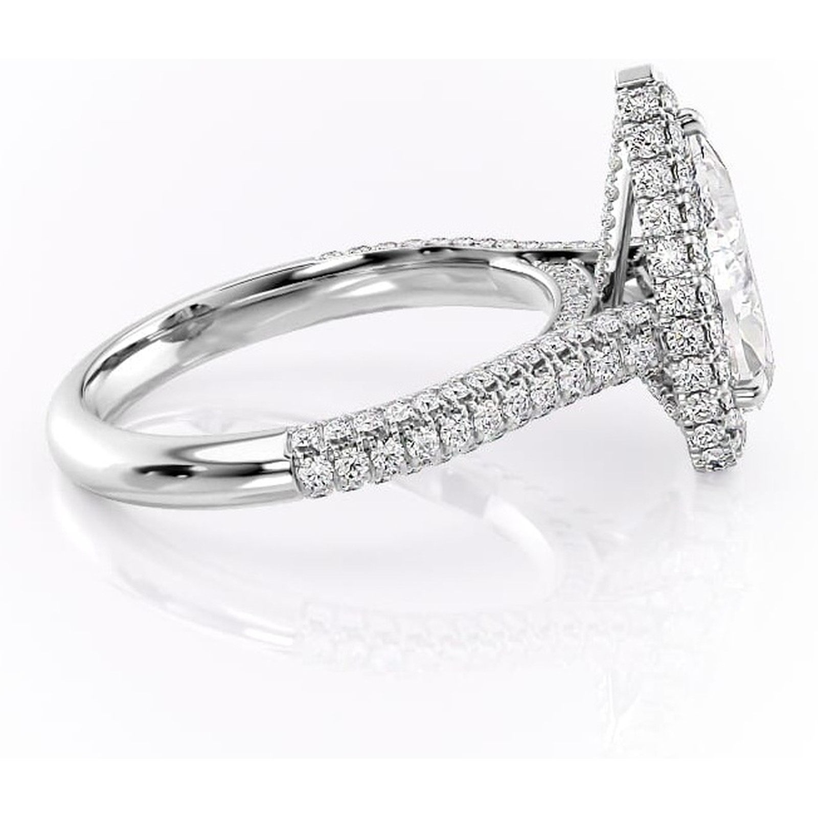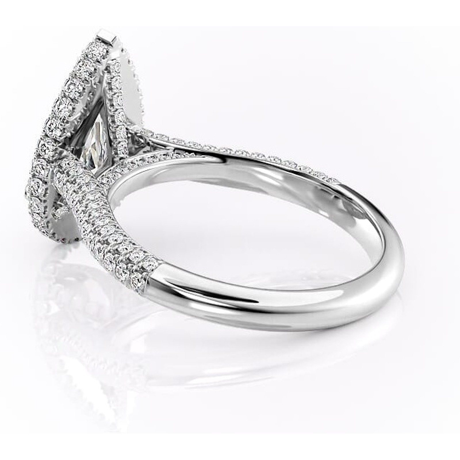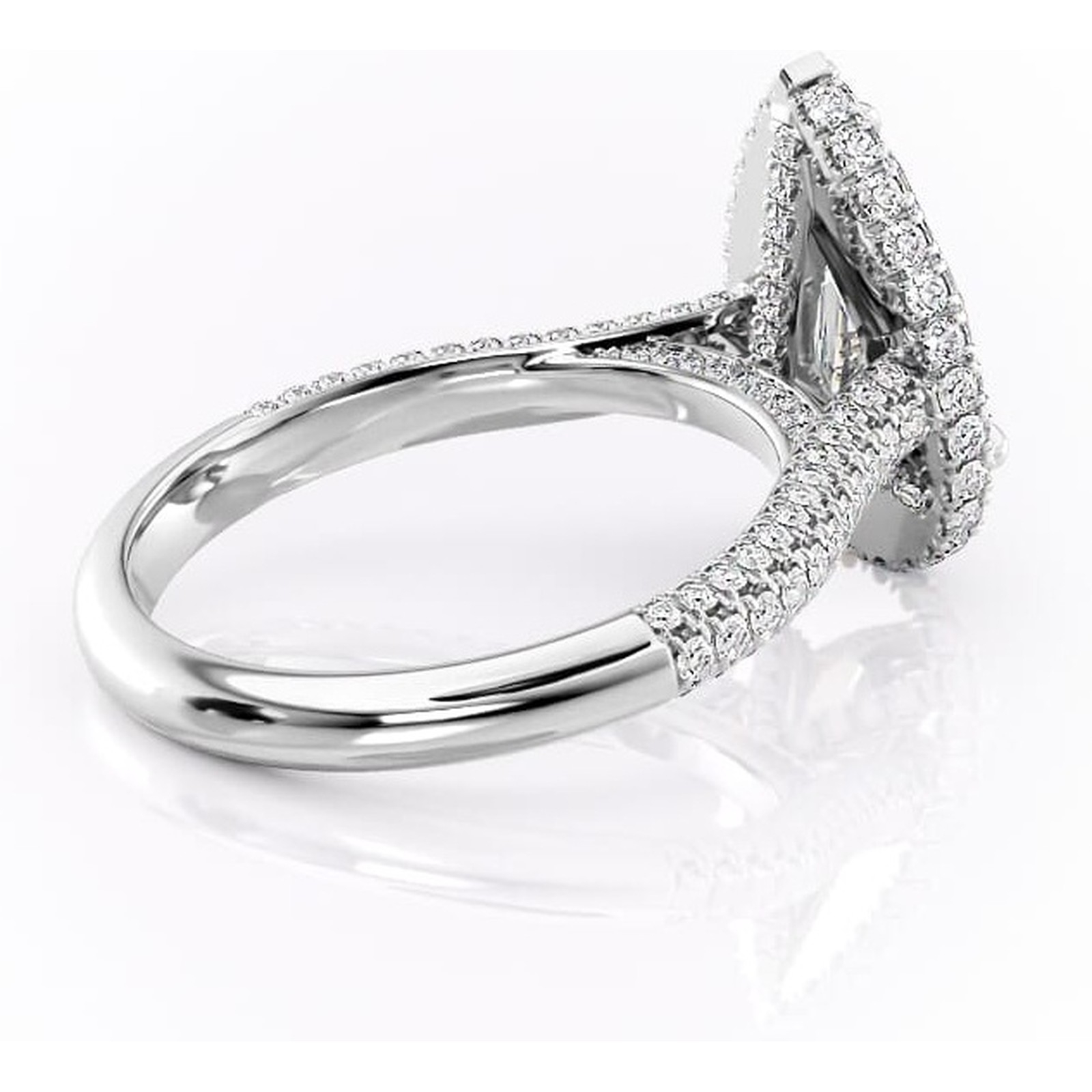 Inel de logodnă Nerina din aur Alb 14kt cu moissanite tăietură pară – Halo rafinată pentru profil înalt | Personalizează și configurează gratuit online
