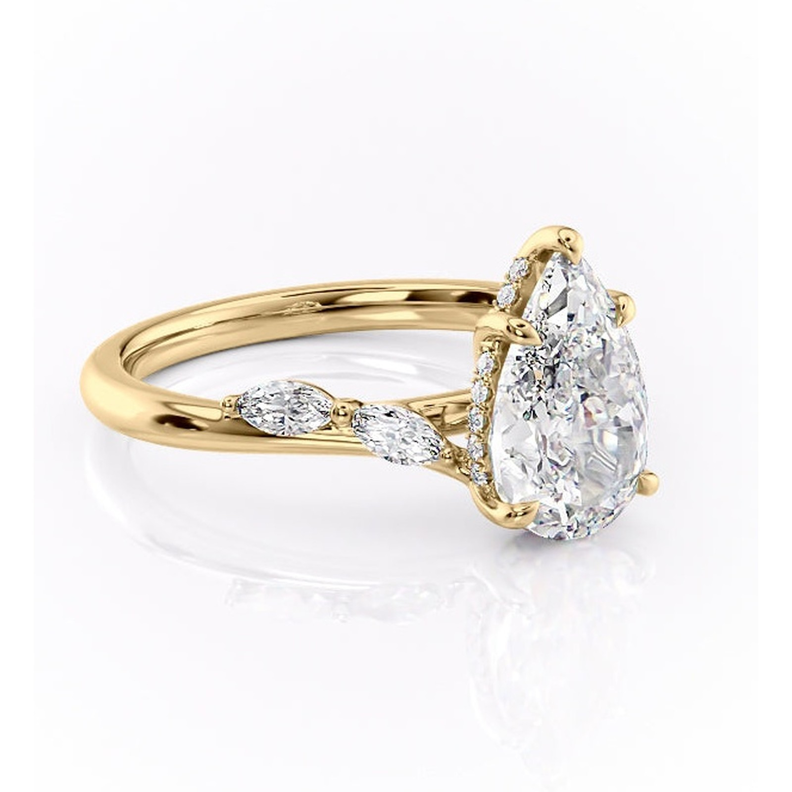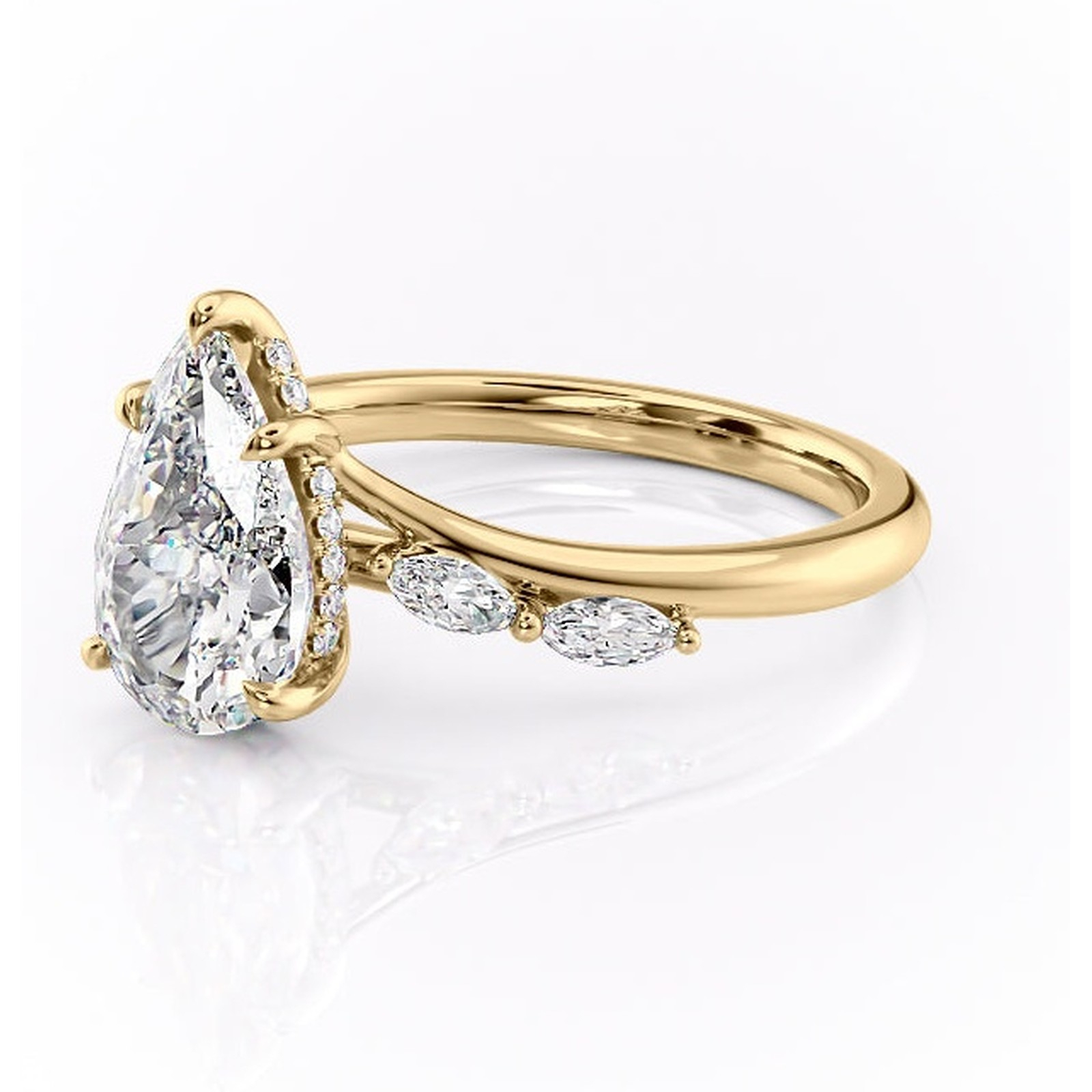 Inel de logodnă Faelynn din aur Galben 18kt cu moissanite tăietură pară – Pietre laterale rafinată pentru profil înalt | Personalizează și configurează gratuit online
