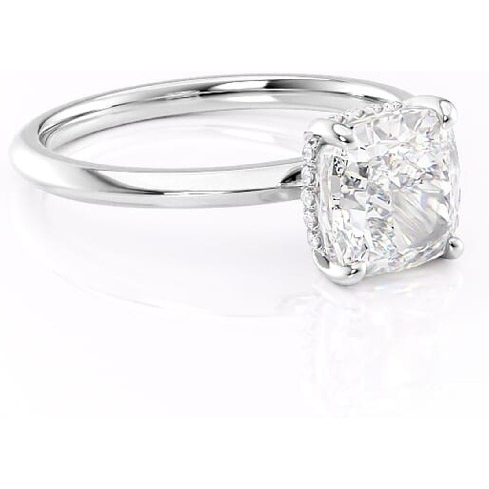 Inel de logodnă Lavender din aur Alb 14kt cu moissanite tăietură pernă – Solitar rafinată pentru profil înalt | Personalizează și configurează gratuit online