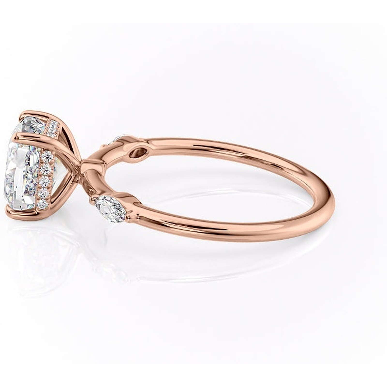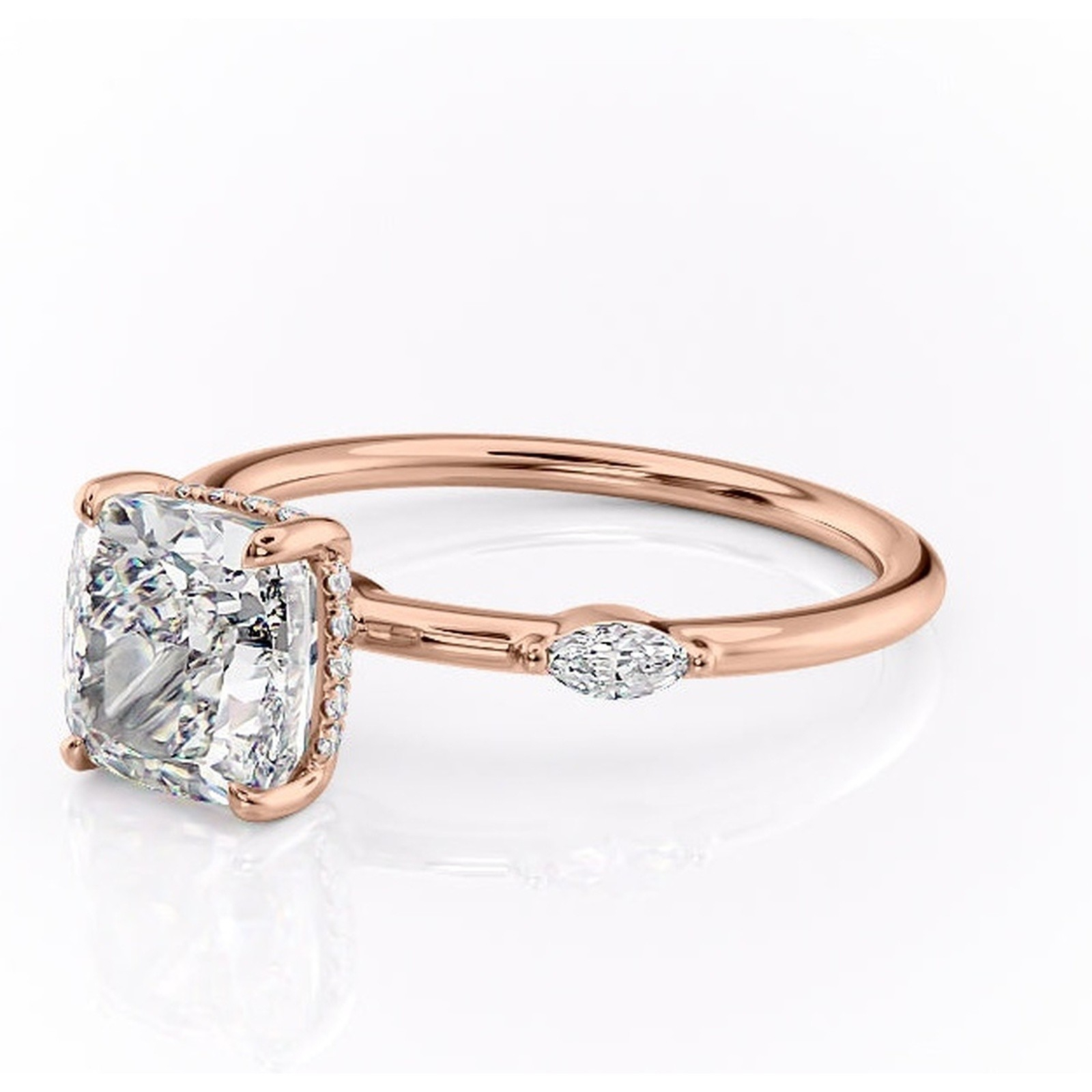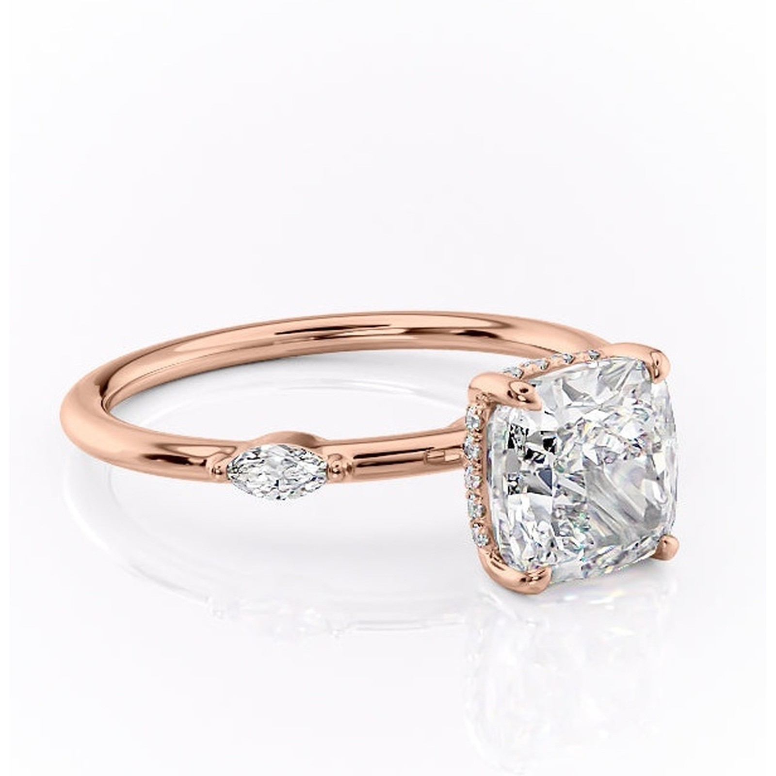 Inel de logodnă Gemina din aur Rose 14kt cu moissanite tăietură pernă – Pietre laterale rafinată pentru profil înalt | Personalizează și configurează gratuit online
