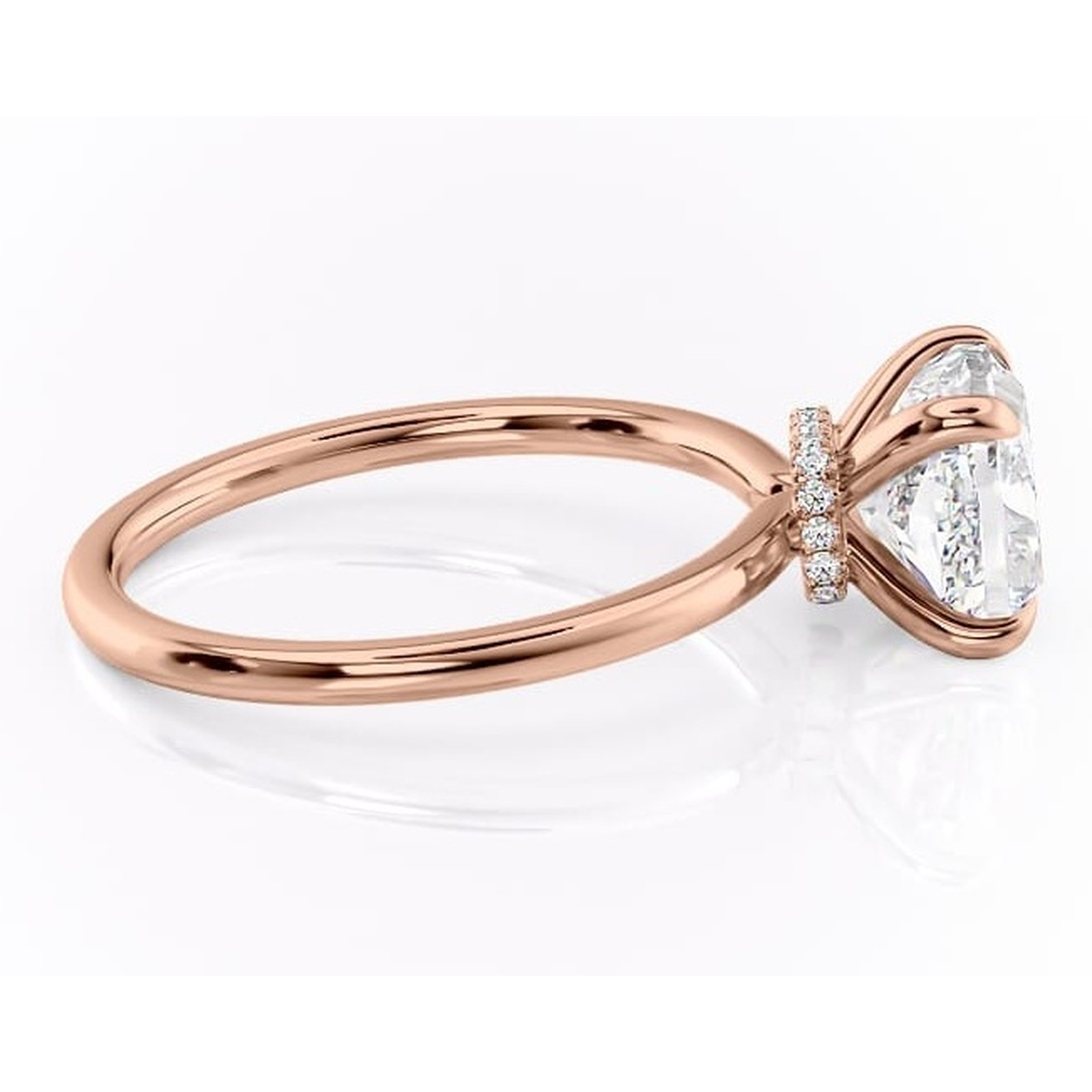 Inel de logodnă Ophelia din aur Rose 18kt cu moissanite tăietură pernă – Solitar rafinată pentru profil înalt | Personalizează și configurează gratuit online