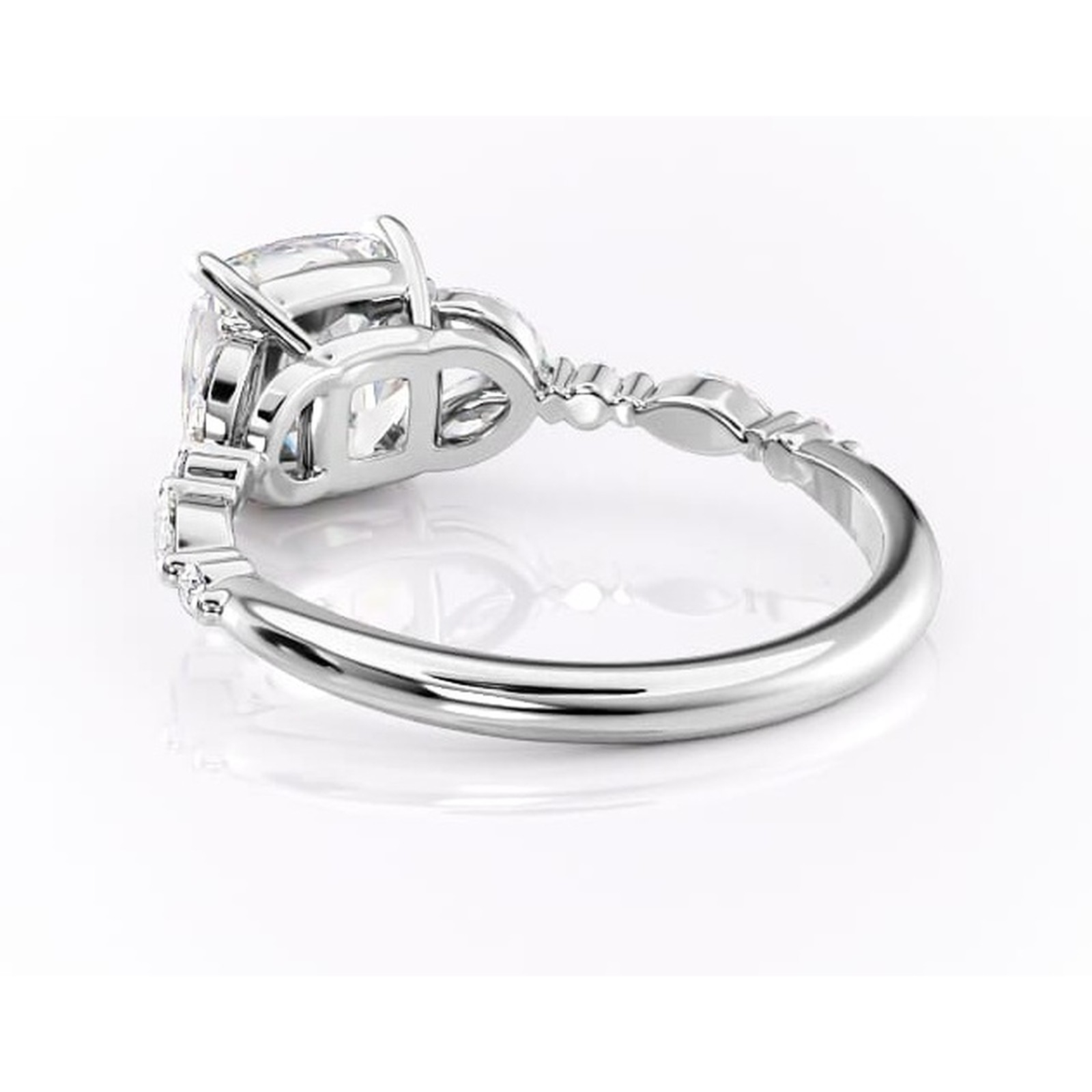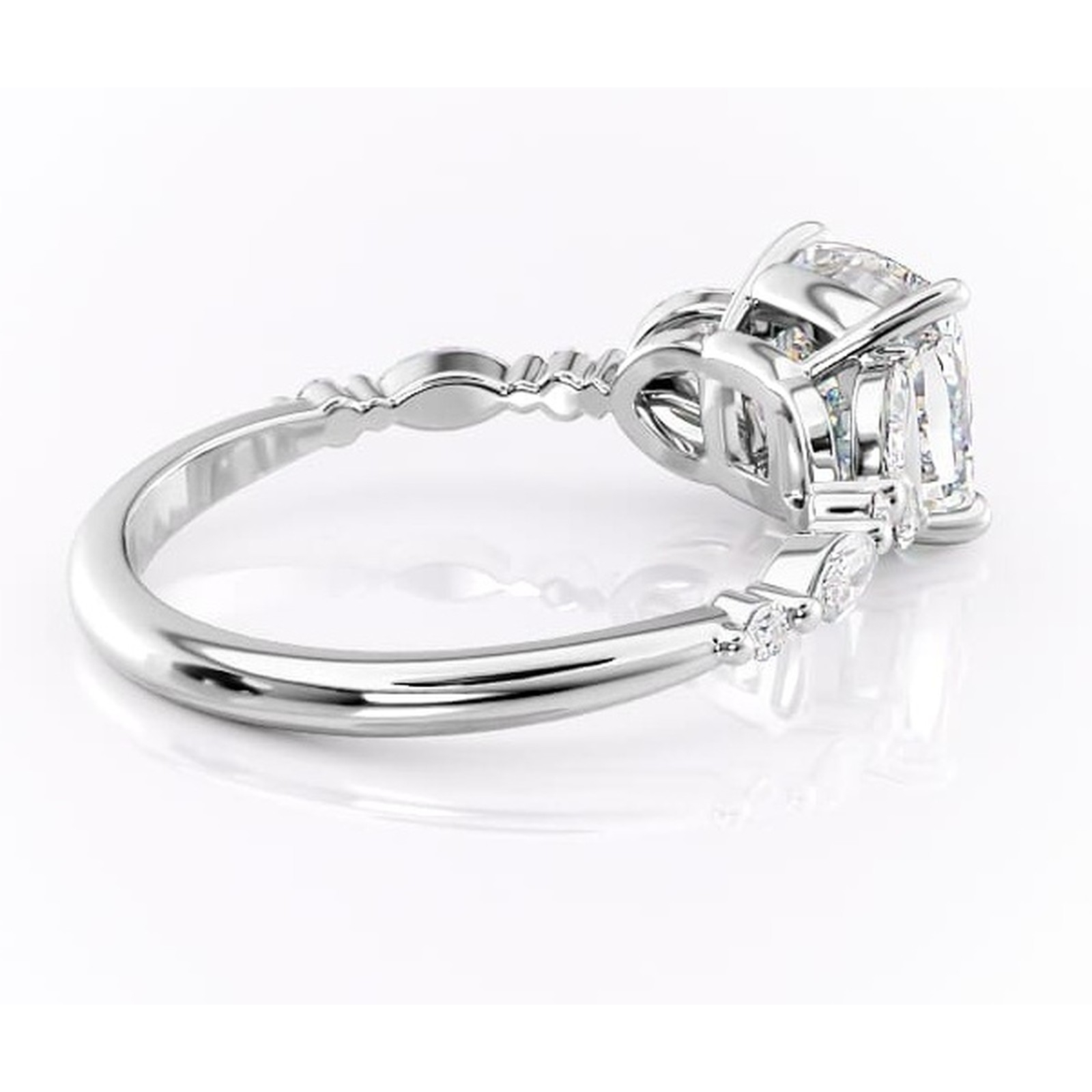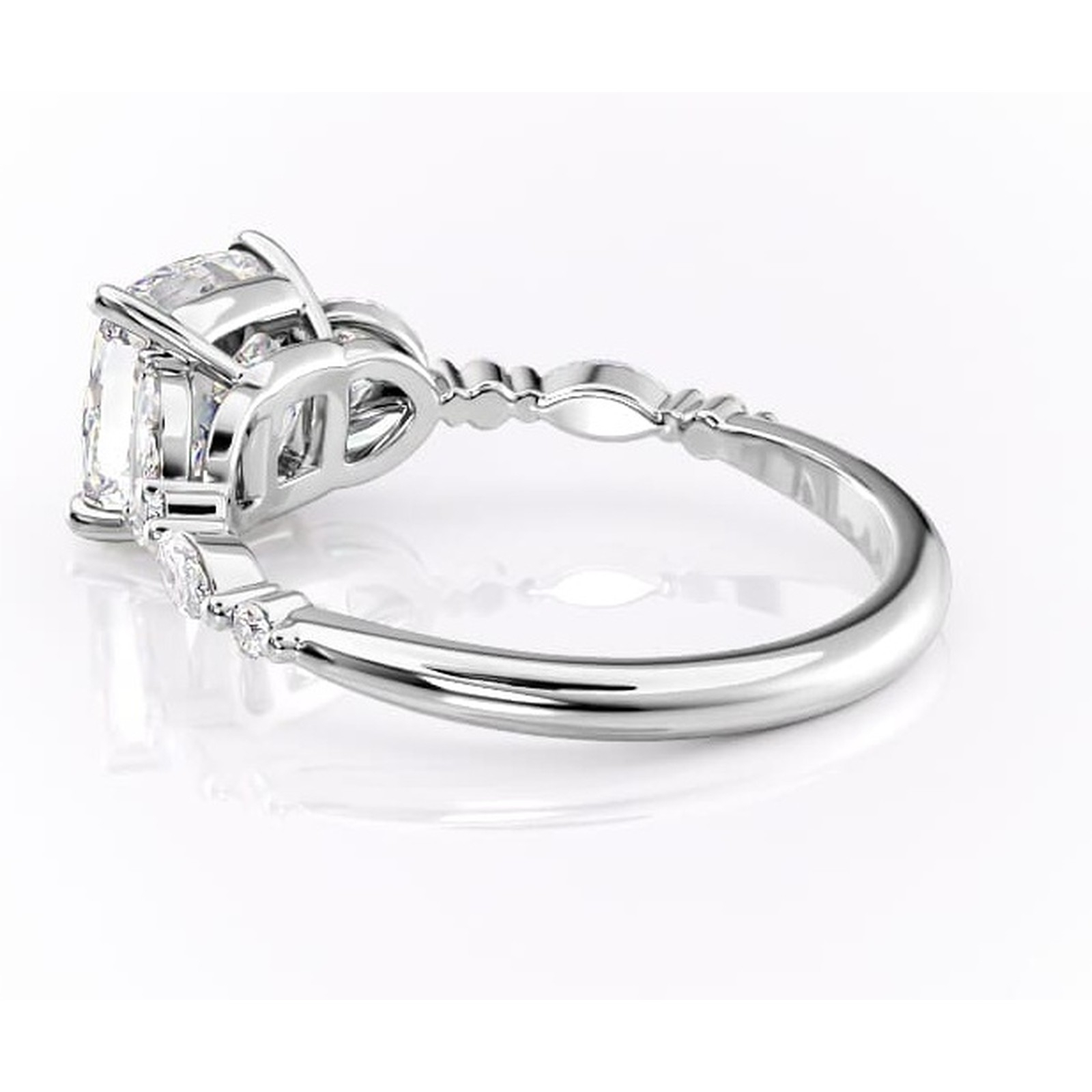 Inel de logodnă Bloom din aur Alb 14kt cu moissanite tăietură pernă – Montură cu trei pietre rafinată pentru profil mediu | Personalizează și configurează gratuit online