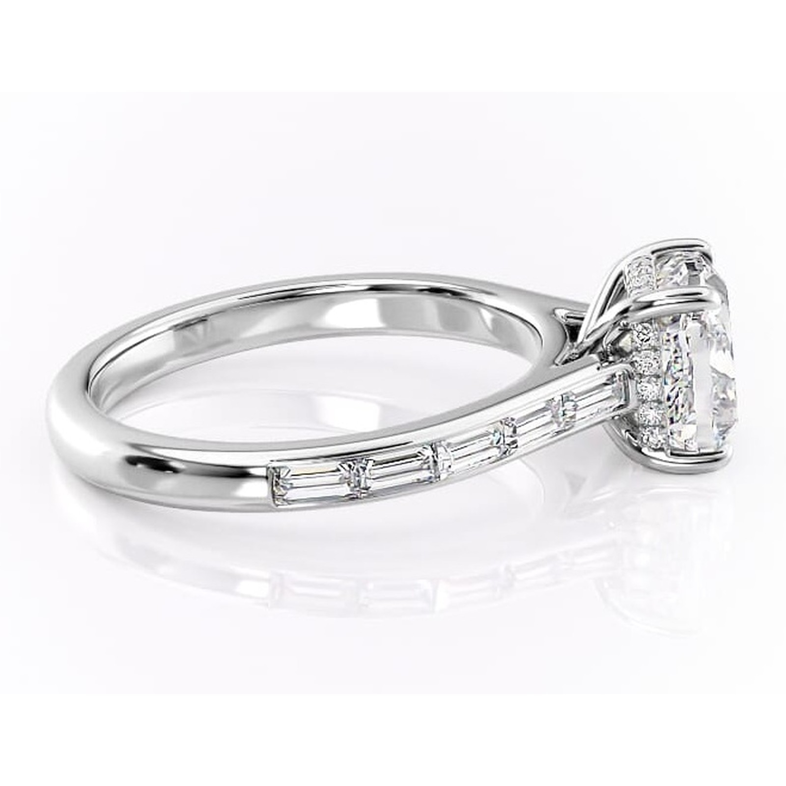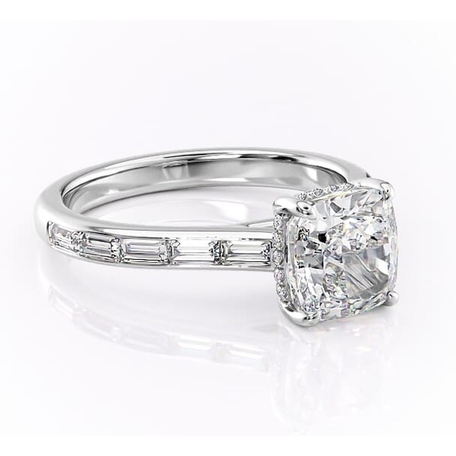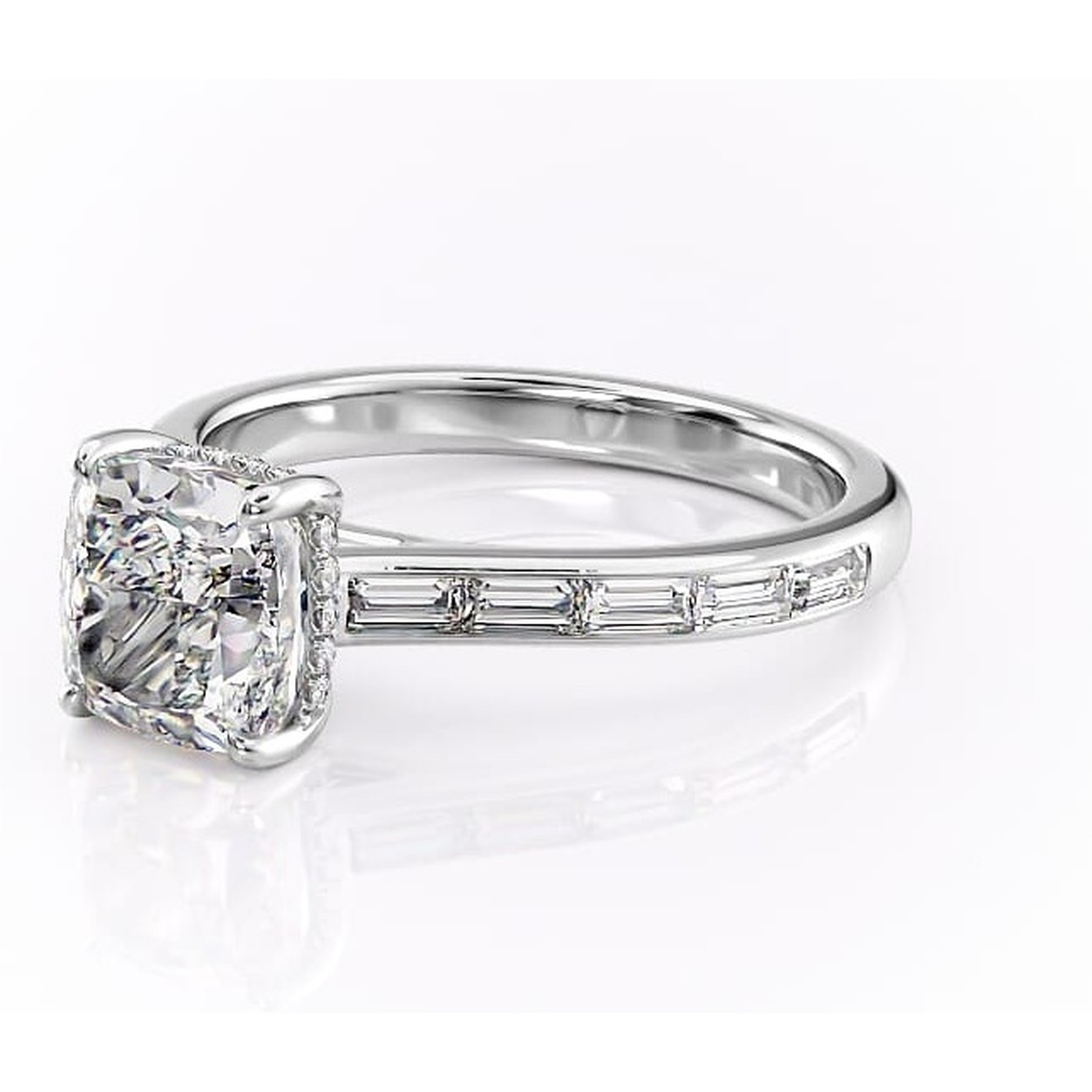 Inel de logodnă Catherine din aur Alb 14kt cu moissanite tăietură pernă – Montură cu canal rafinată pentru profil înalt | Personalizează și configurează gratuit online