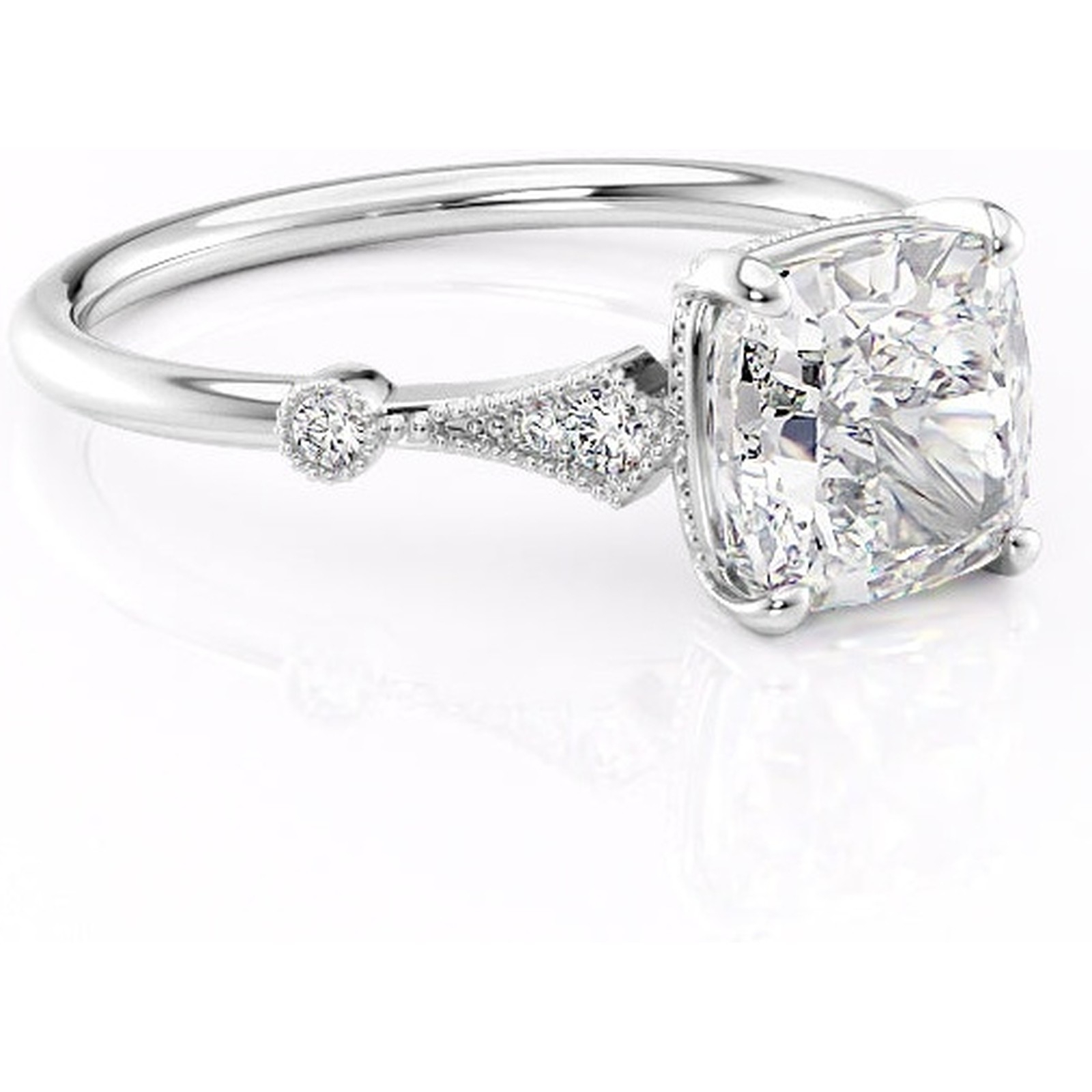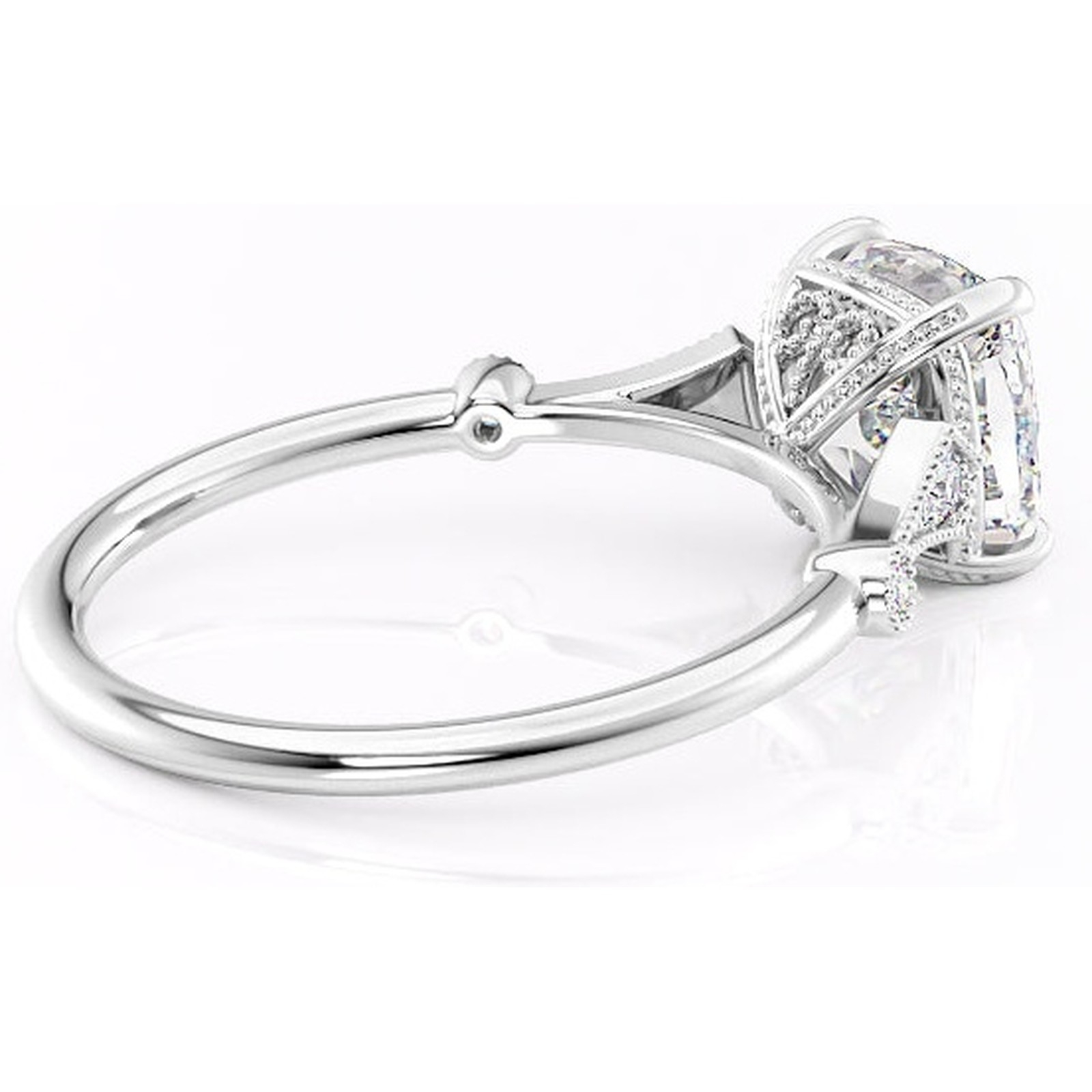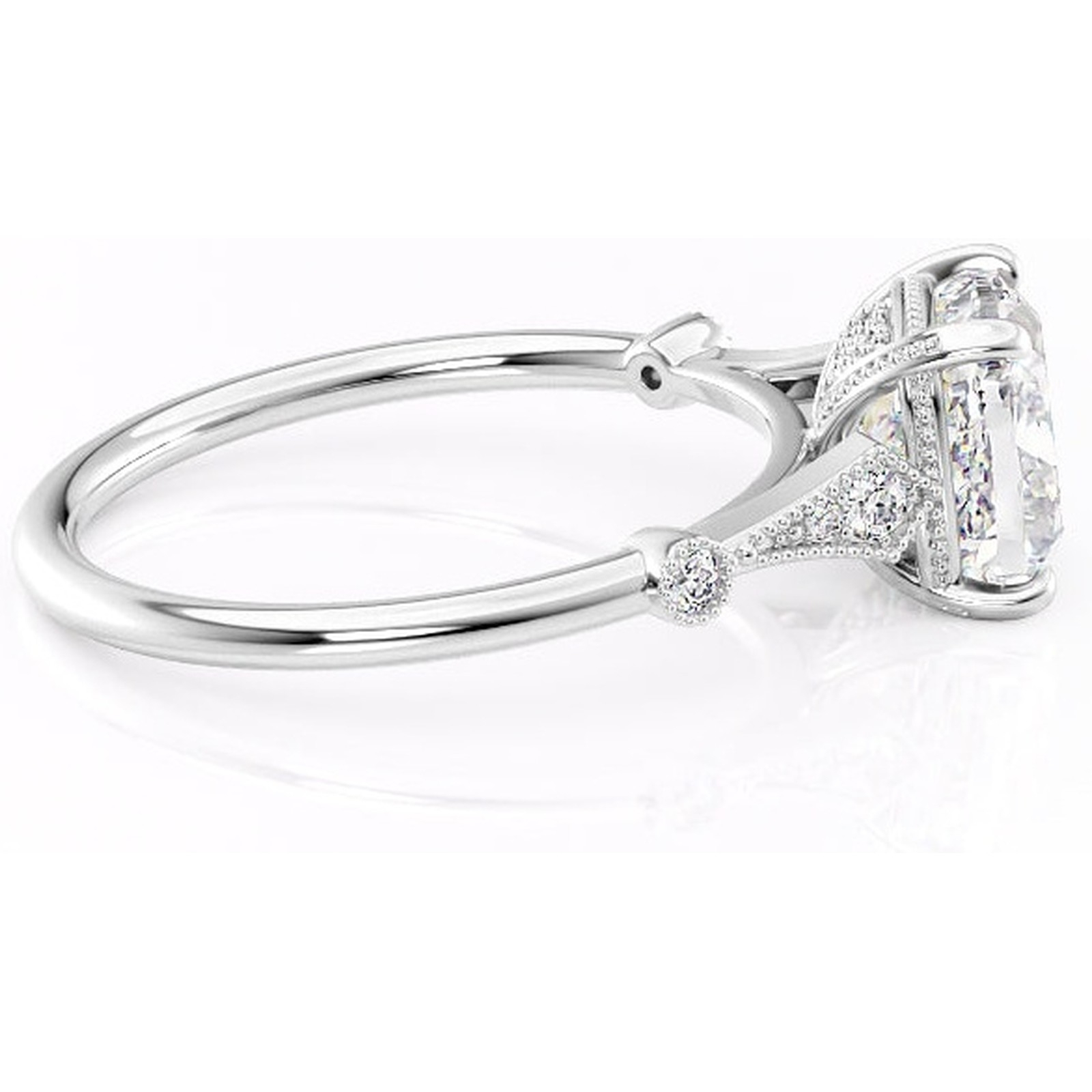 Inel de logodnă Lacey din aur Alb 14kt cu moissanite tăietură pernă – Pietre laterale rafinată pentru profil înalt | Personalizează și configurează gratuit online