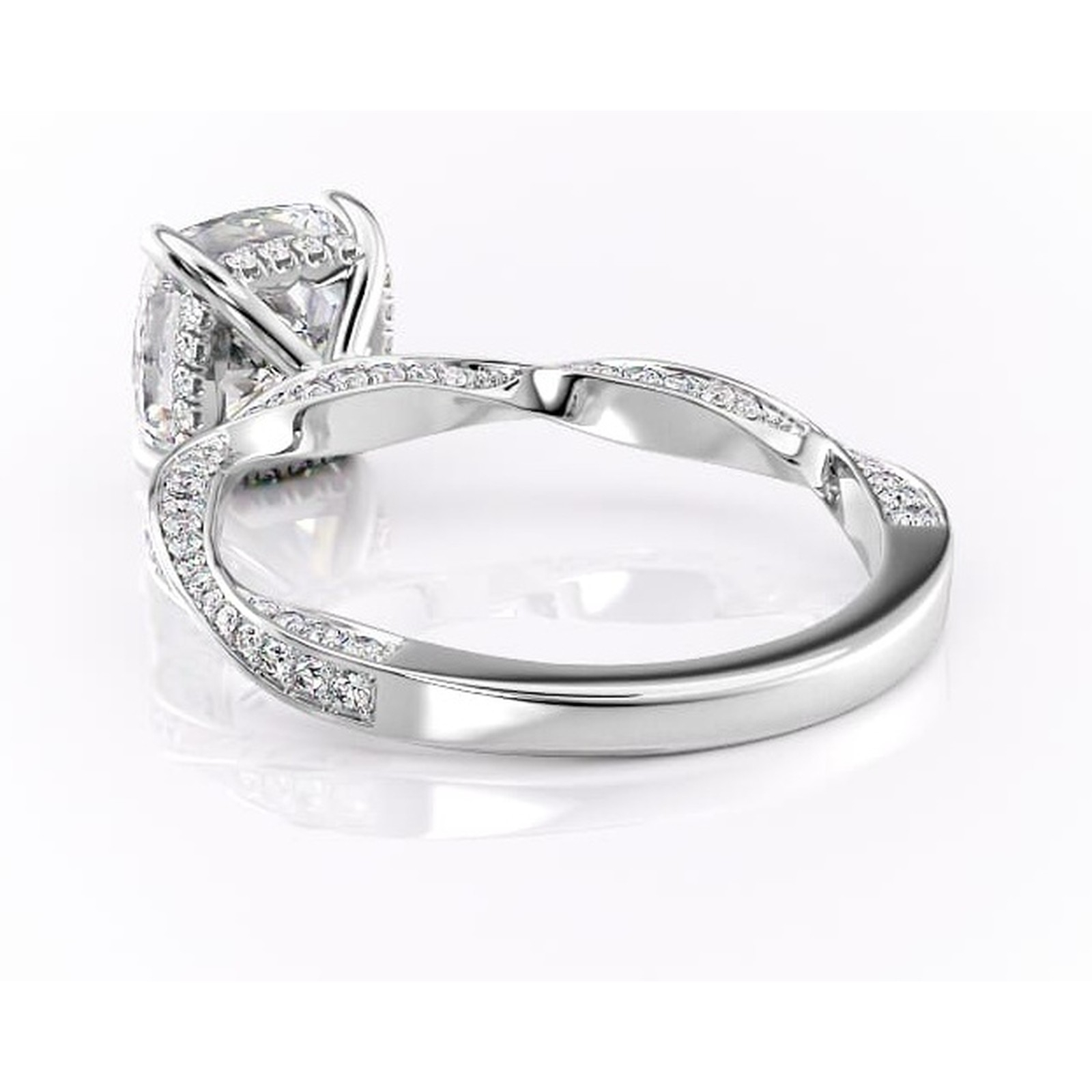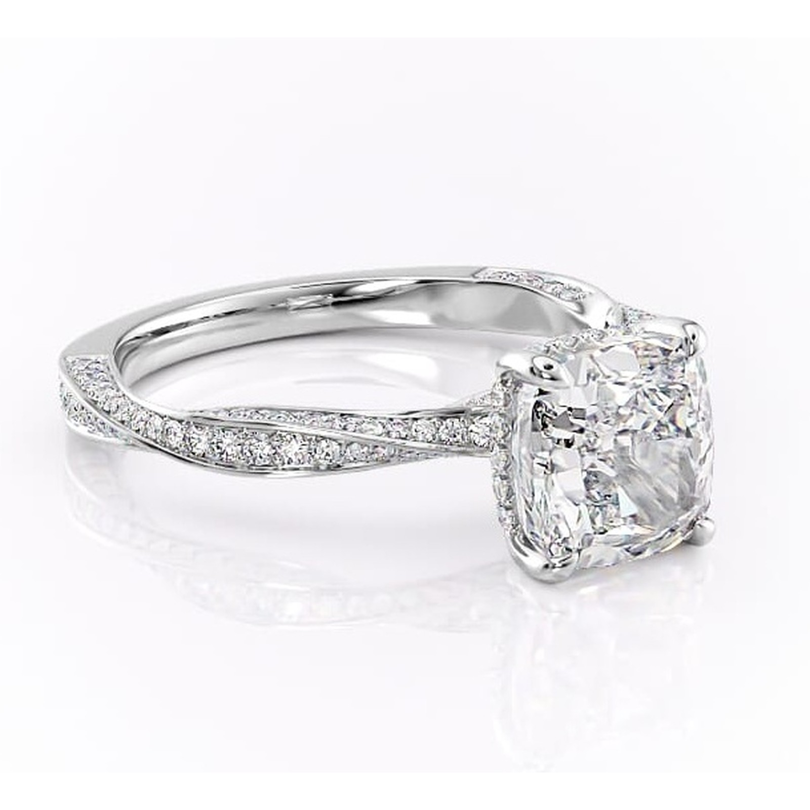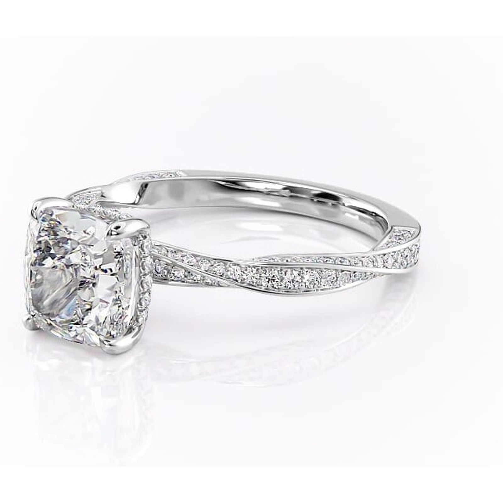 Inel de logodnă Rhea din aur Alb 14kt cu moissanite tăietură pernă – Montură pavé rafinată pentru profil înalt | Personalizează și configurează gratuit online