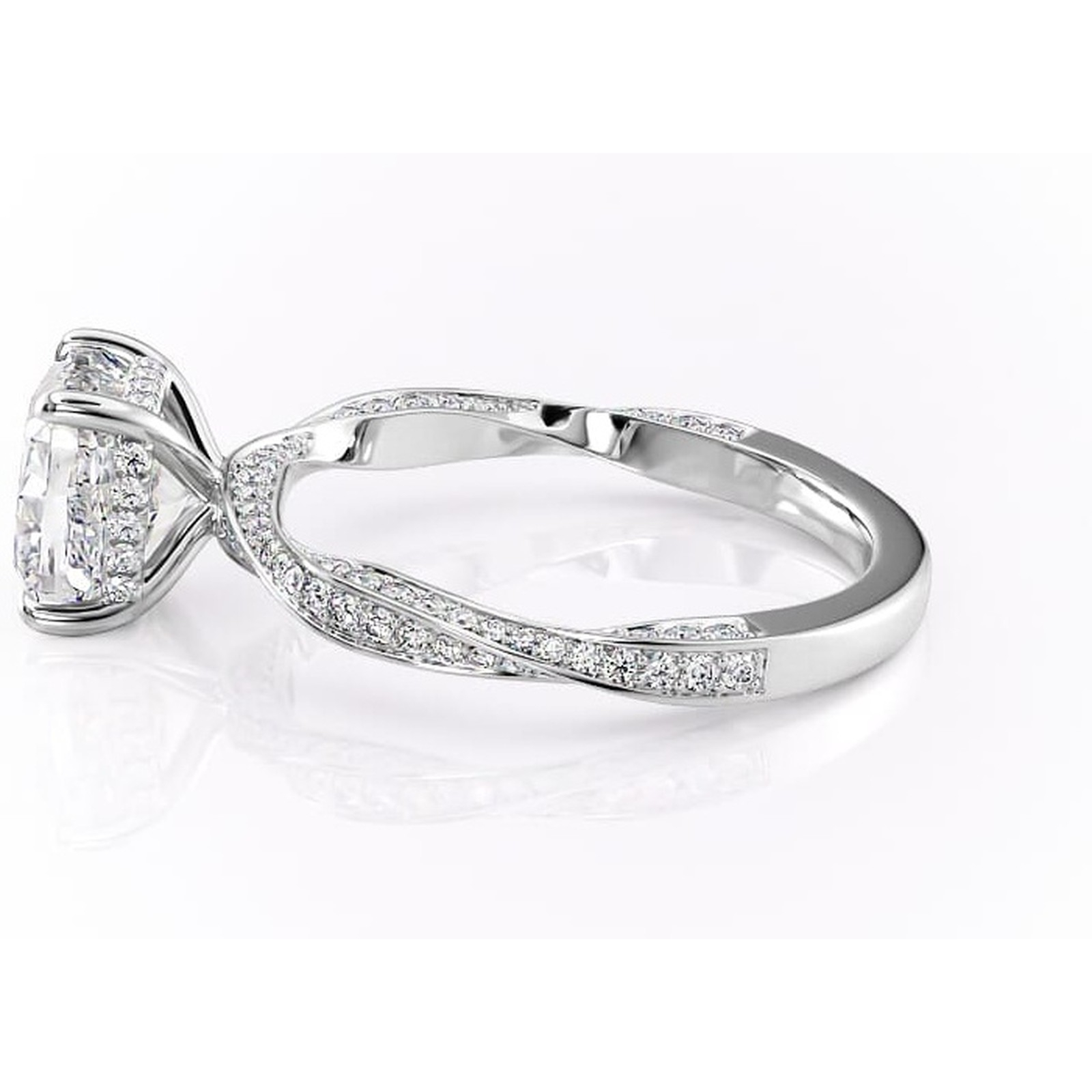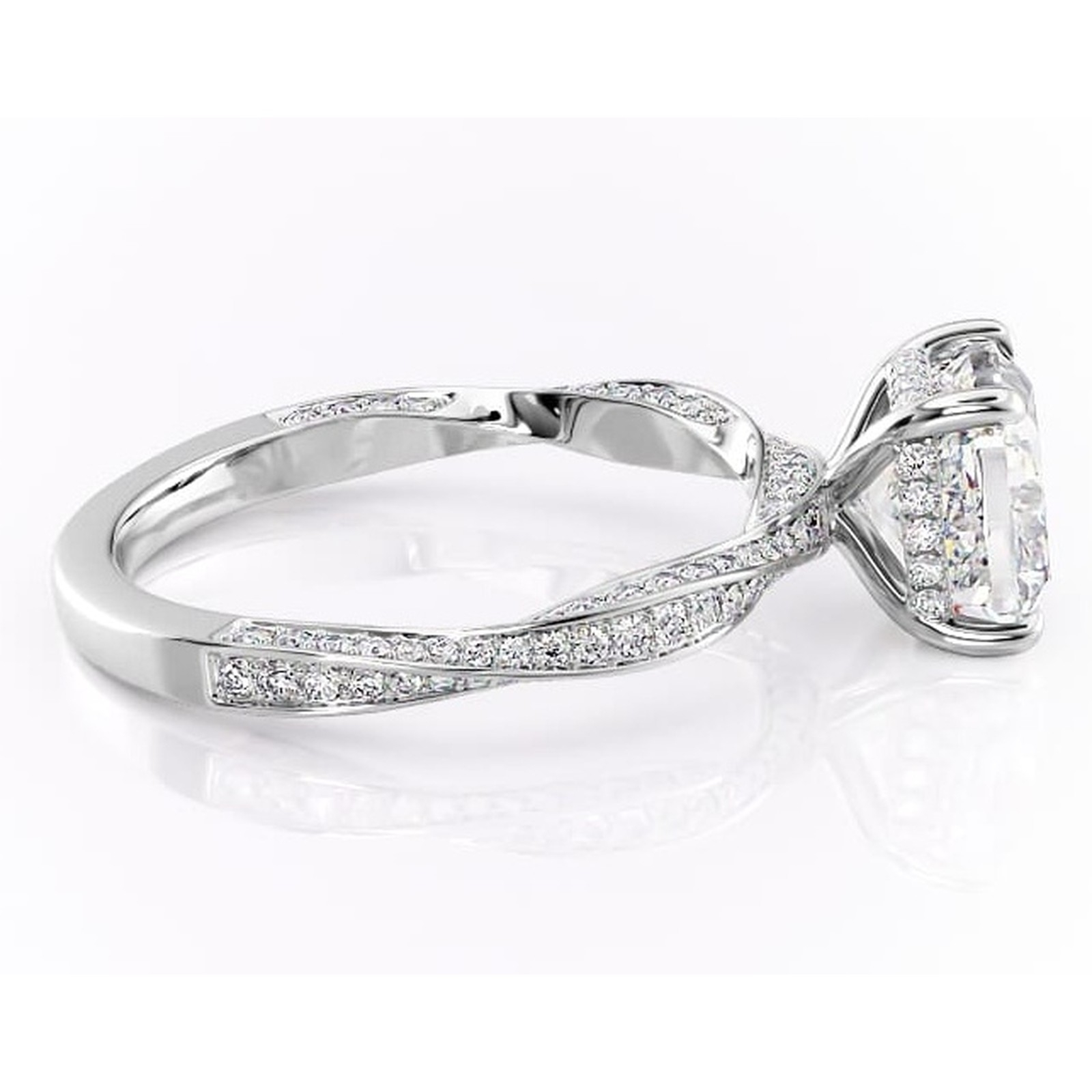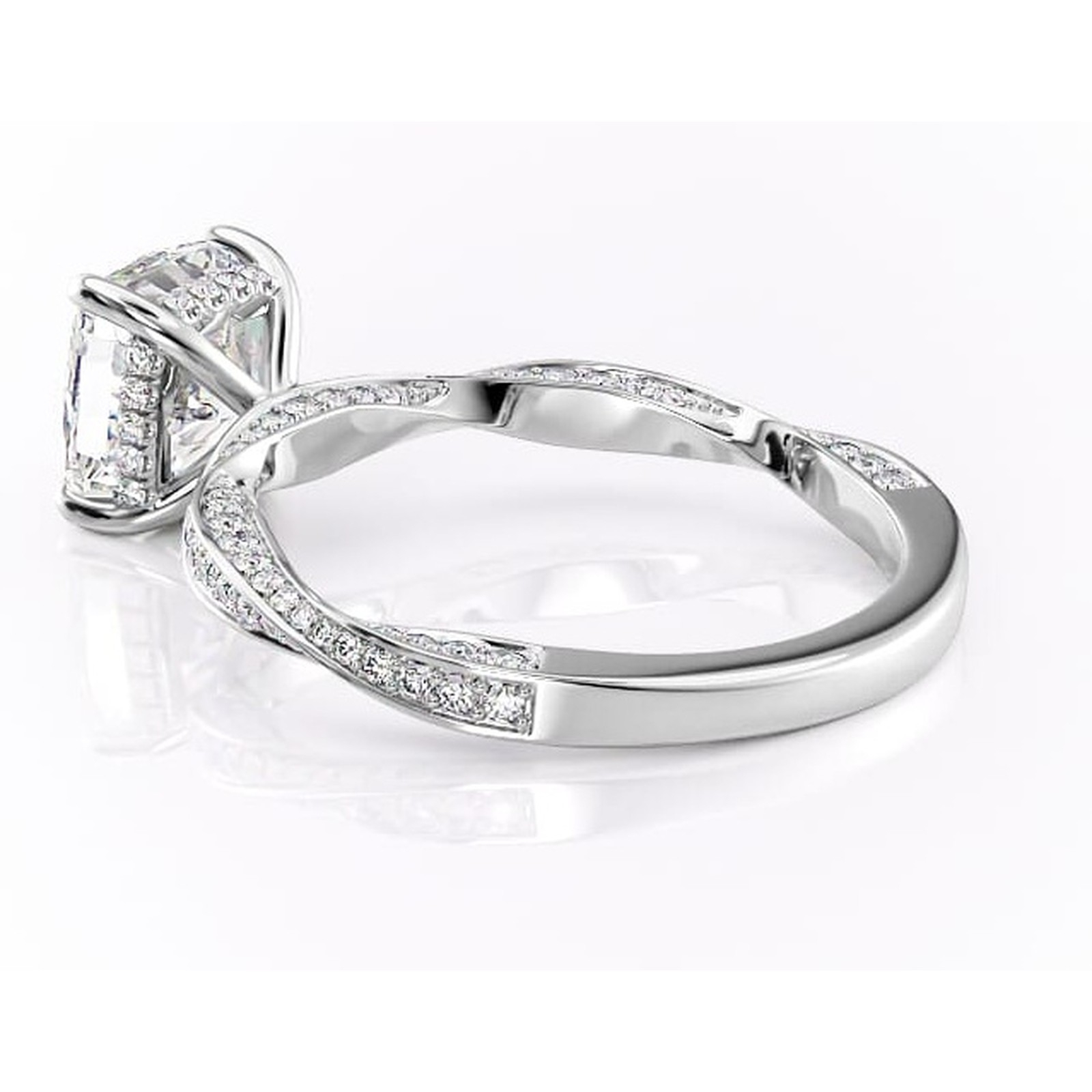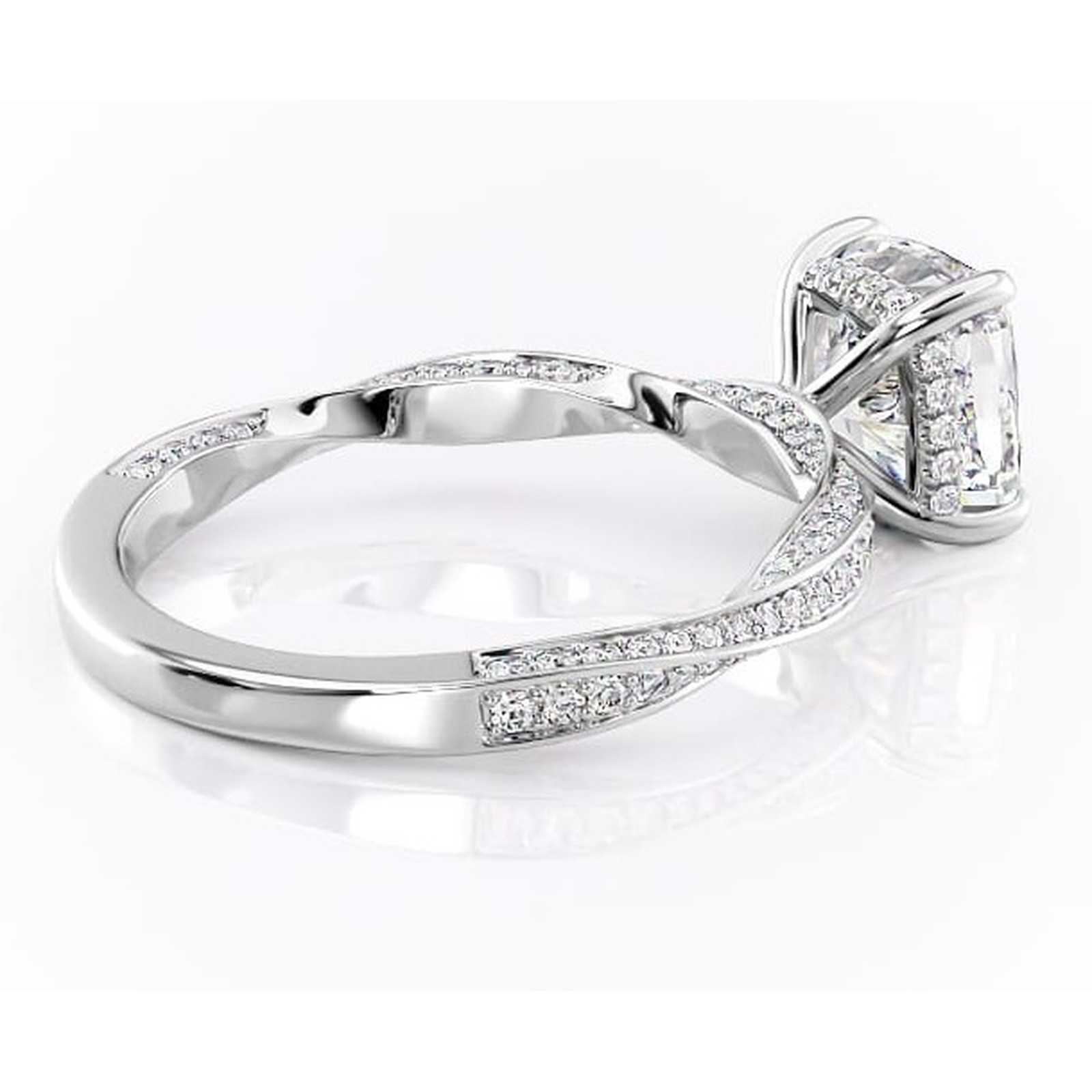 Inel de logodnă Rhea din aur Alb 14kt cu moissanite tăietură pernă – Montură pavé rafinată pentru profil înalt | Personalizează și configurează gratuit online