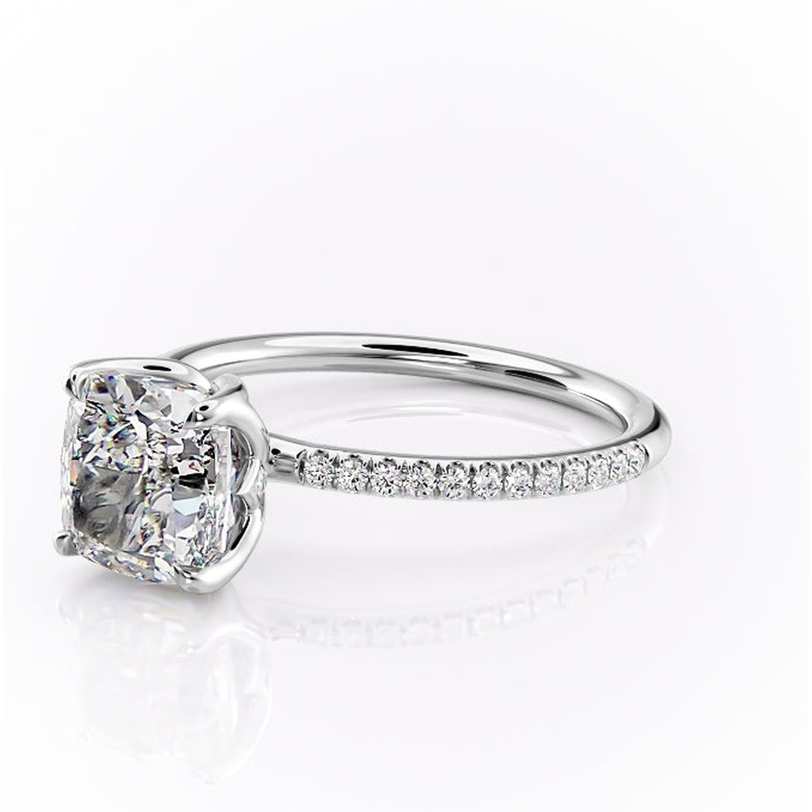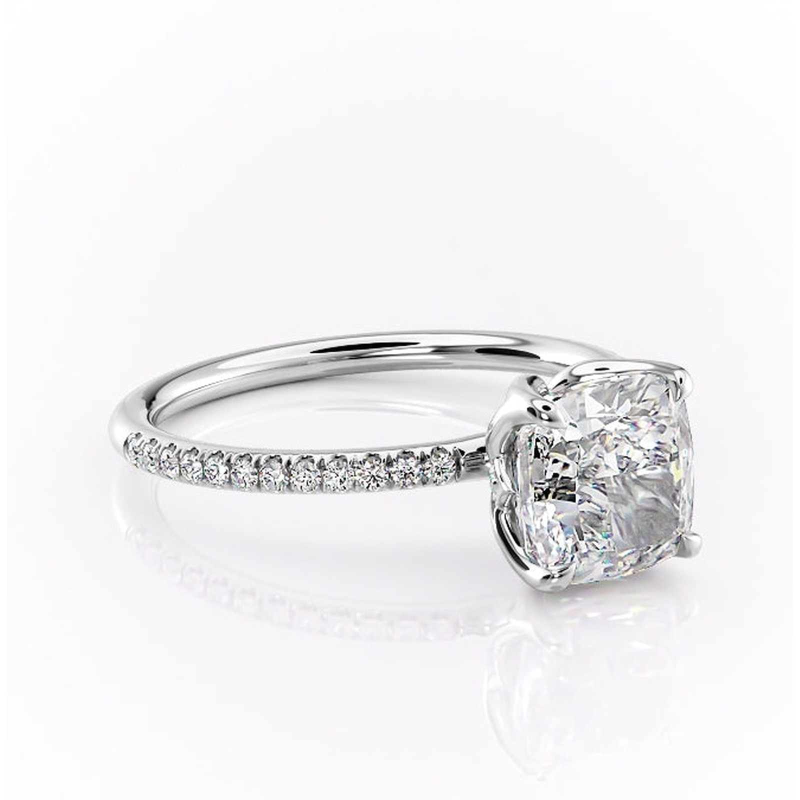 Inel de logodnă Seren din aur Alb 14kt cu moissanite tăietură pernă – Montură pavé rafinată pentru profil înalt | Personalizează și configurează gratuit online
