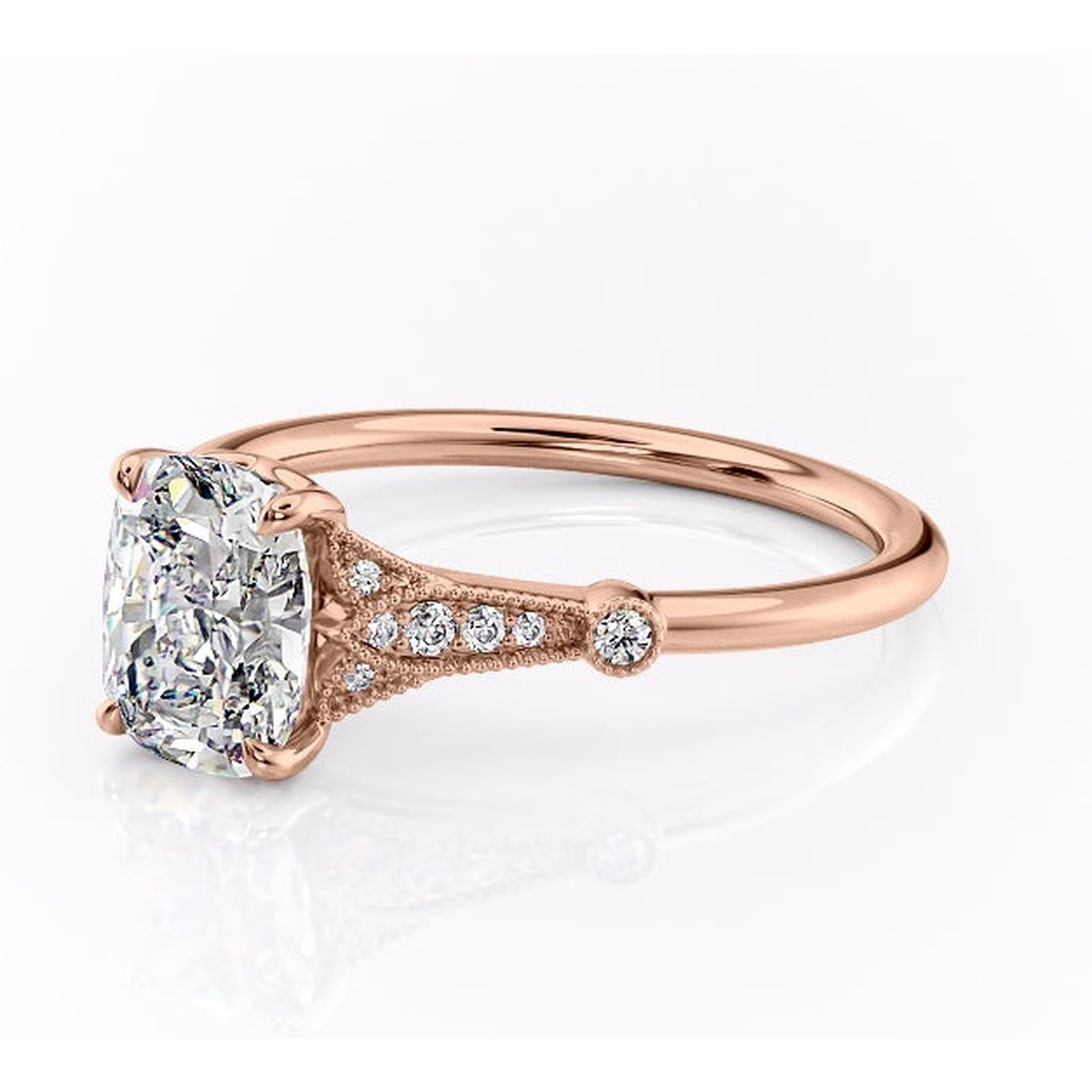 Inel de logodnă Quartzelle din aur Rose 14kt cu moissanite tăietură asscher – Pietre laterale rafinată pentru profil înalt | Personalizează și configurează gratuit online