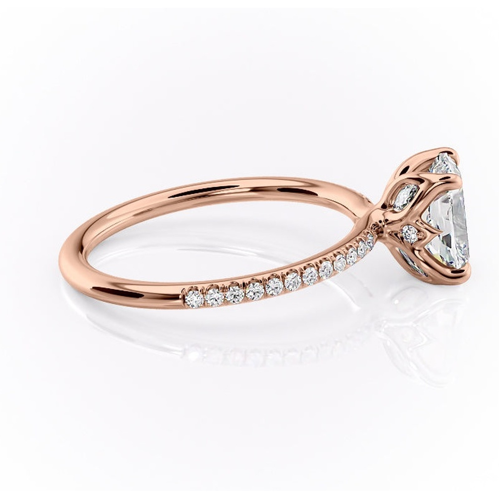 Inel de logodnă Seren din aur Rose 14kt cu moissanite tăietură pernă – Montură pavé rafinată pentru profil înalt | Personalizează și configurează gratuit online