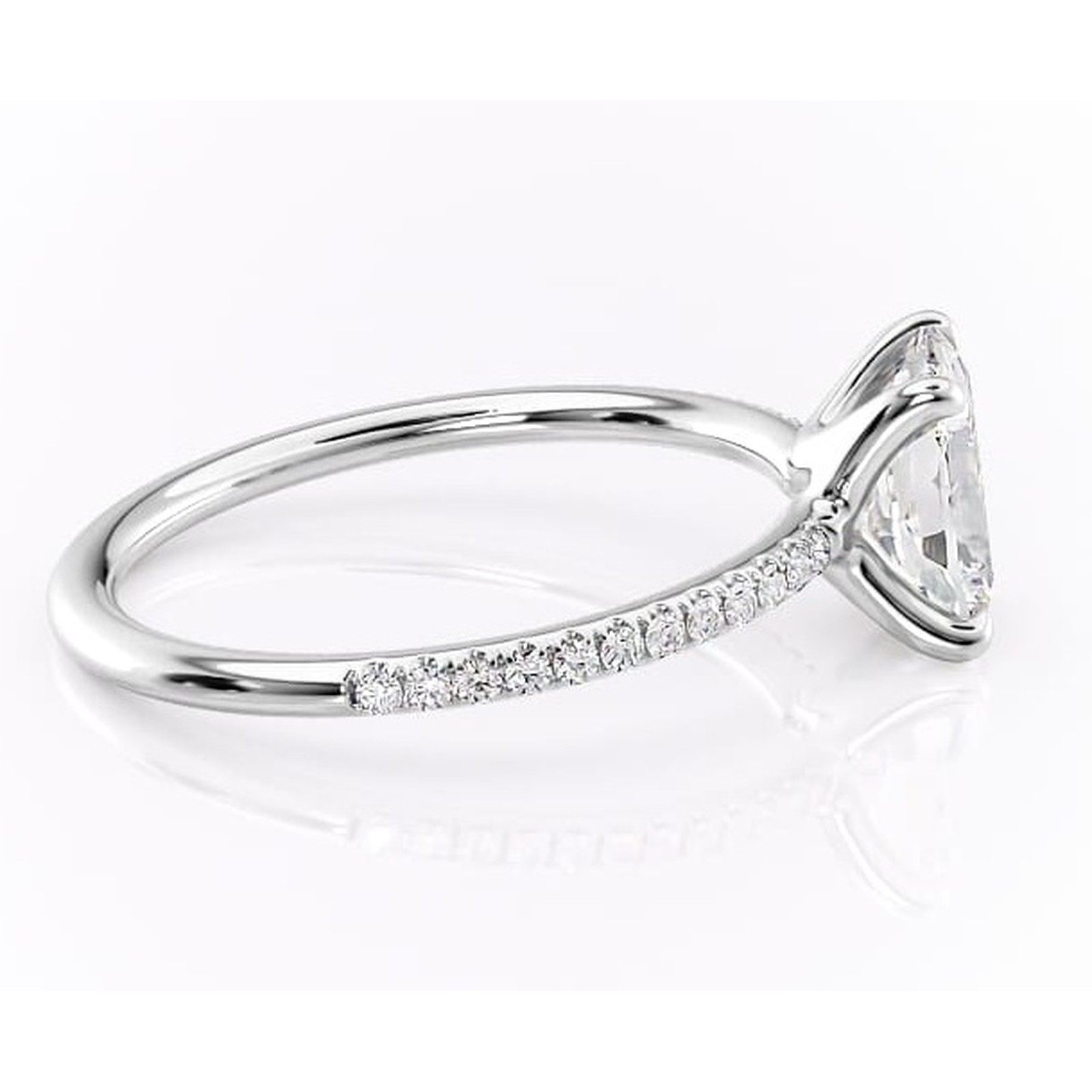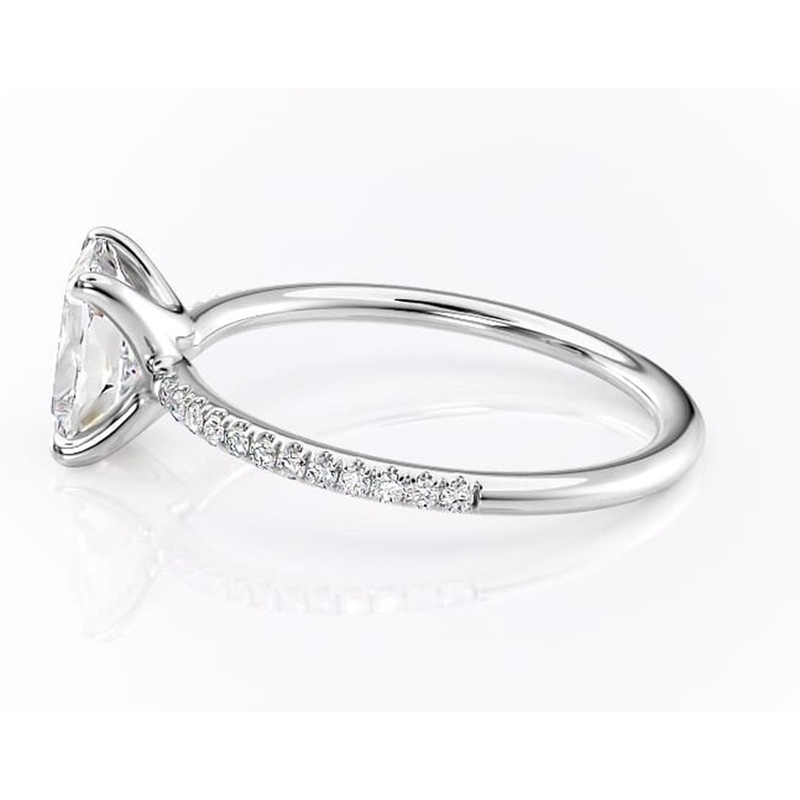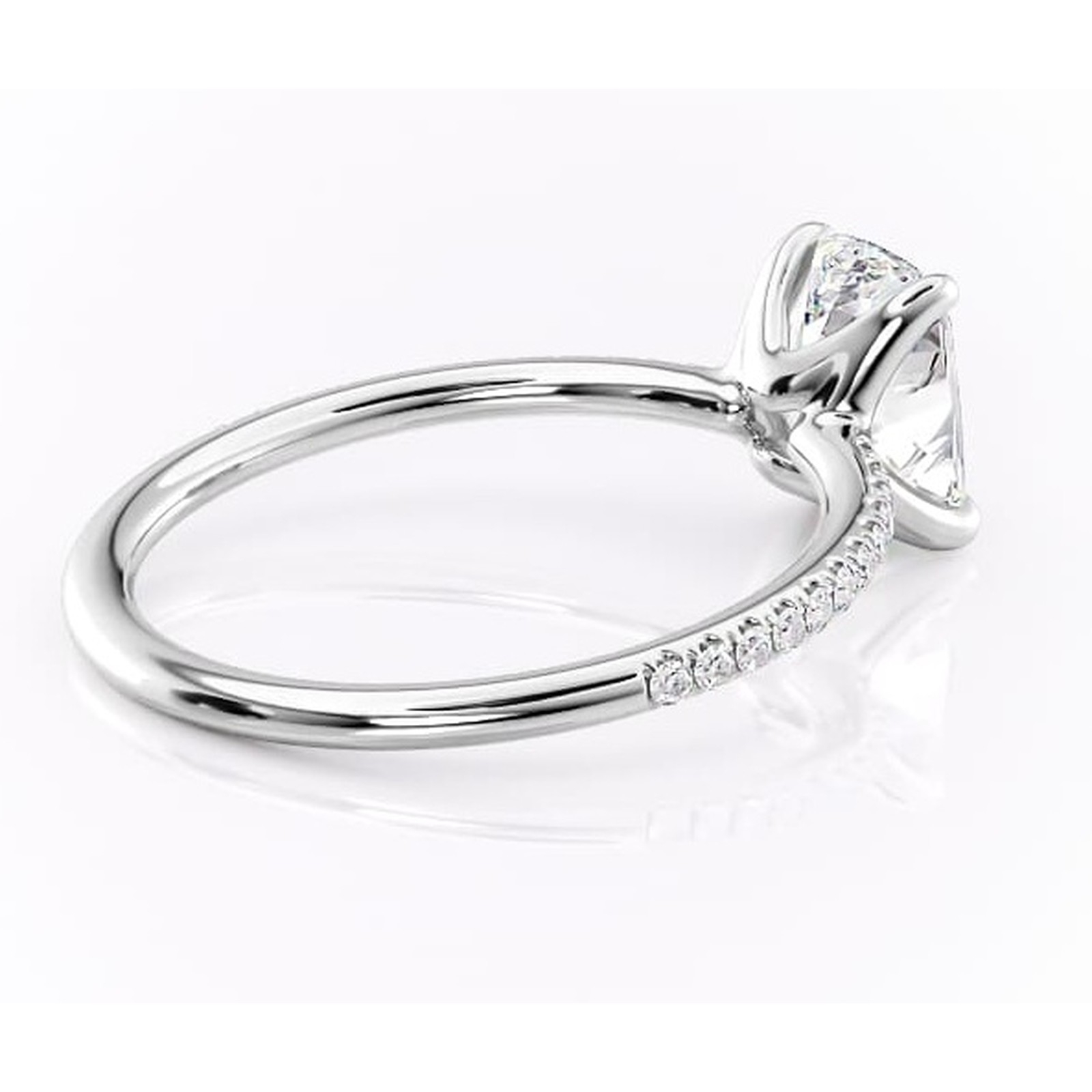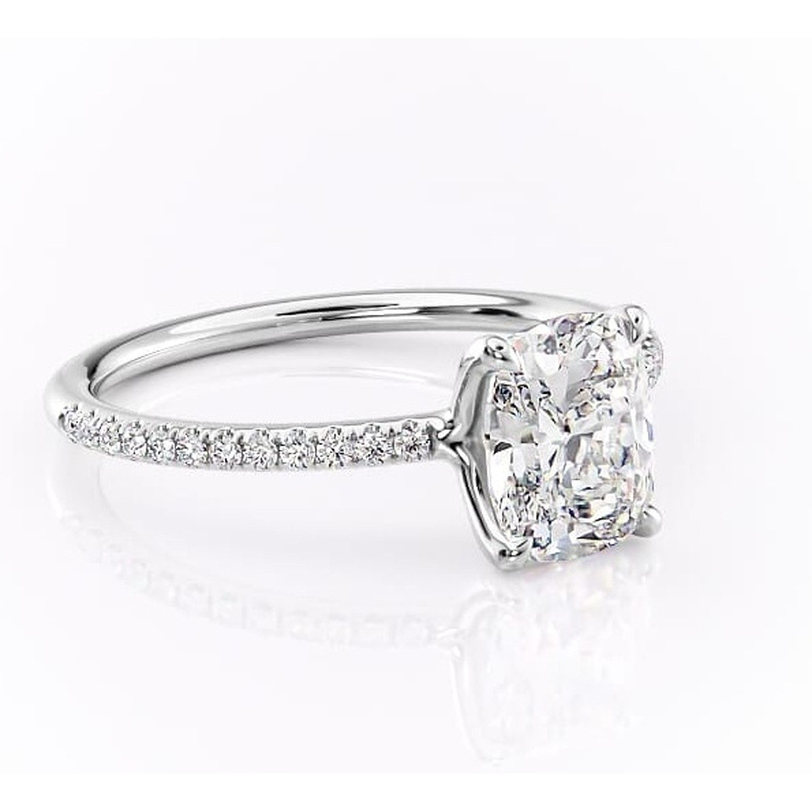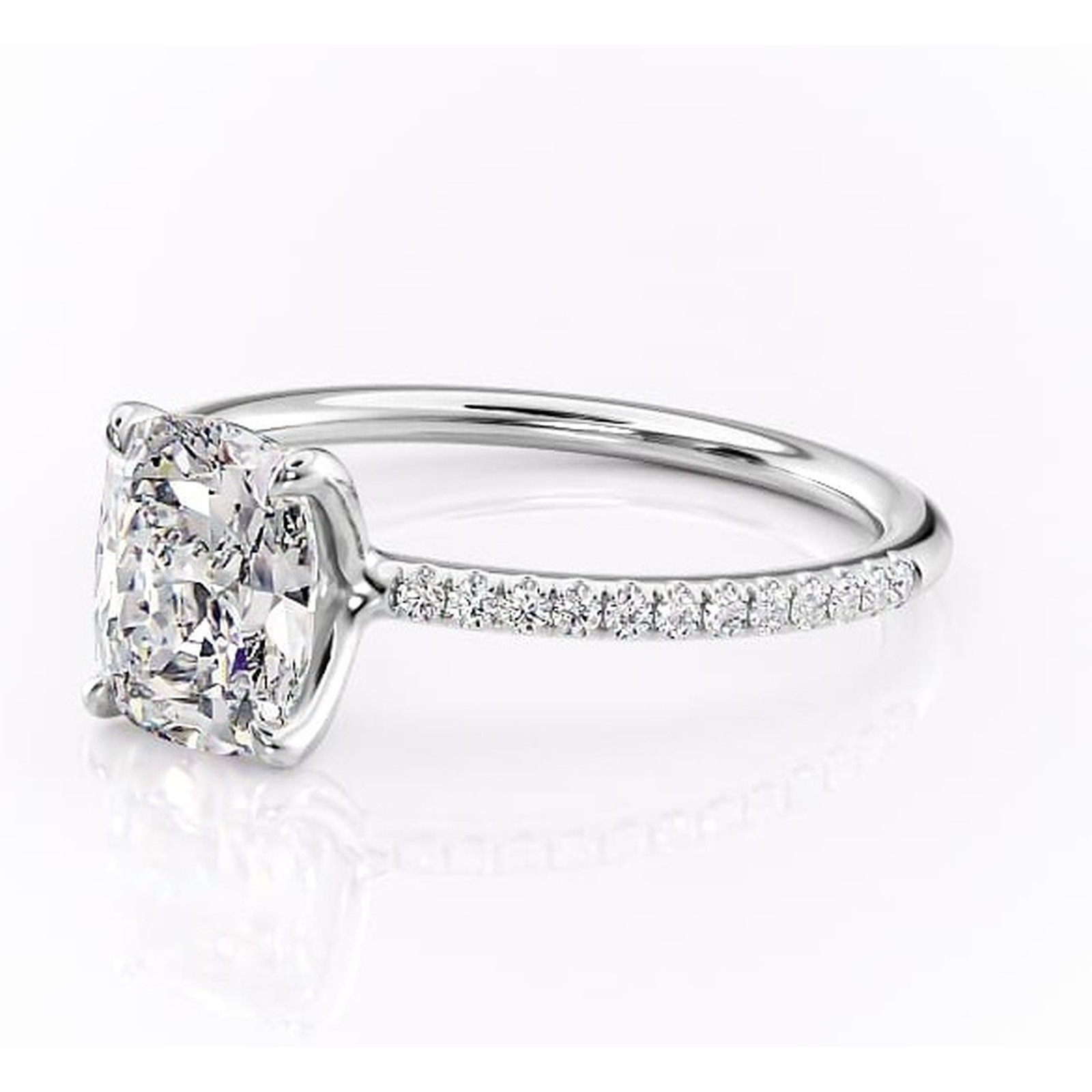 Inel de logodnă Adelaide din aur Alb 14kt cu moissanite tăietură pernă – Montură pavé rafinată pentru profil jos | Personalizează și configurează gratuit online