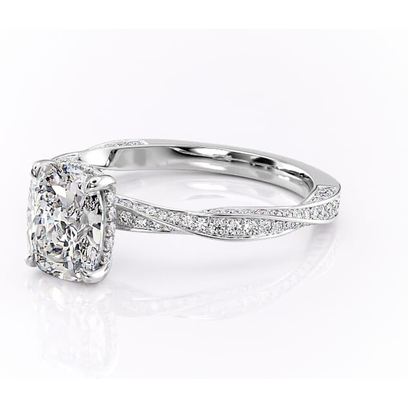 Inel de logodnă Rhea din aur Alb 14kt cu moissanite tăietură asscher – Montură pavé rafinată pentru profil înalt | Personalizează și configurează gratuit online