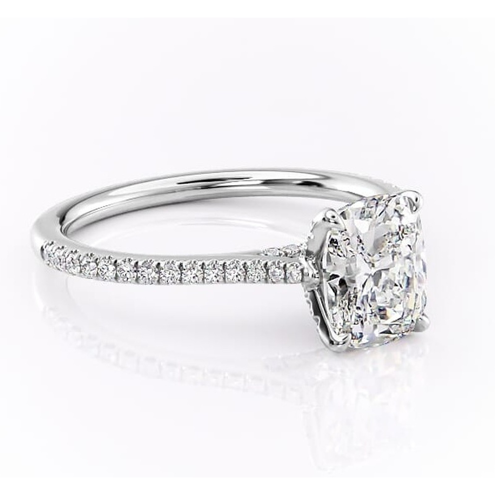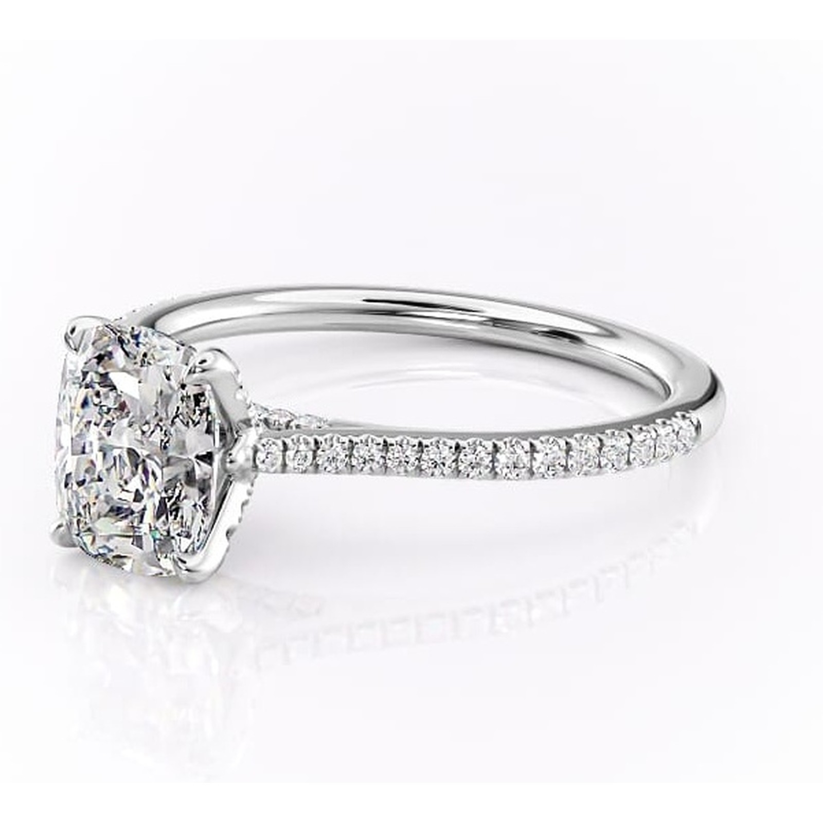 Inel de logodnă Tove din aur Alb 14kt cu moissanite tăietură pernă – Montură pavé rafinată pentru profil înalt | Personalizează și configurează gratuit online