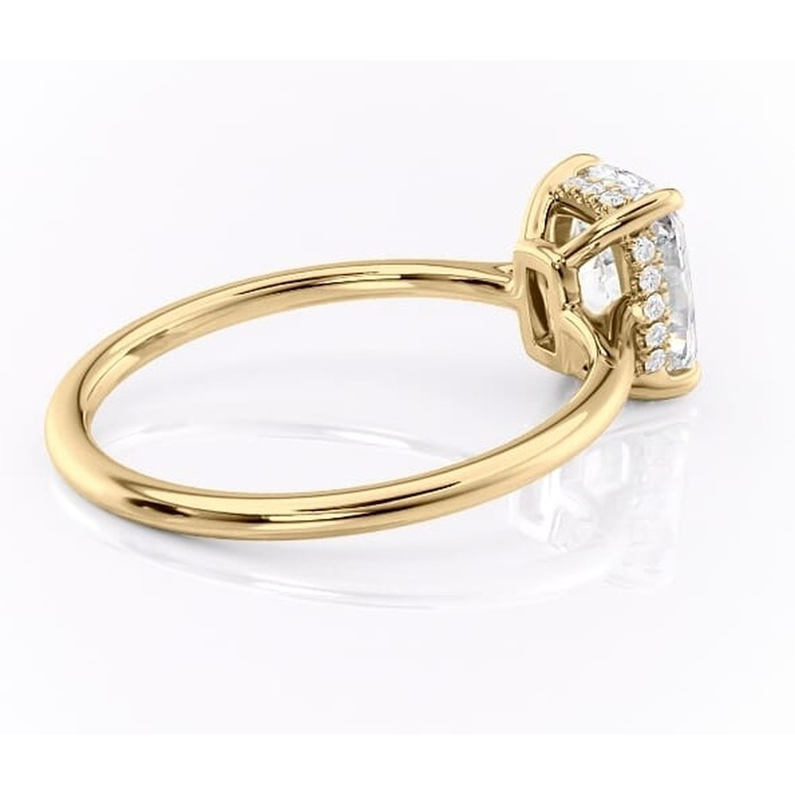 Inel de logodnă Camellia din aur Galben 14kt cu moissanite tăietură pernă – Solitar rafinată pentru profil jos | Personalizează și configurează gratuit online