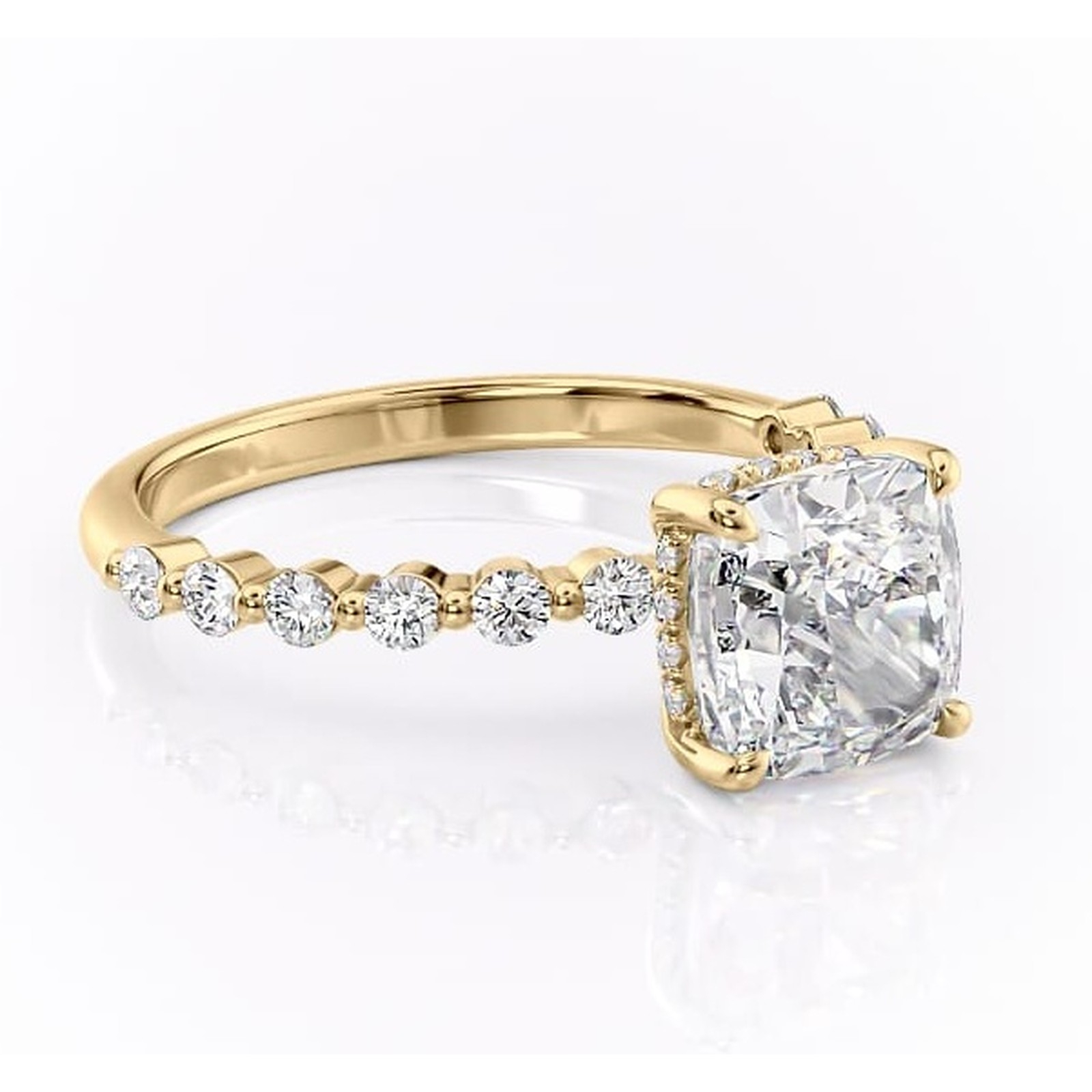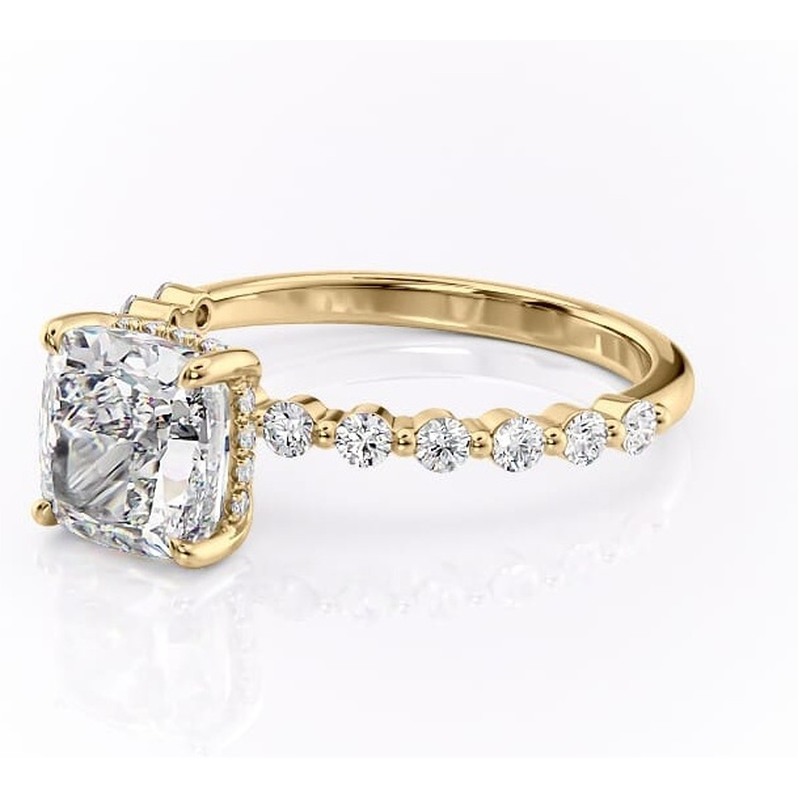 Inel de logodnă Amara din aur Galben 14kt cu moissanite tăietură pernă – Pietre laterale rafinată pentru profil înalt | Personalizează și configurează gratuit online