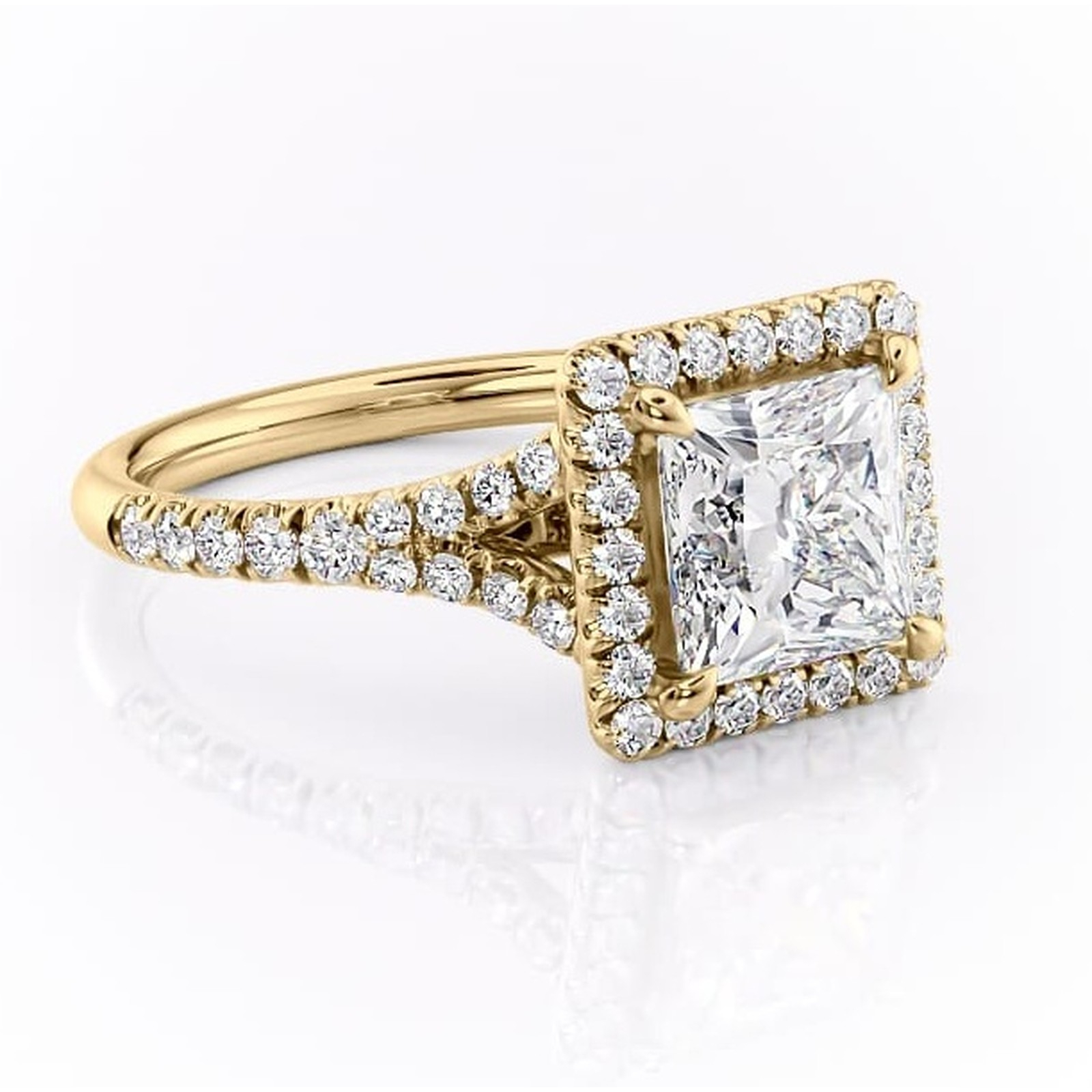 Inel de logodnă Henrietta din aur Galben 14kt cu moissanite tăietură princess – Halo rafinată pentru profil mediu | Personalizează și configurează gratuit online