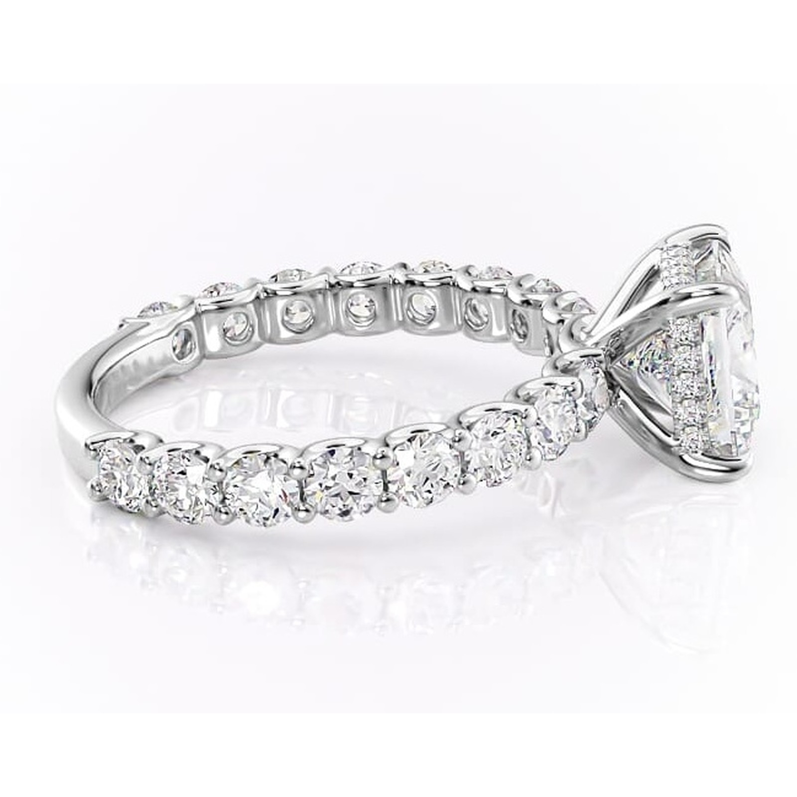 Inel de logodnă Floralie din aur Alb 14kt cu moissanite tăietură princess – Pietre laterale excepțional | Personalizează și configurează gratuit online