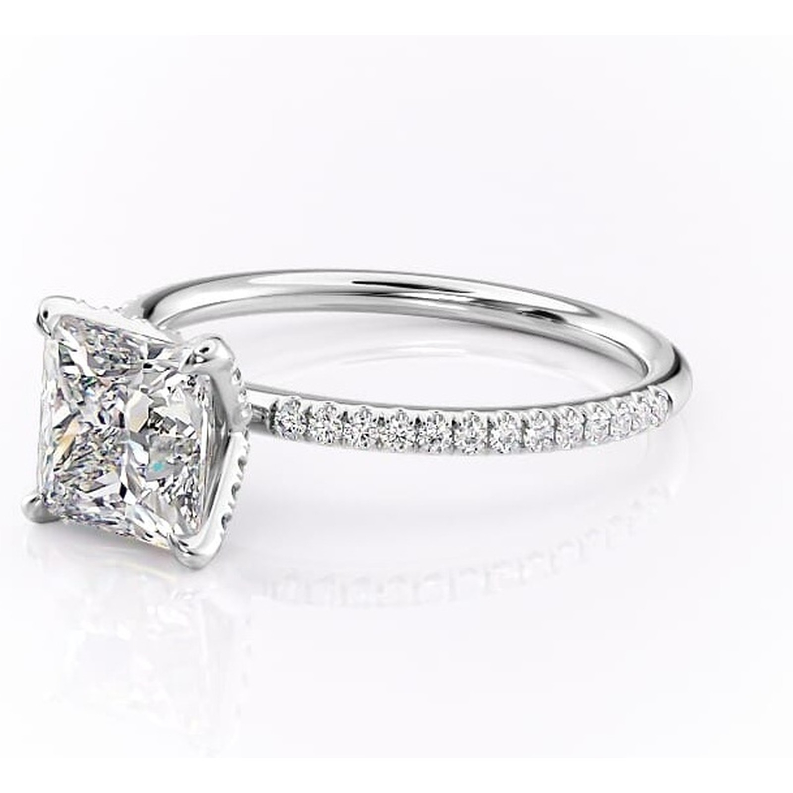 Inel de logodnă Cleo din aur Alb 14kt cu moissanite tăietură princess – Montură pavé rafinată pentru profil înalt | Personalizează și configurează gratuit online