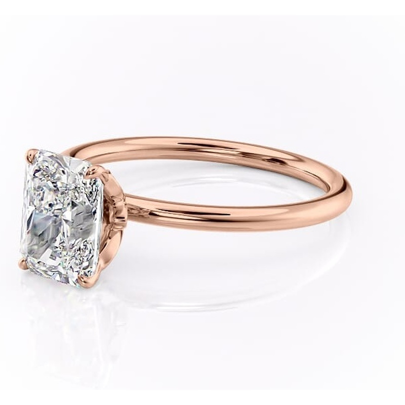 Inel de logodnă Emerald din aur Rose 18kt cu moissanite tăietură radiantă – Solitar rafinată pentru profil înalt | Personalizează și configurează gratuit online