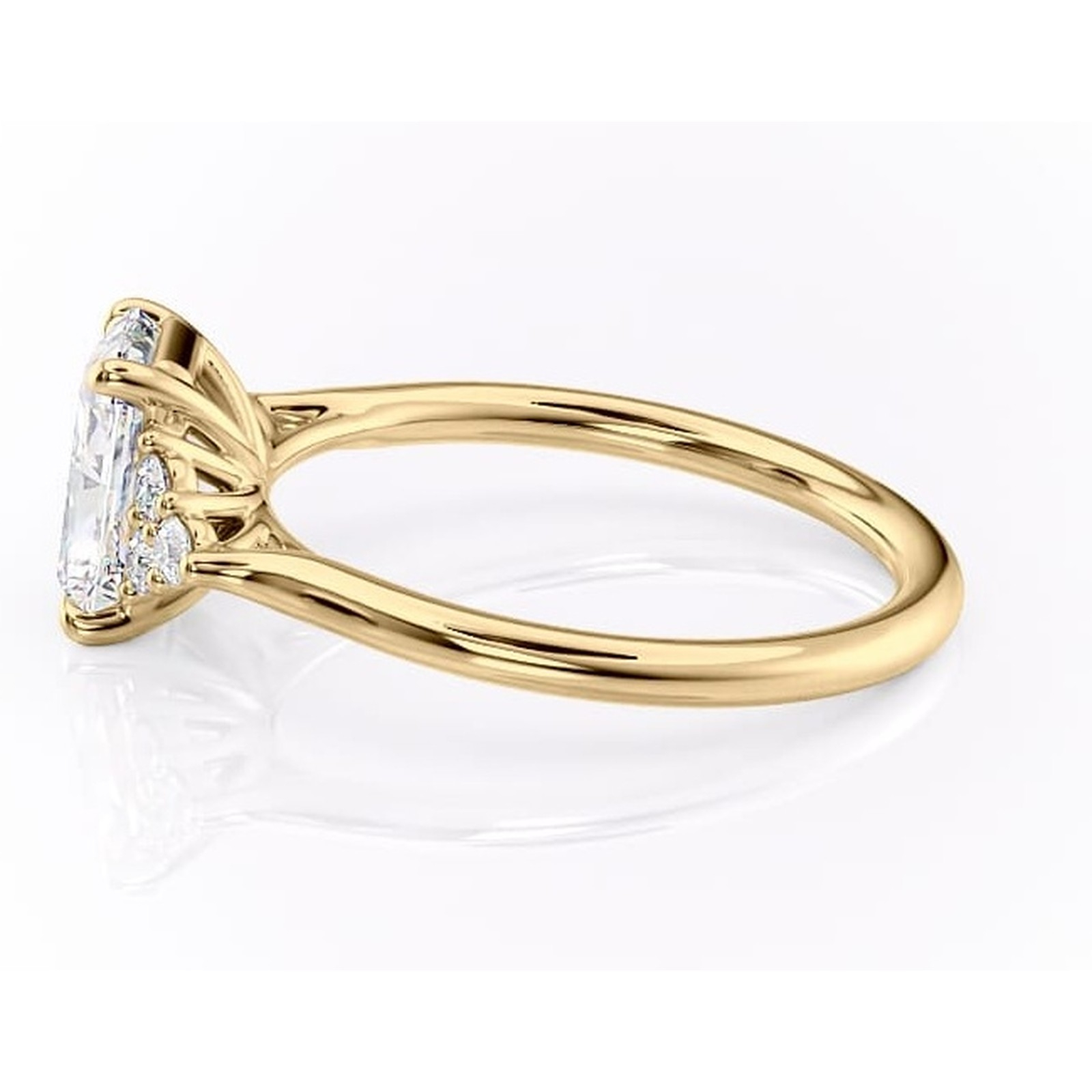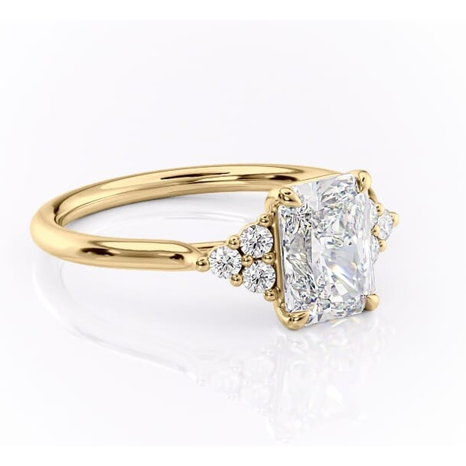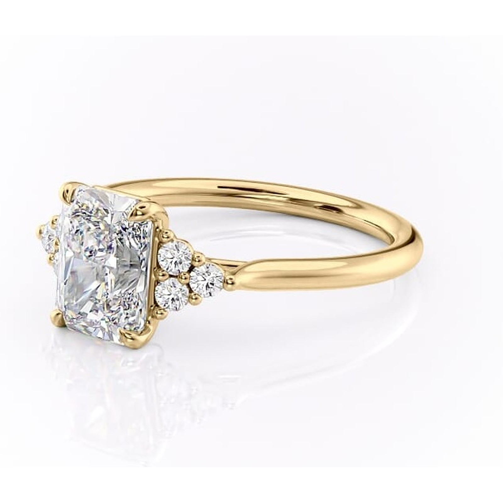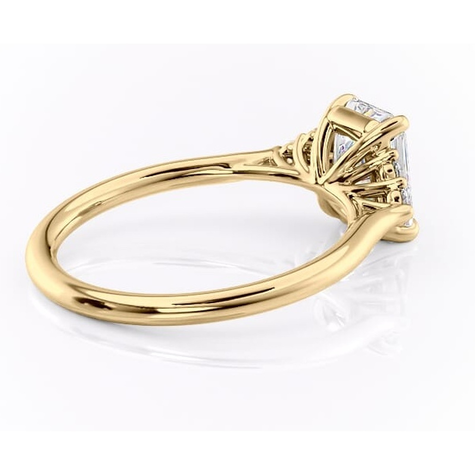 Inel de logodnă Ivylyn din aur Galben 14kt cu moissanite tăietură radiantă – Montură cu trei pietre rafinată pentru profil mediu | Personalizează și configurează gratuit online