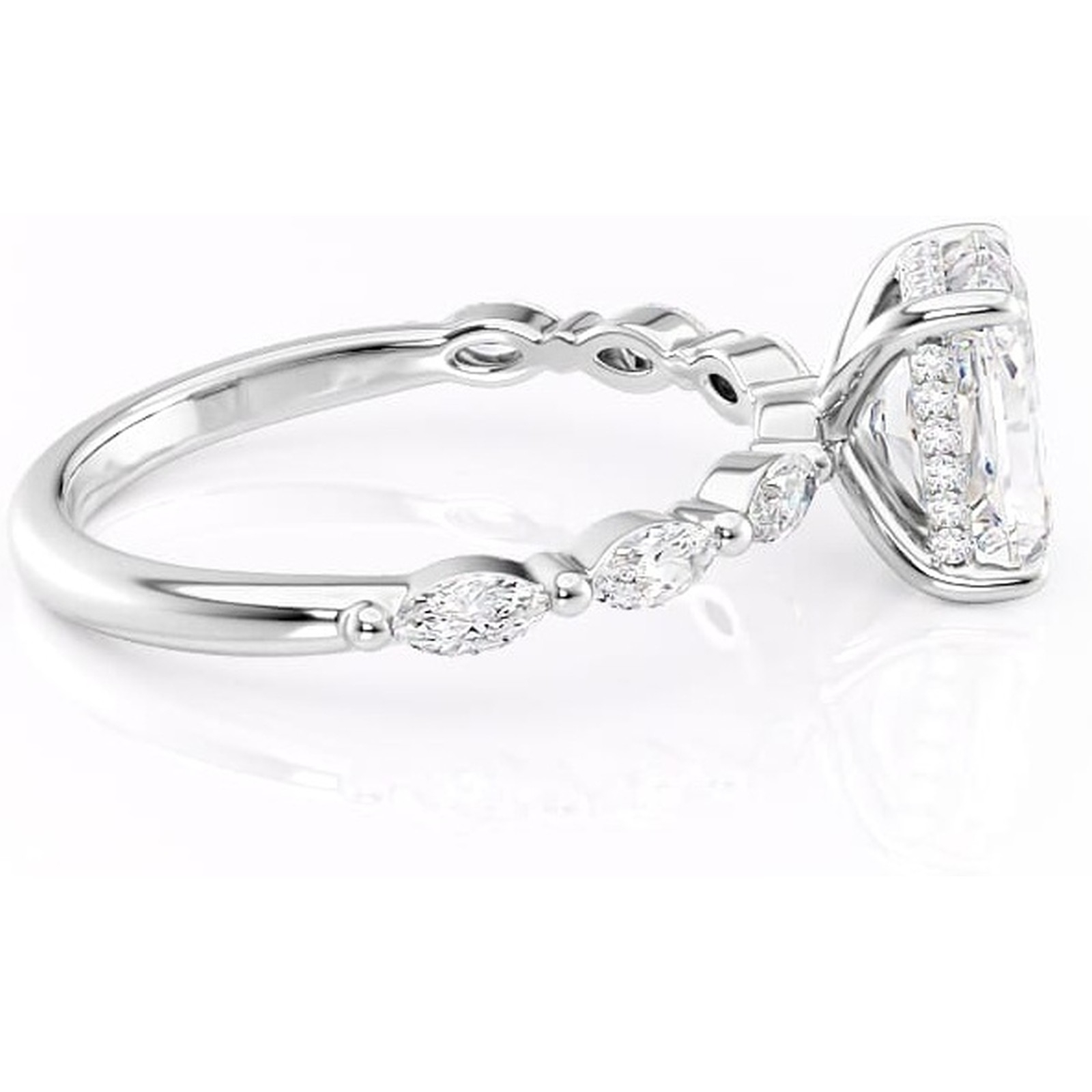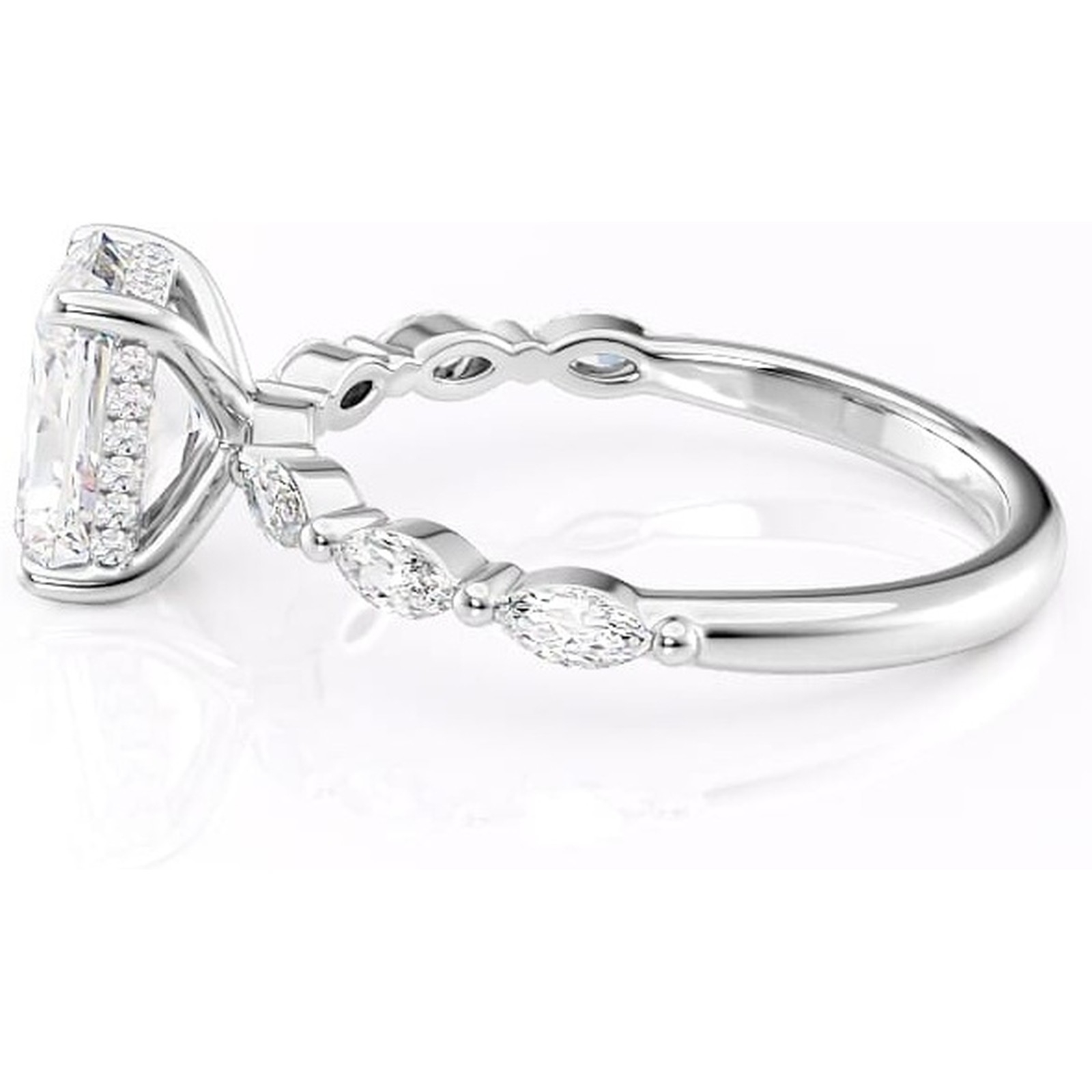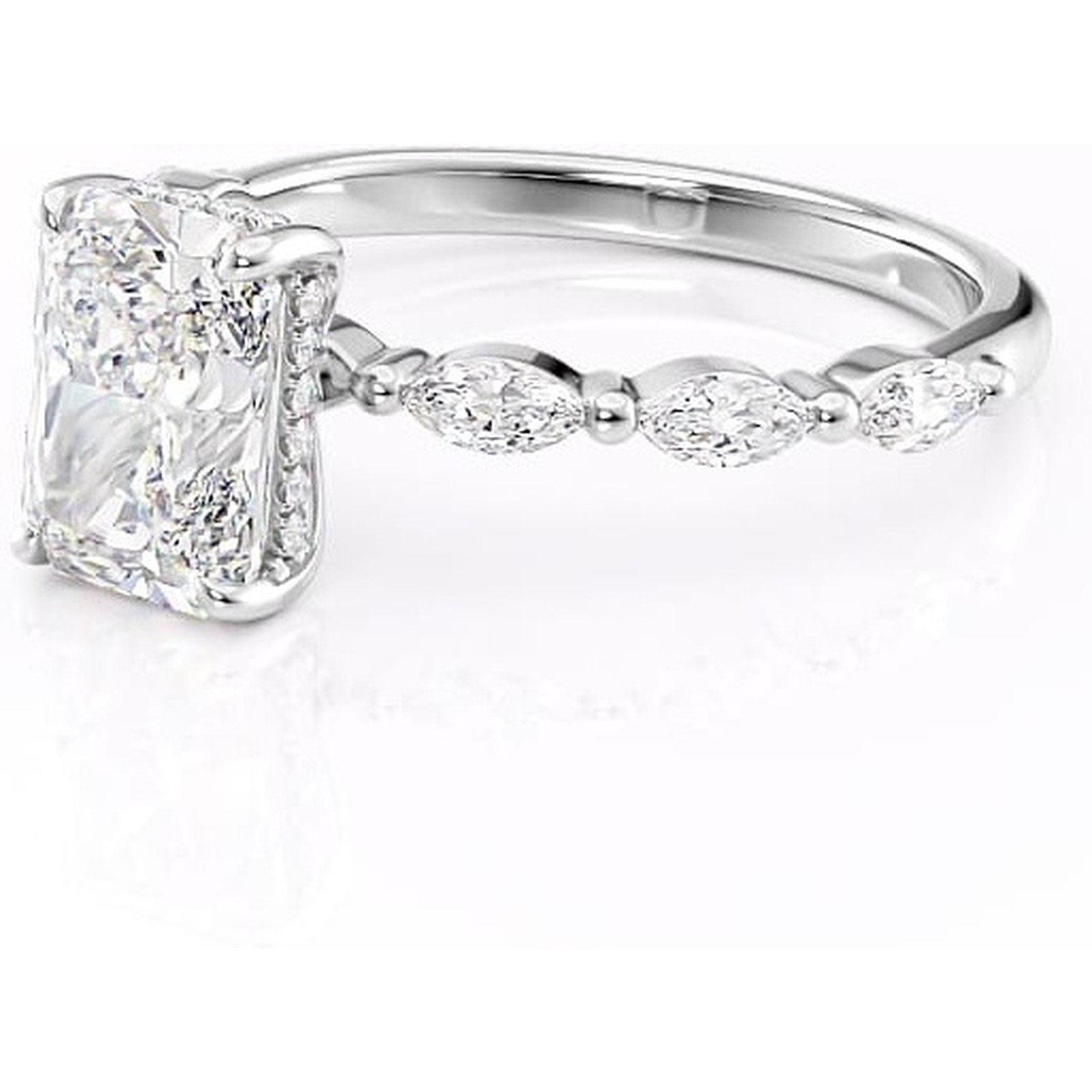 Inel de logodnă Everly din aur Alb 14kt cu moissanite tăietură radiantă – Pietre laterale rafinată pentru profil înalt | Personalizează și configurează gratuit online
