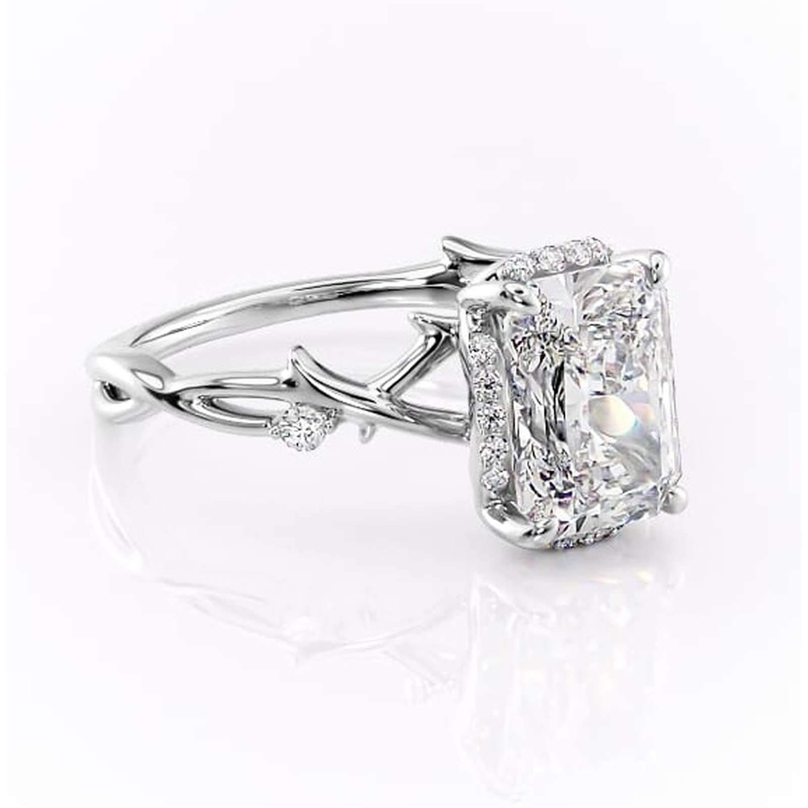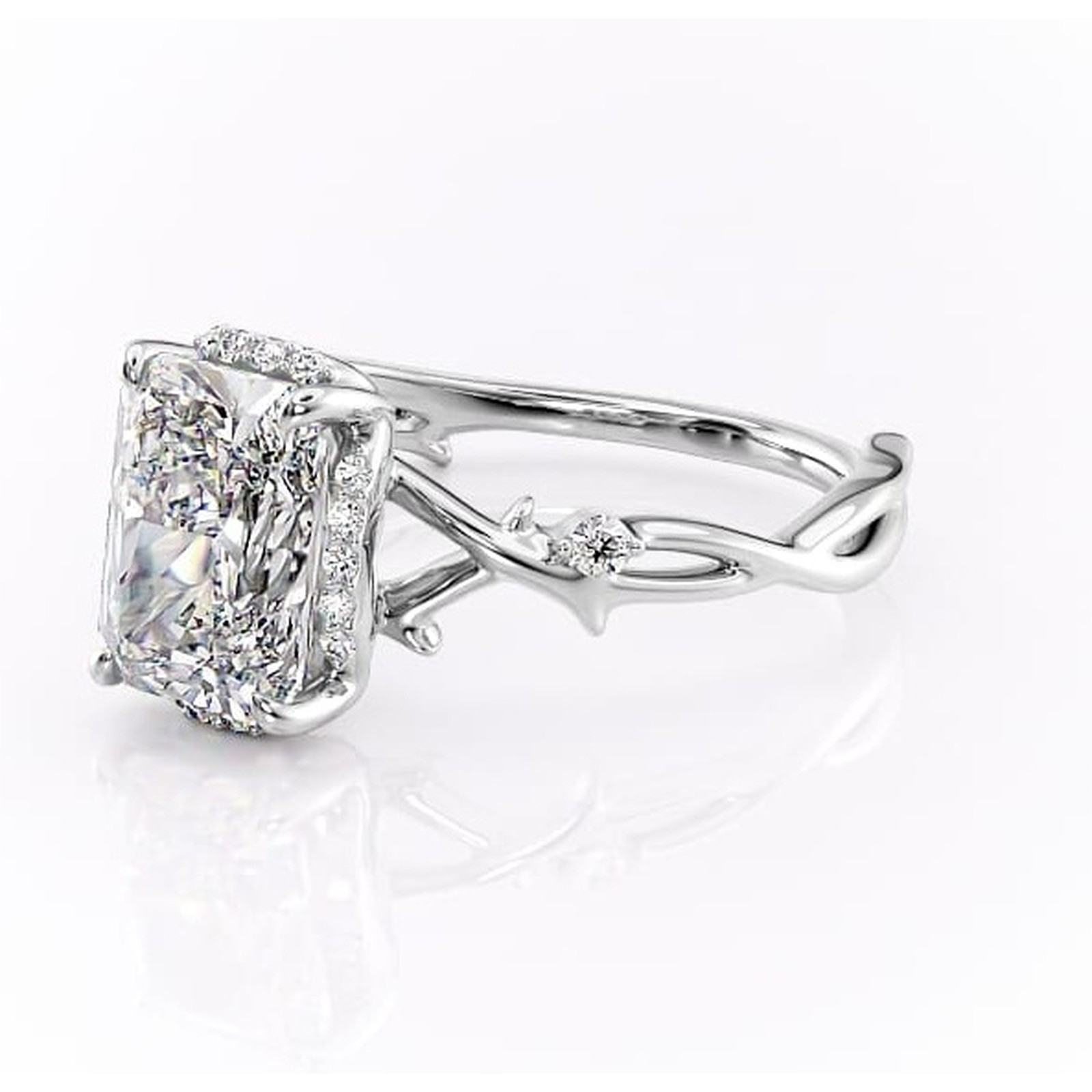 Inel de logodnă Isolde din aur Alb 14kt cu moissanite tăietură radiantă – Halo rafinată pentru profil mediu | Personalizează și configurează gratuit online