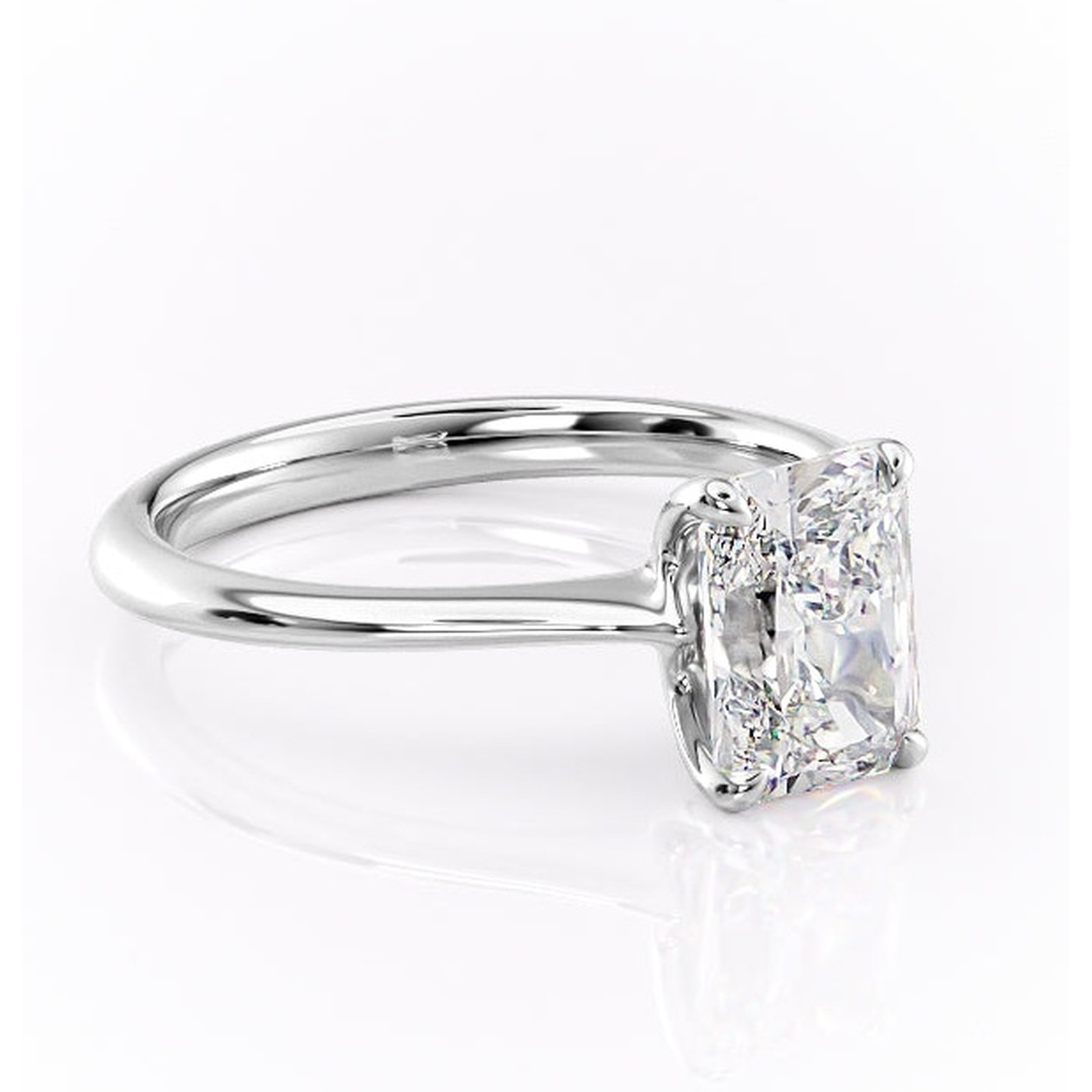 Inel de logodnă Zirena din aur Alb 14kt cu moissanite tăietură radiantă – Solitar rafinată pentru profil jos | Personalizează și configurează gratuit online